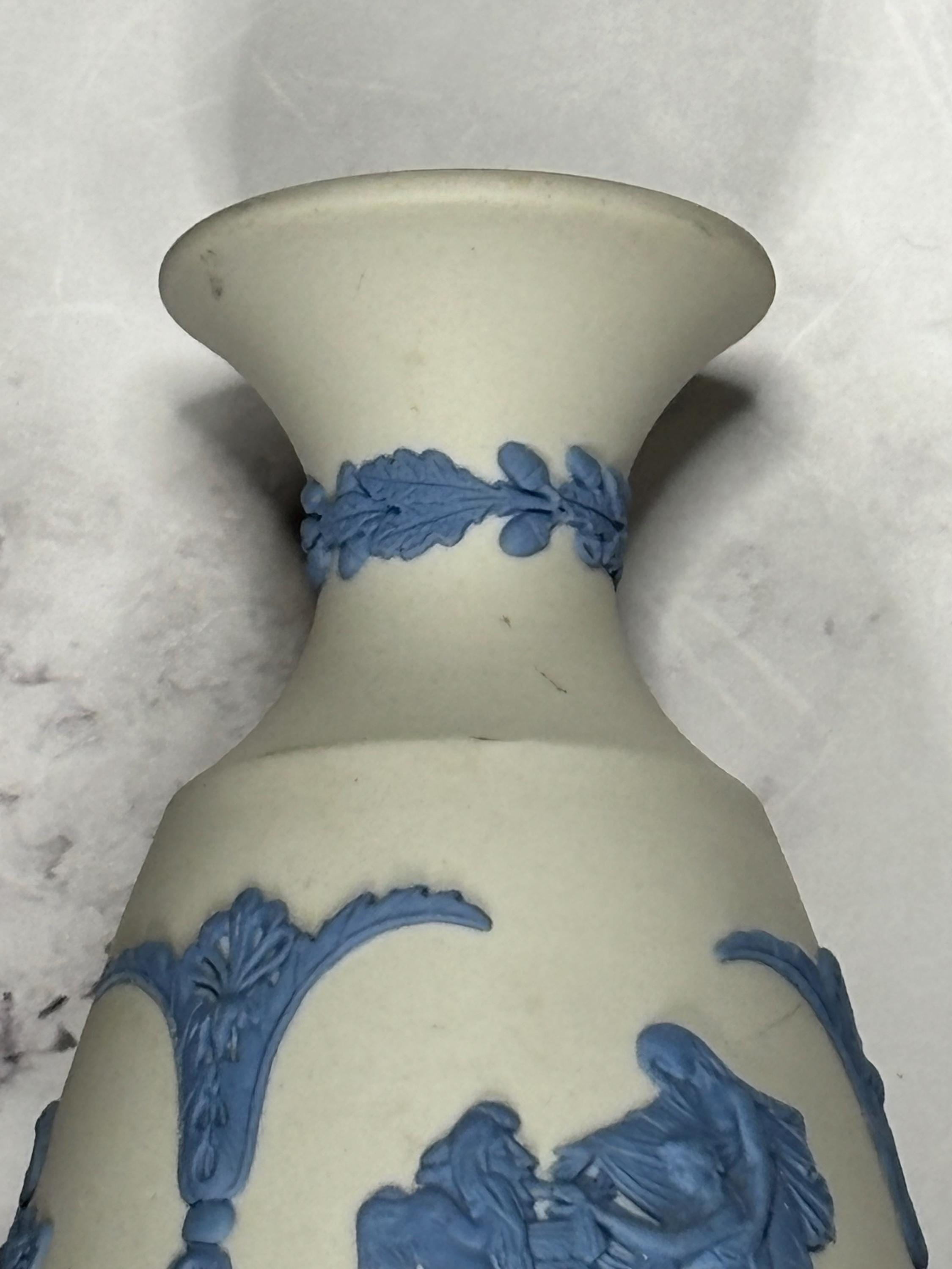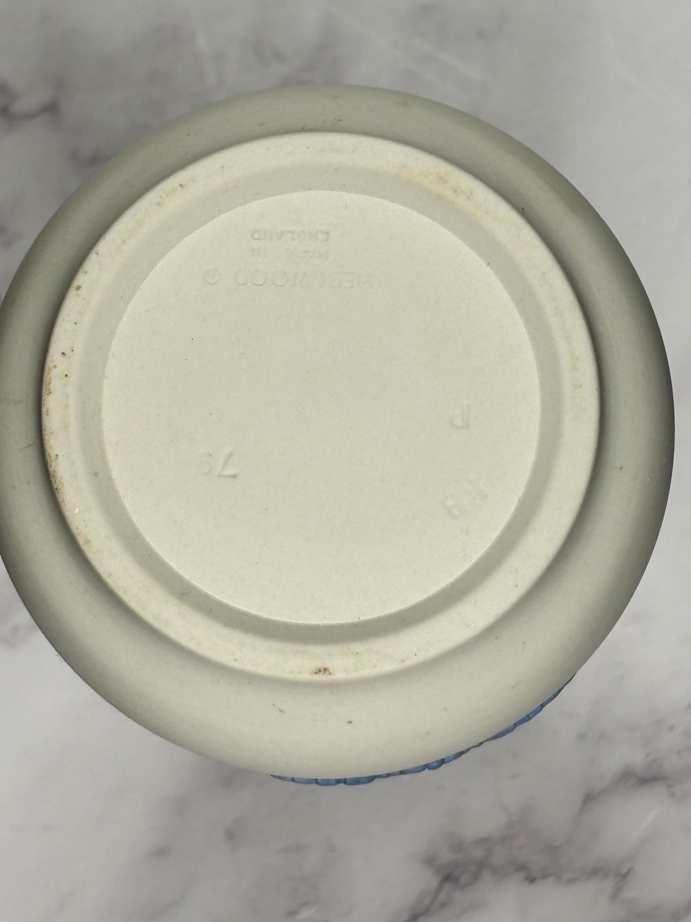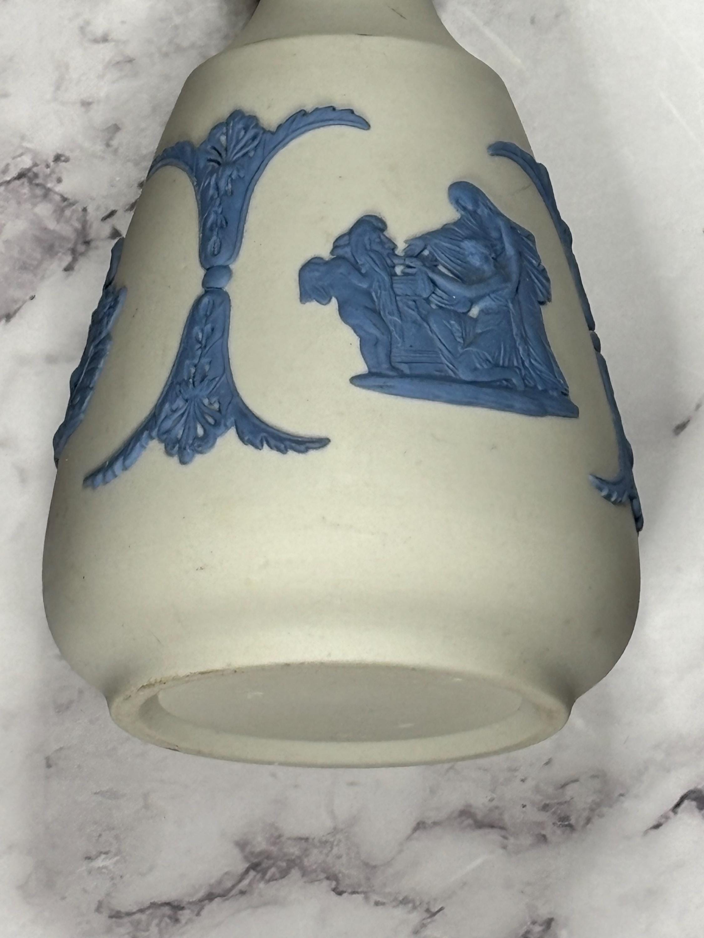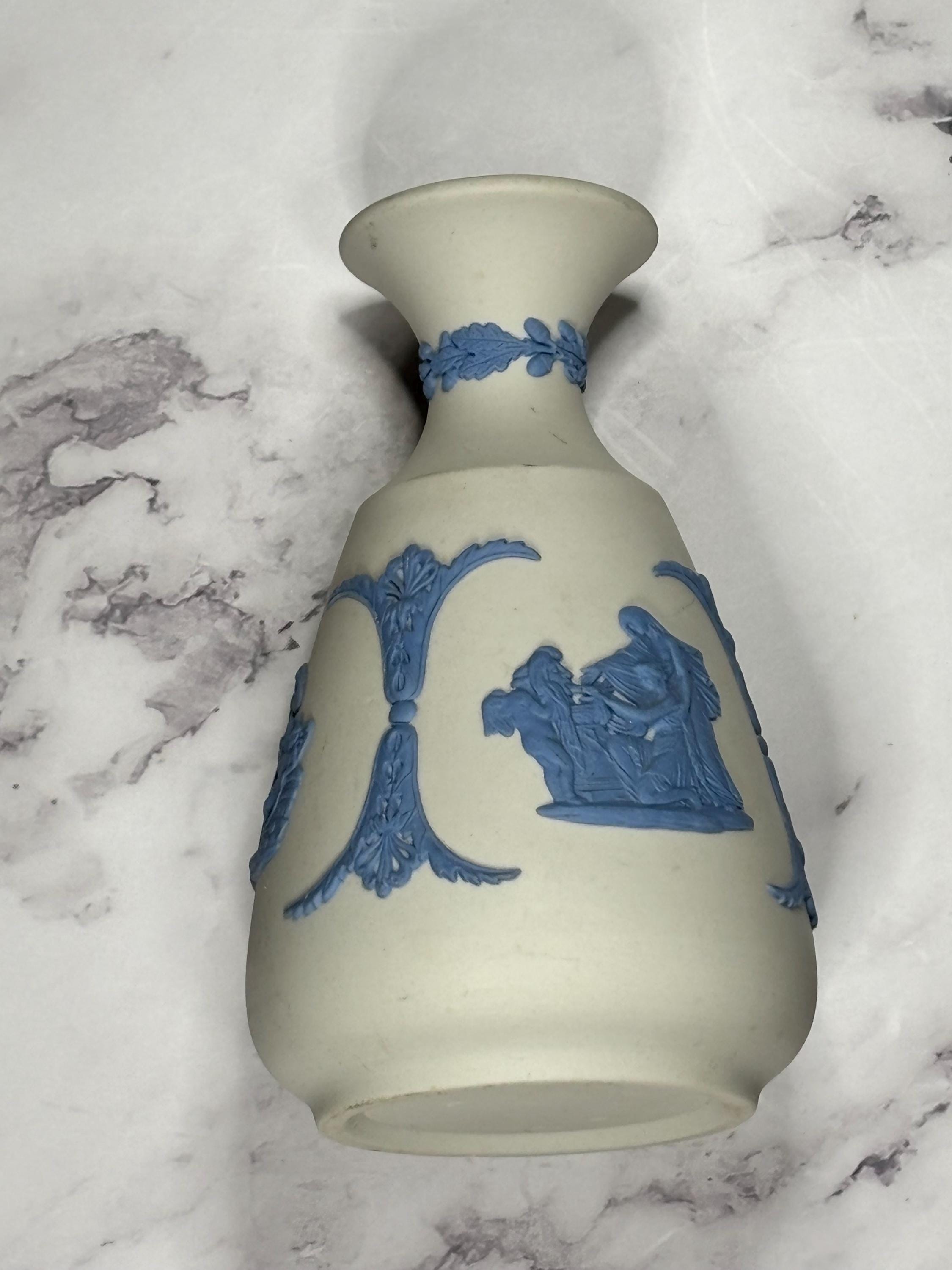 VISIT jaxinabox.com FOR ALL OUR LISTINGS!Vintage Wedgwood Jasperware Bud Vase Blue and White 5x3” England