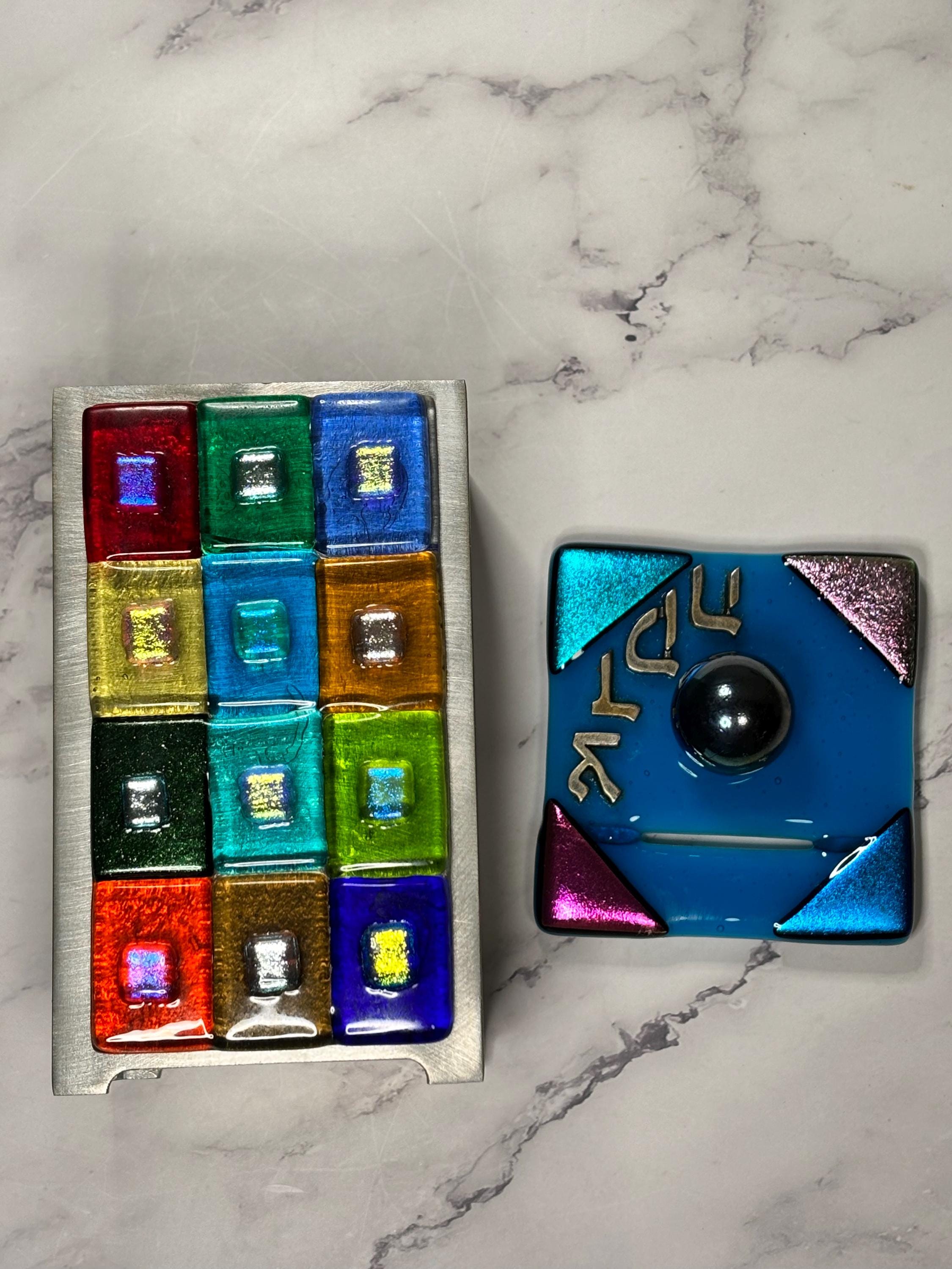 VISIT jaxinabox.com FOR ALL OUR LISTINGS!The Twelve Tribes TZEDAKAH Box Fused Glass Hand Made By Tamara Baskin 5x3
