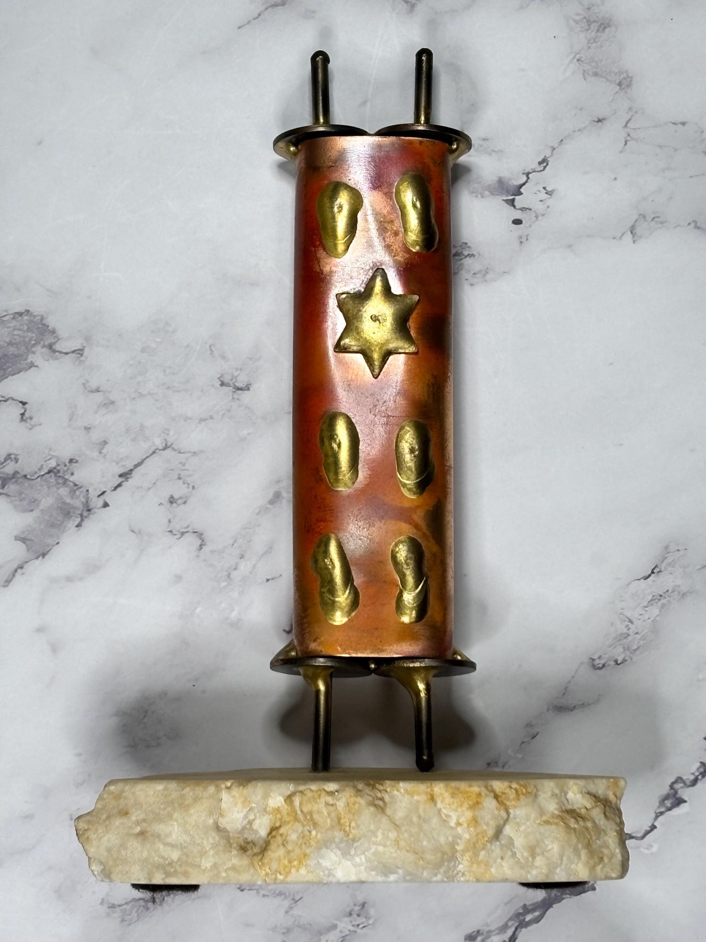 VISIT jaxinabox.com FOR ALL OUR LISTINGS!Gary Rosenthal Brass Torah Scroll Sculpture Marble Base 2000 Signed Judaism
