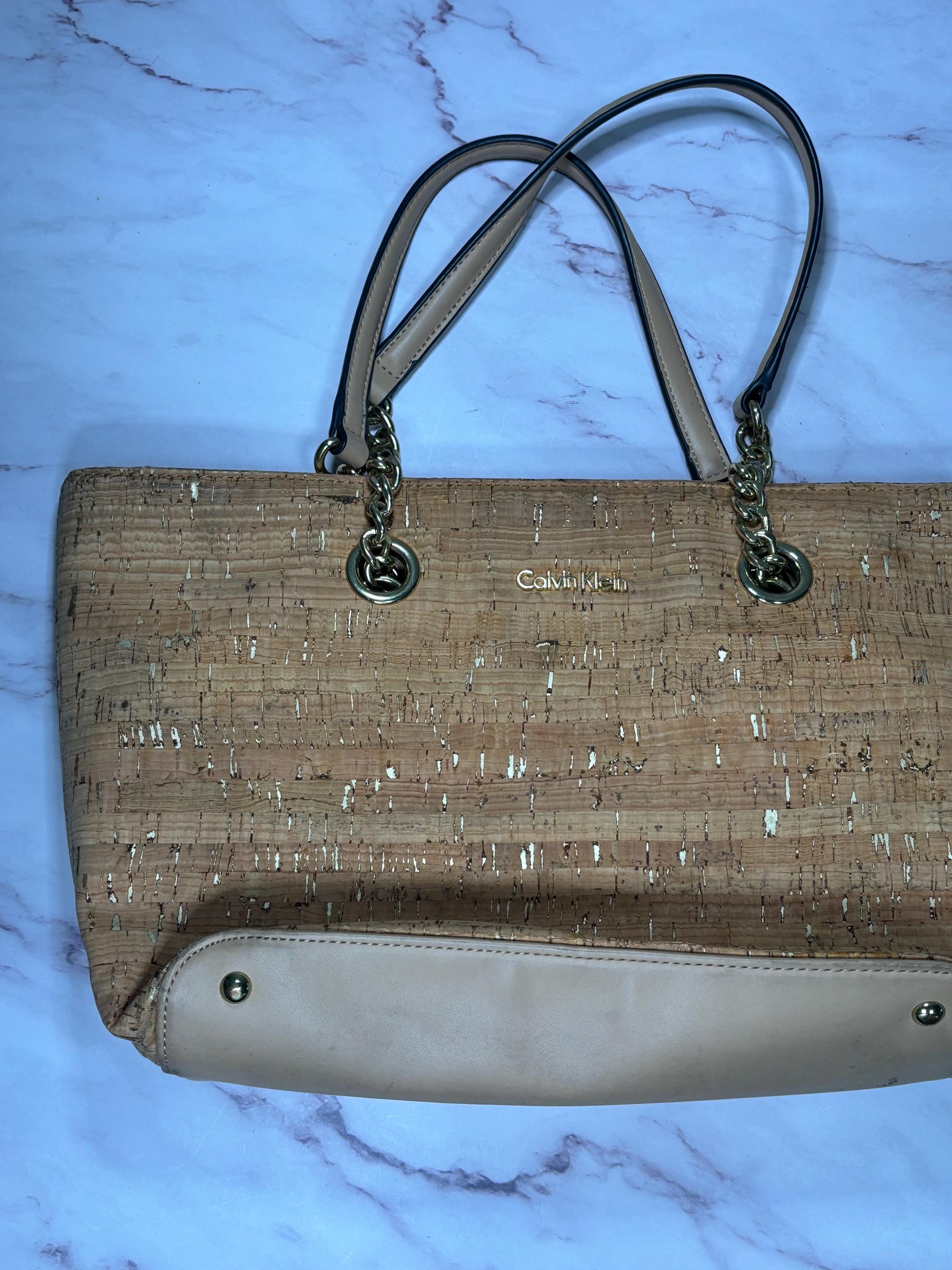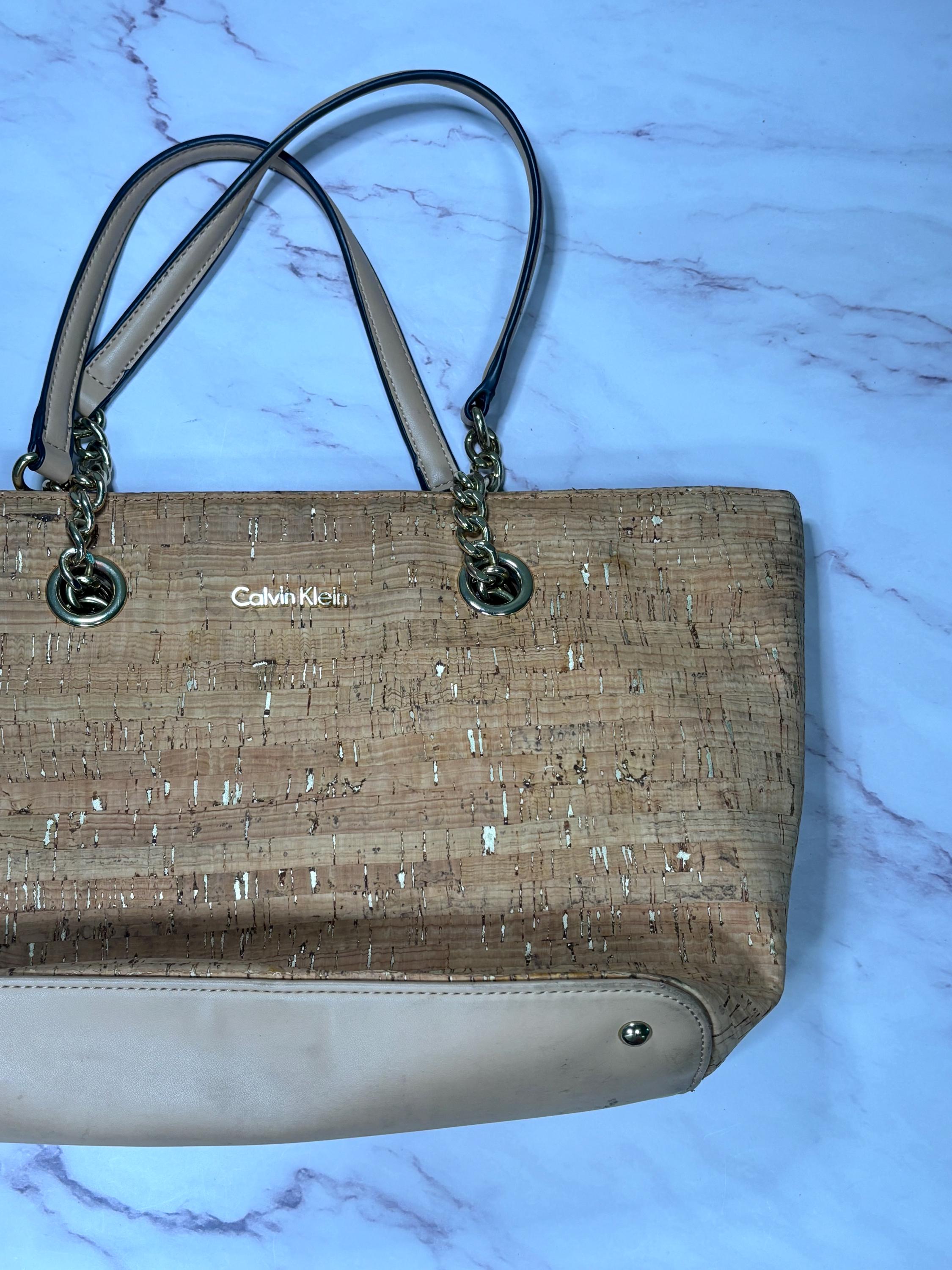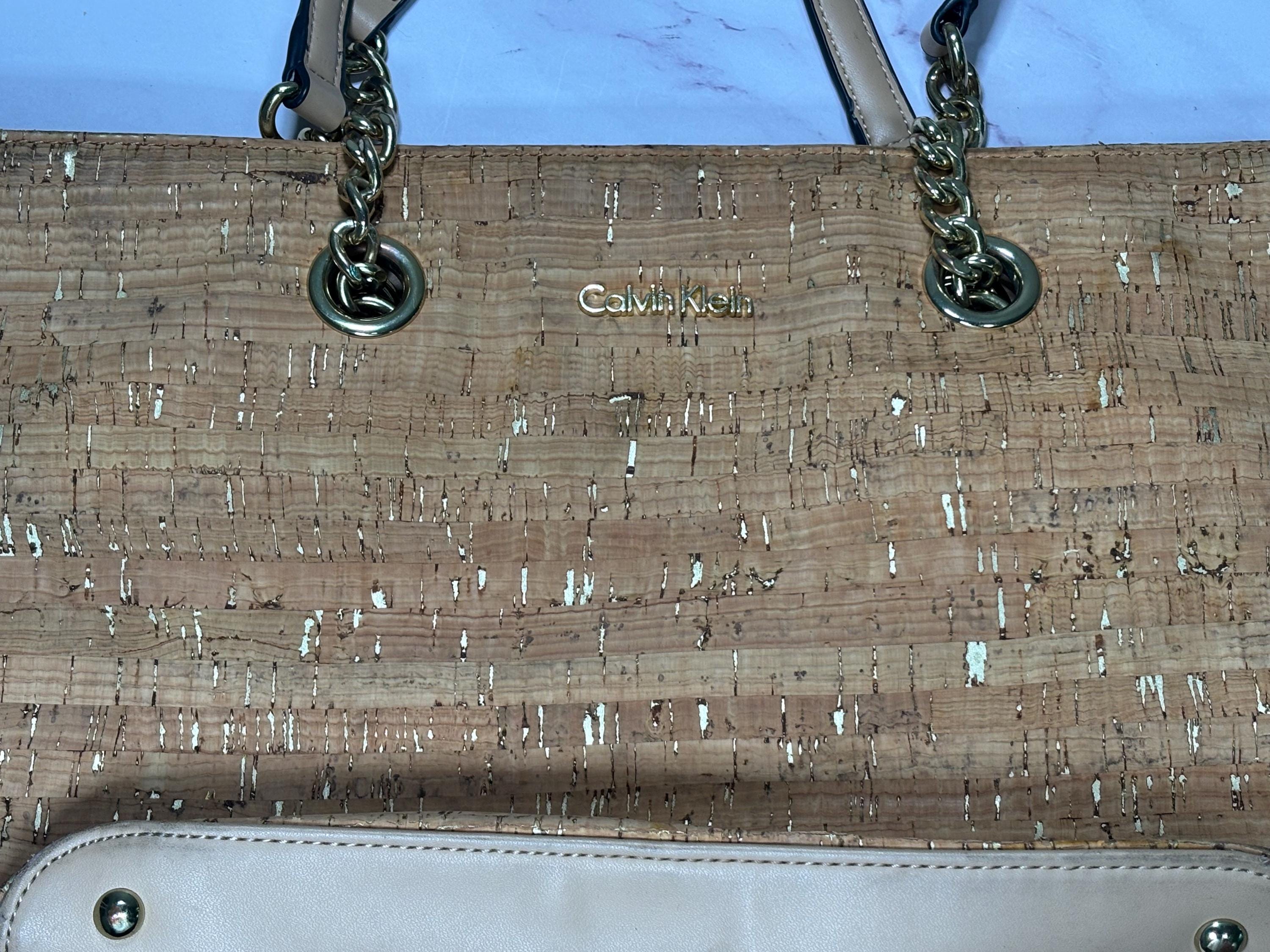 VISIT jaxinabox.com FOR ALL OUR LISTINGS!Calvin Klein Tan Beige Brown Purse W/Chain Strap Cork Bag Tote Handbag