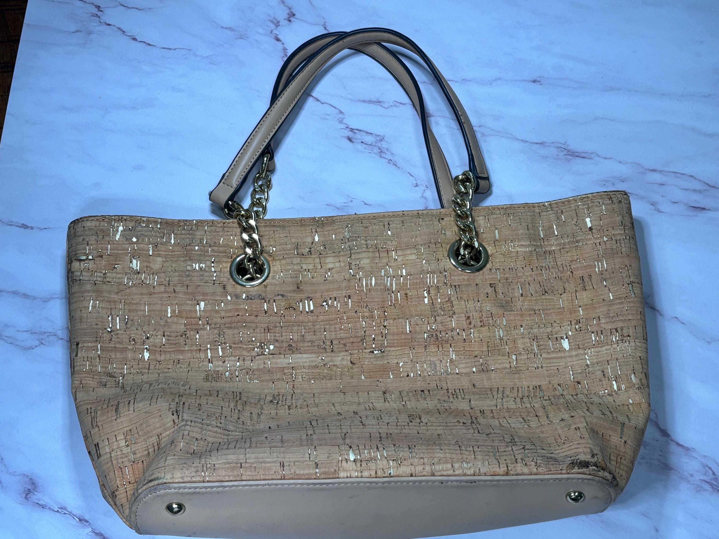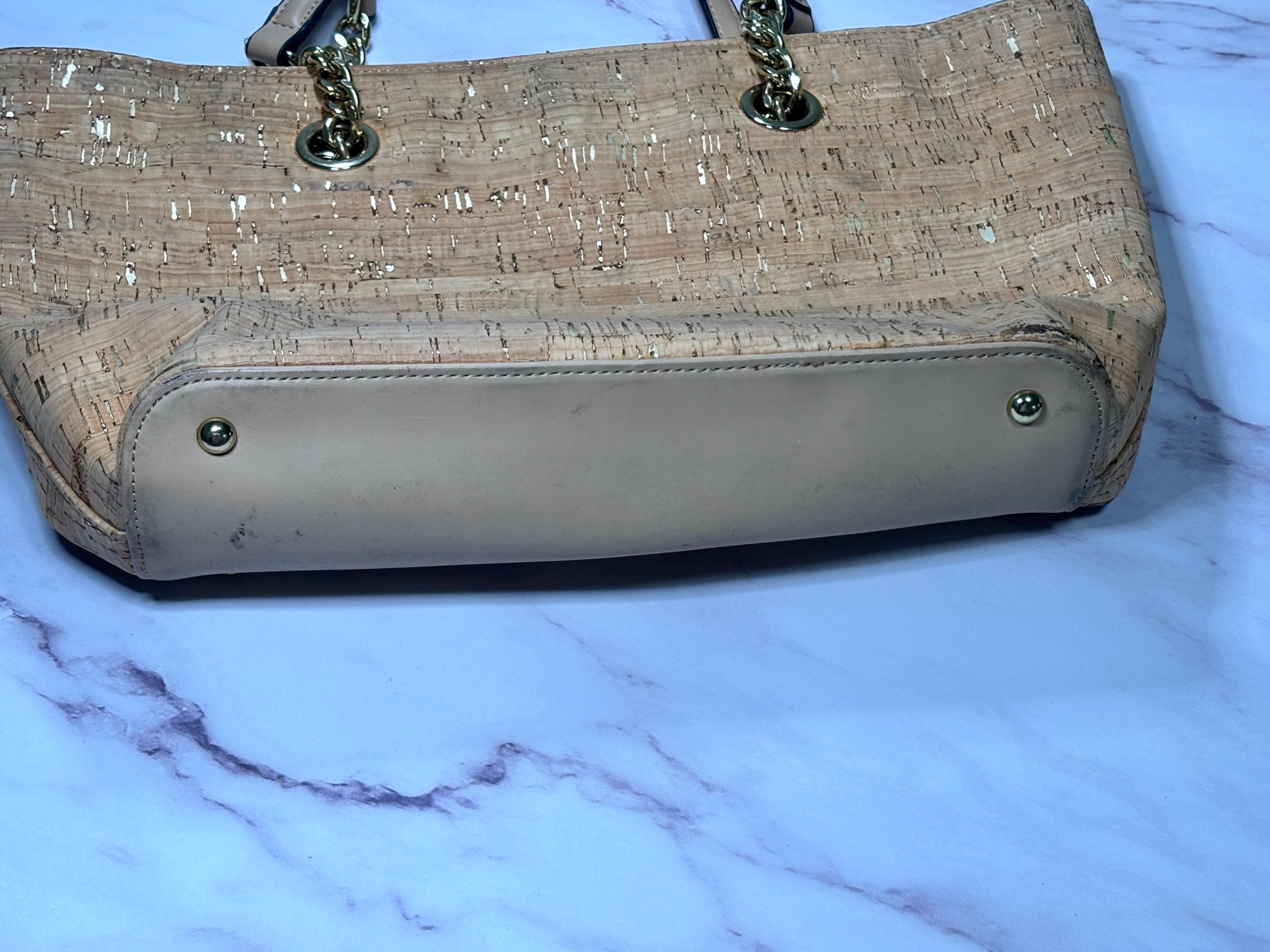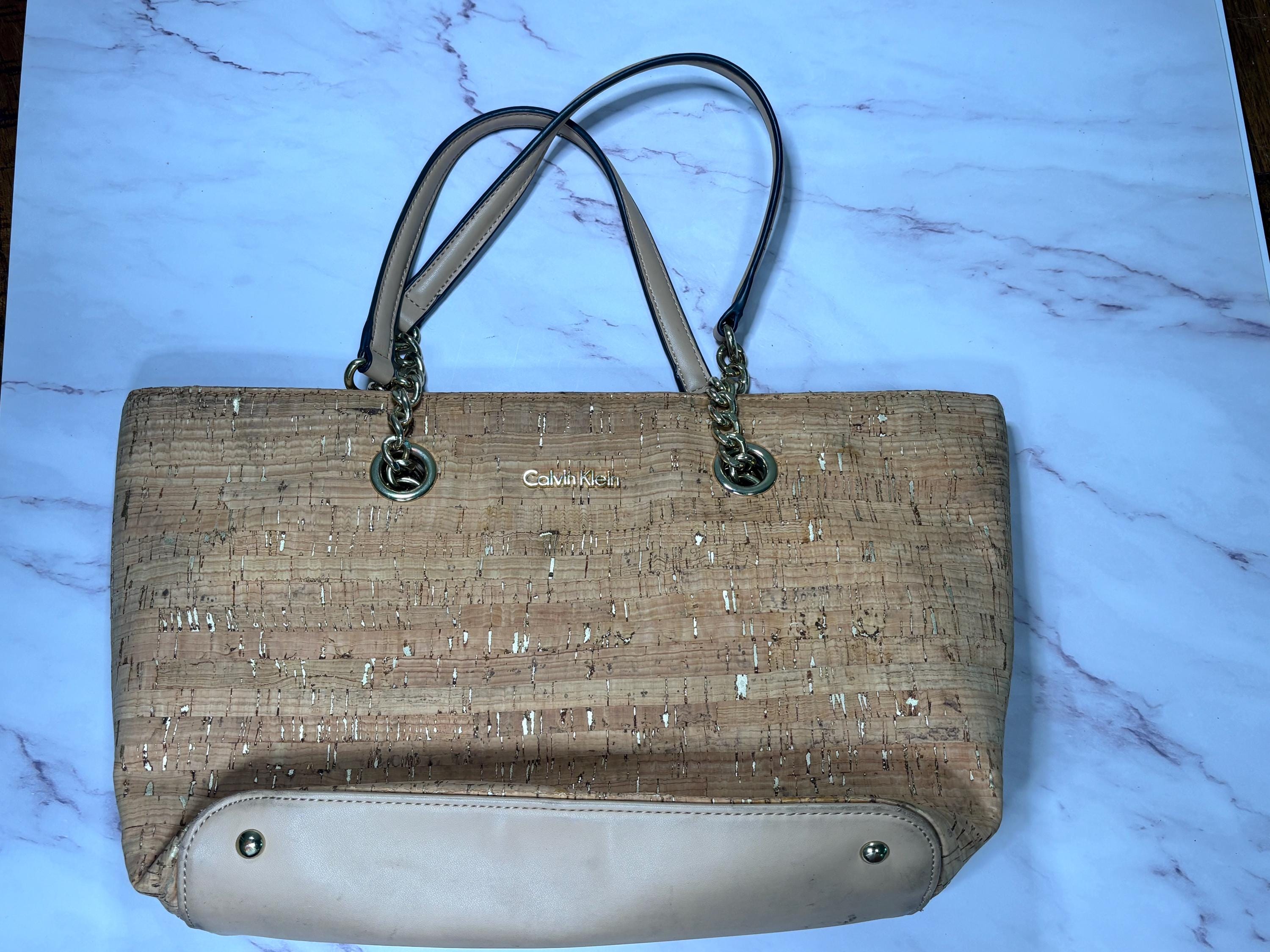 VISIT jaxinabox.com FOR ALL OUR LISTINGS!Calvin Klein Tan Beige Brown Purse W/Chain Strap Cork Bag Tote Handbag