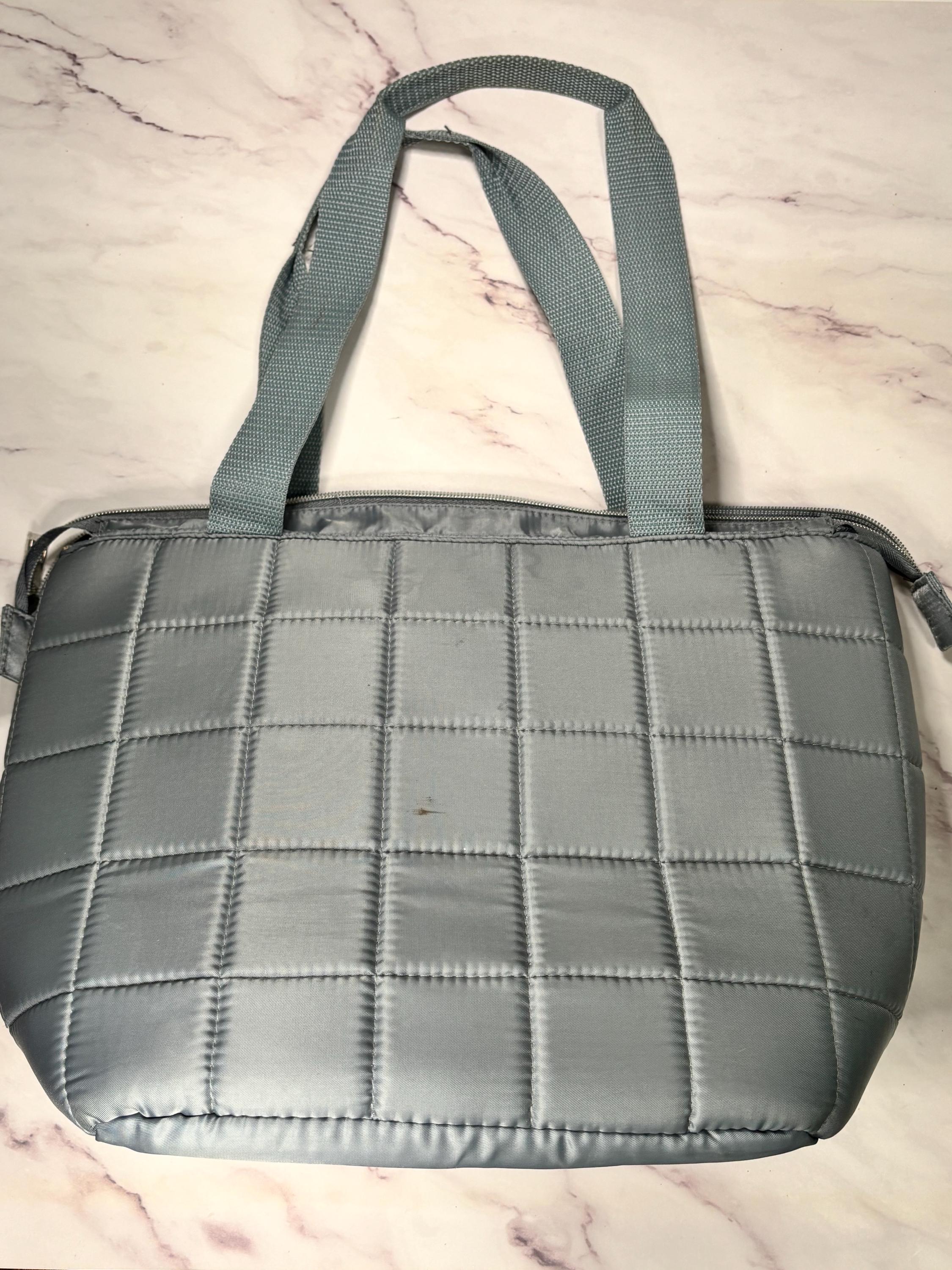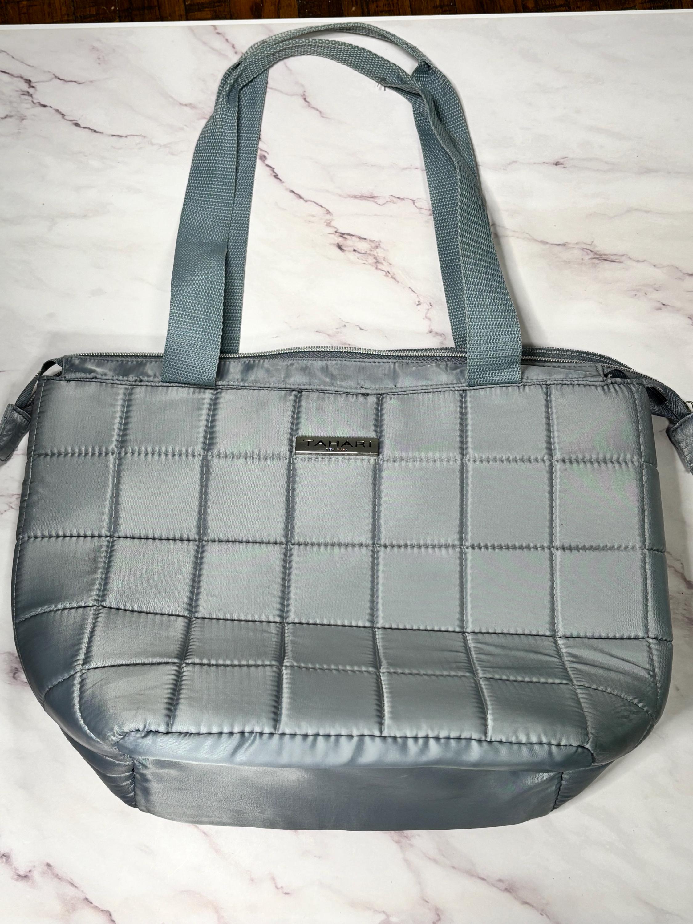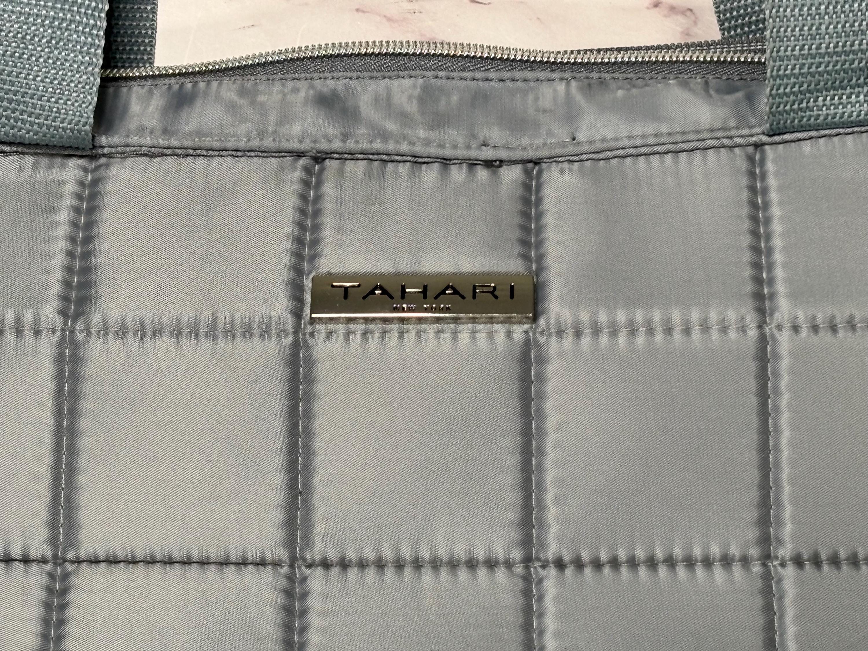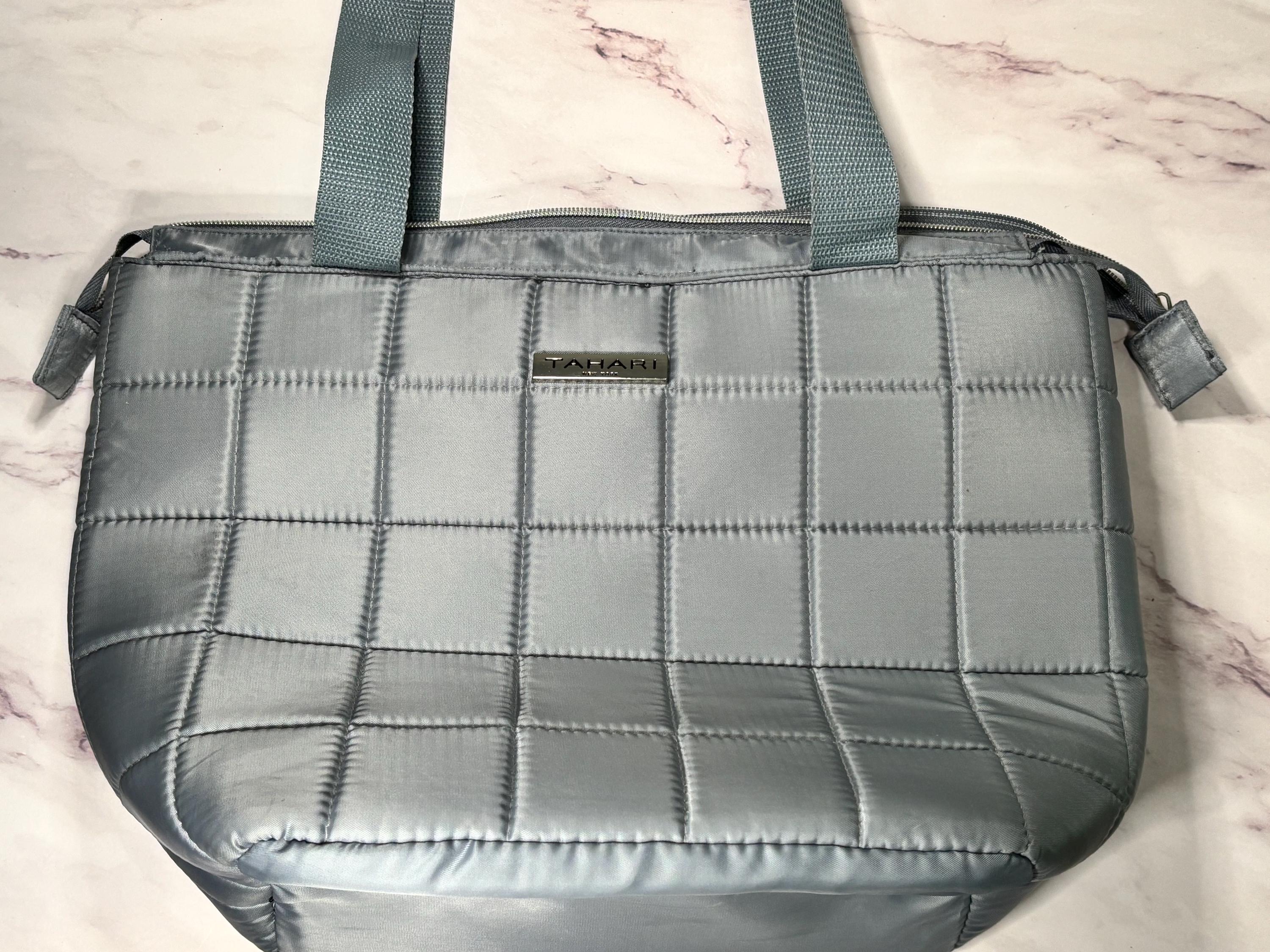 VISIT jaxinabox.com FOR ALL OUR LISTINGS!Tahari Travel Tote Bag Large Quilted Pattern Trolley Strap Gray Coal Pocketbook