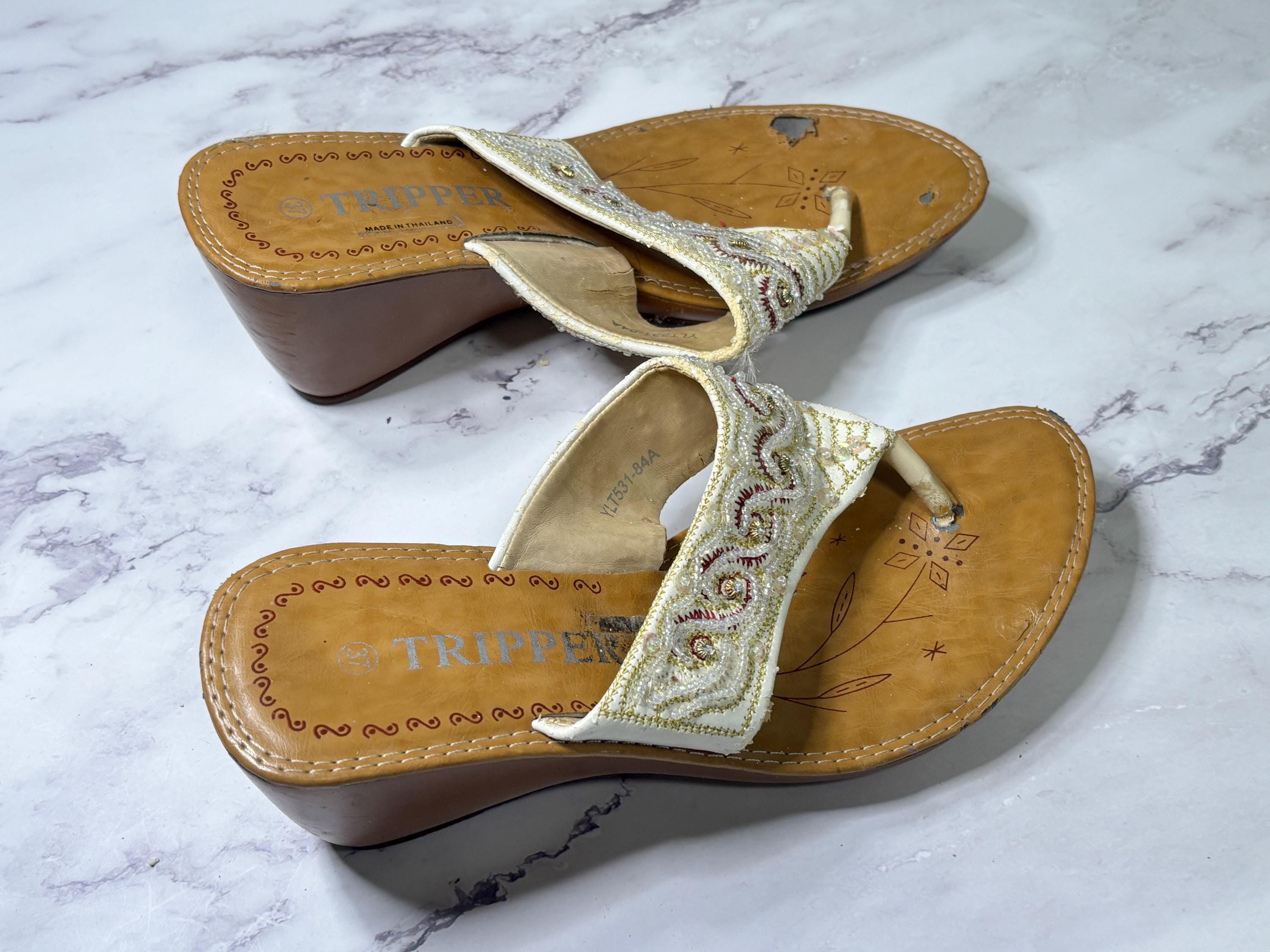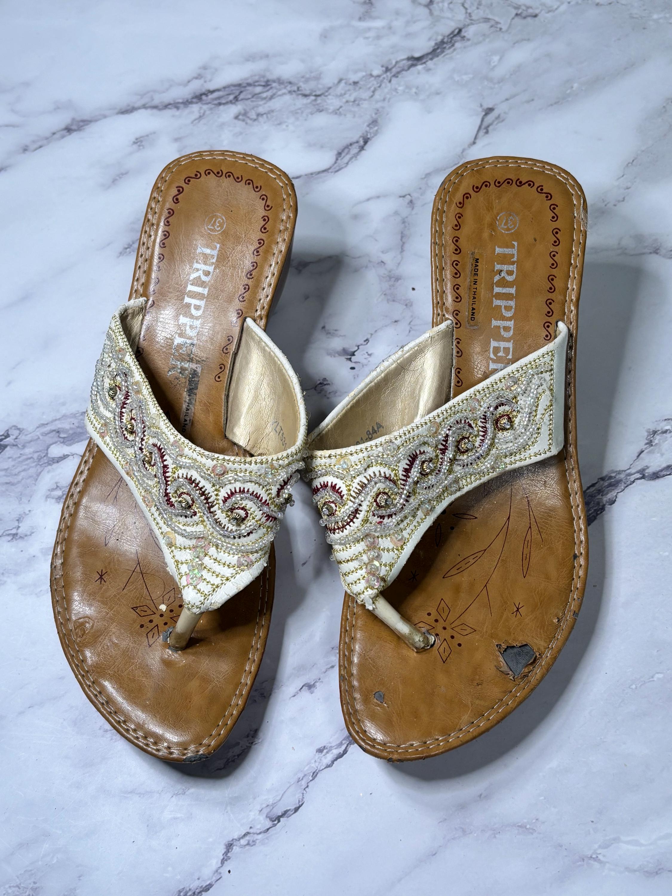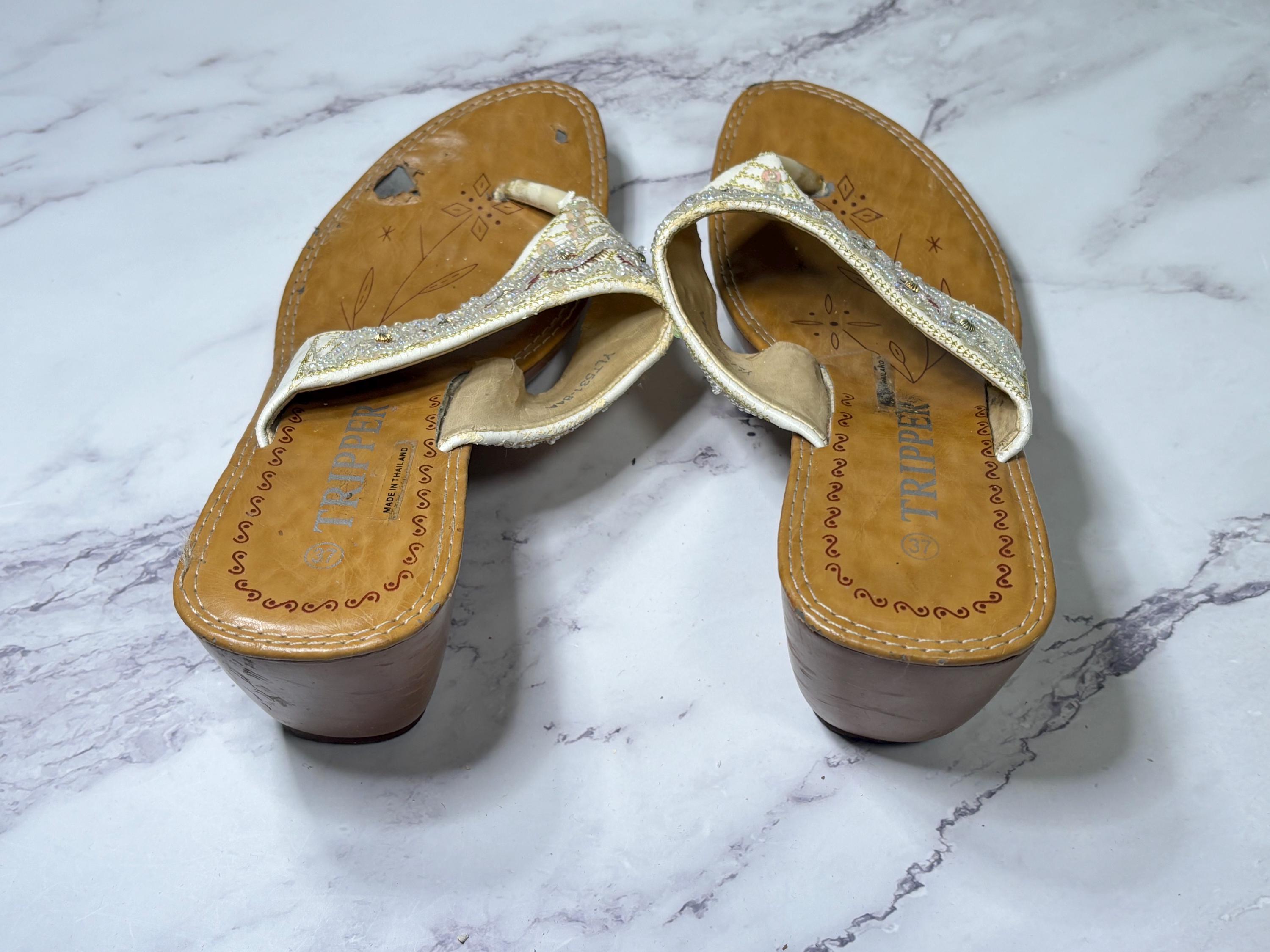 VISIT jaxinabox.com FOR ALL OUR LISTINGS!Woman’s Beaded Strappy Sandals Wedge By Tripper size 37 Brown Beige