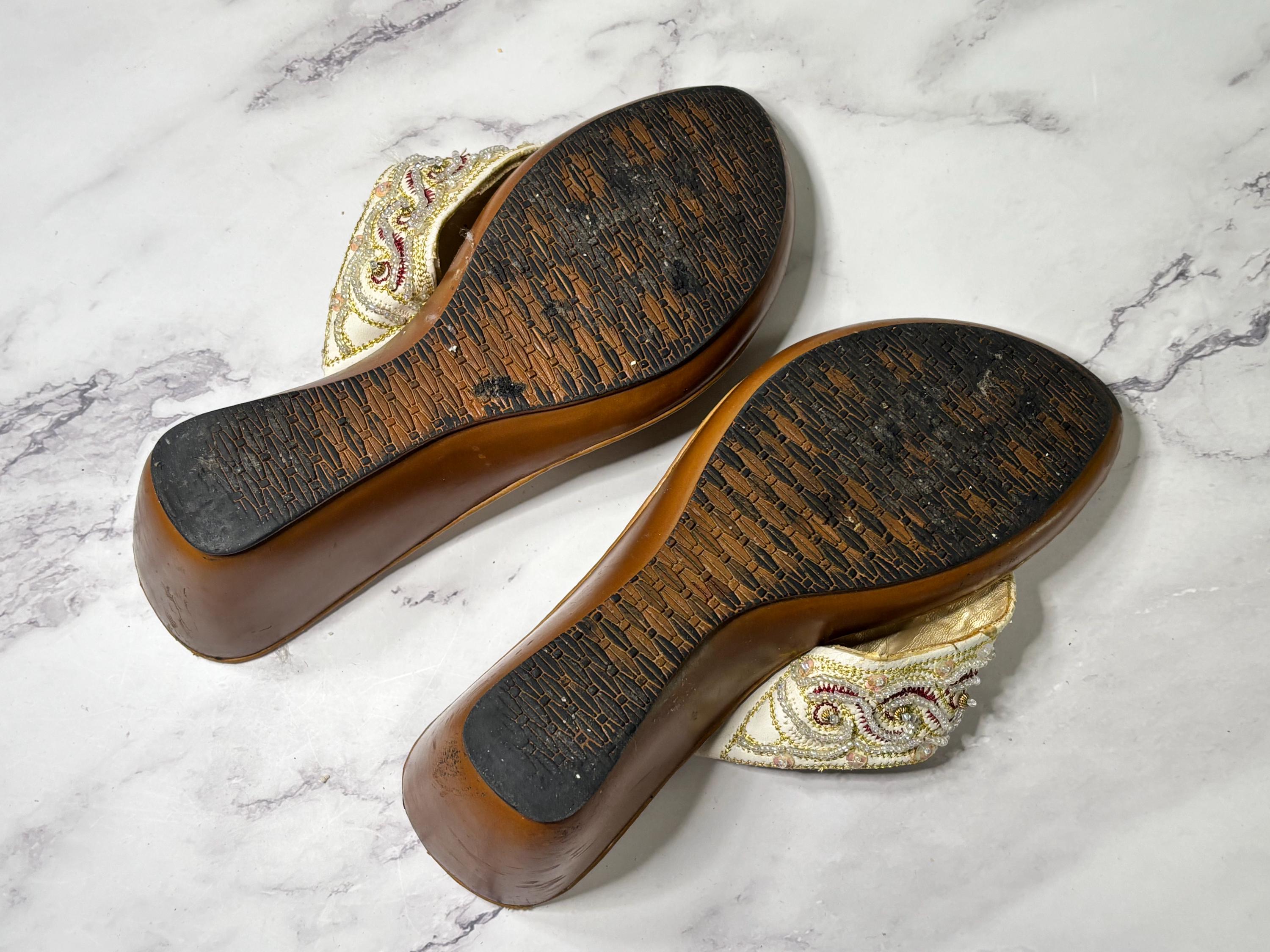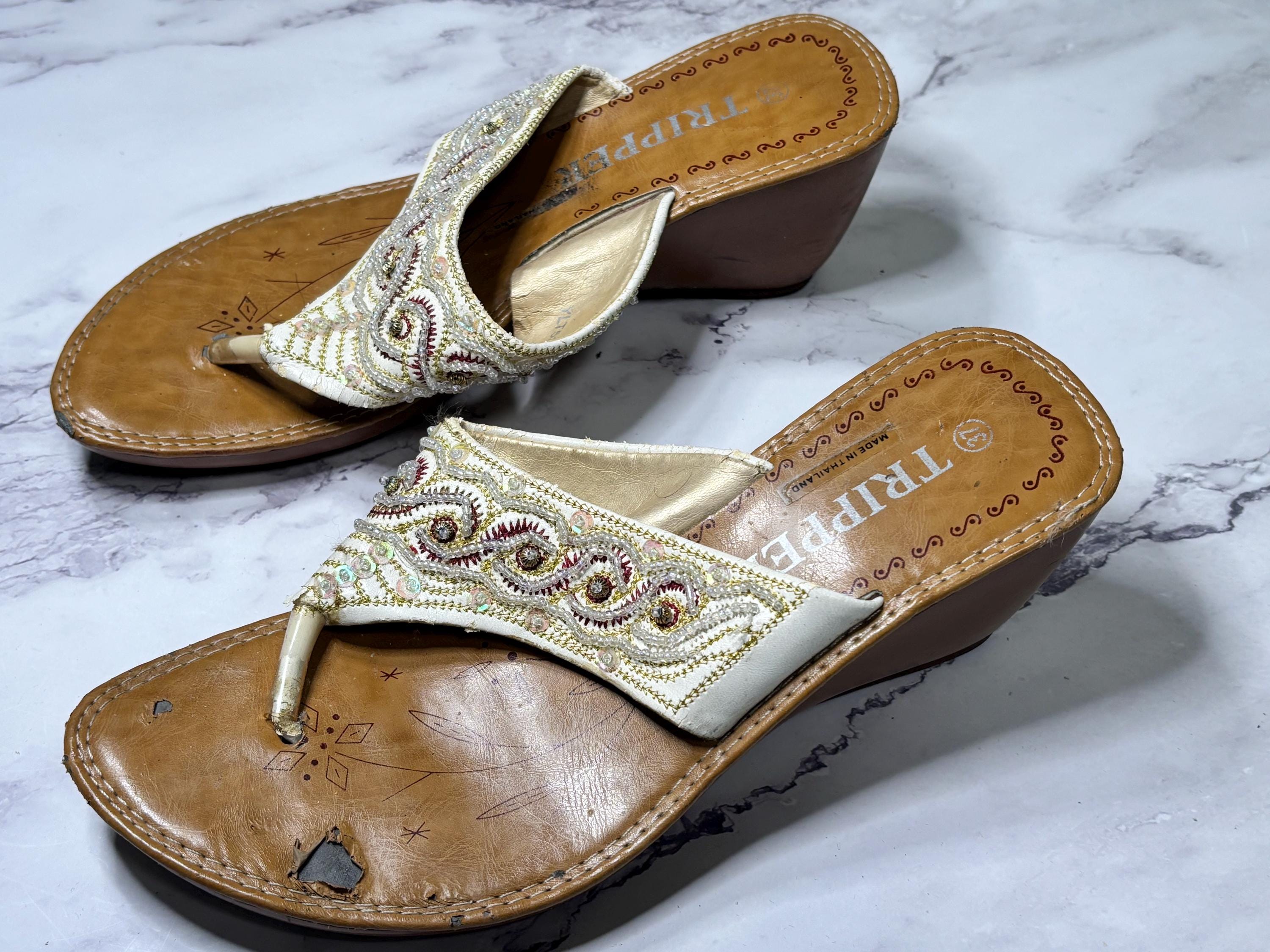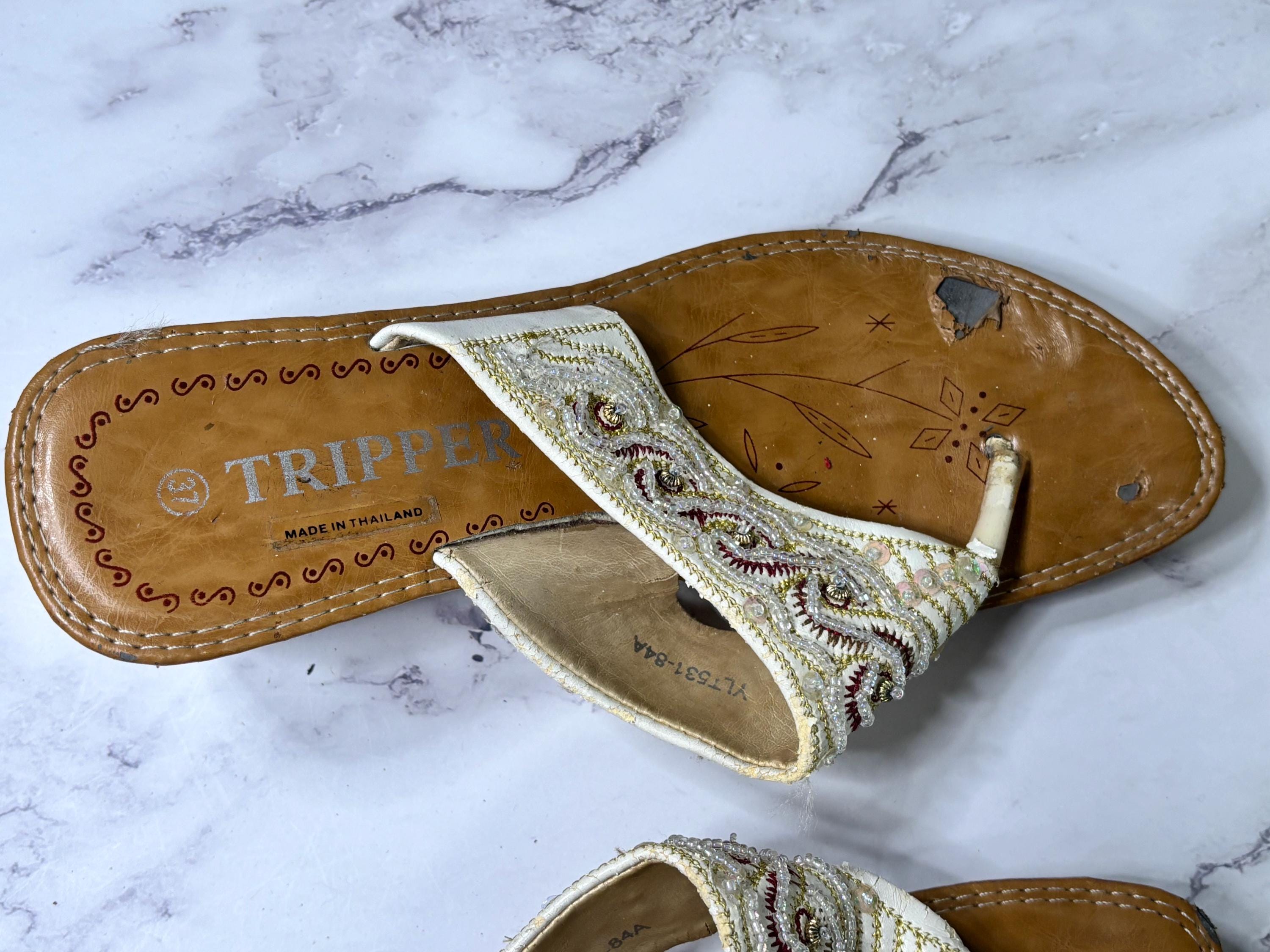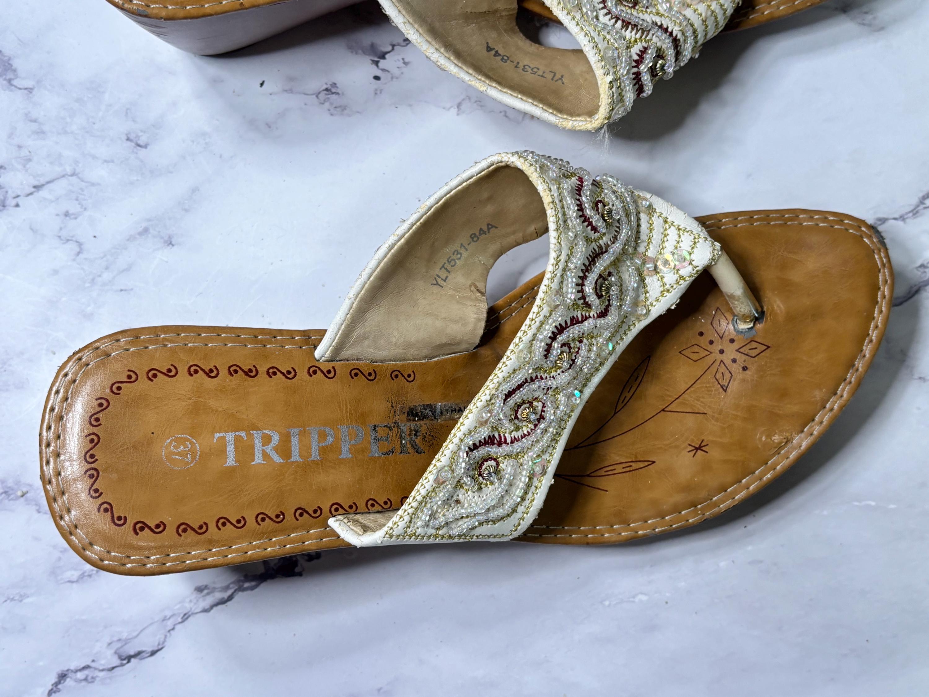 VISIT jaxinabox.com FOR ALL OUR LISTINGS!Woman’s Beaded Strappy Sandals Wedge By Tripper size 37 Brown Beige