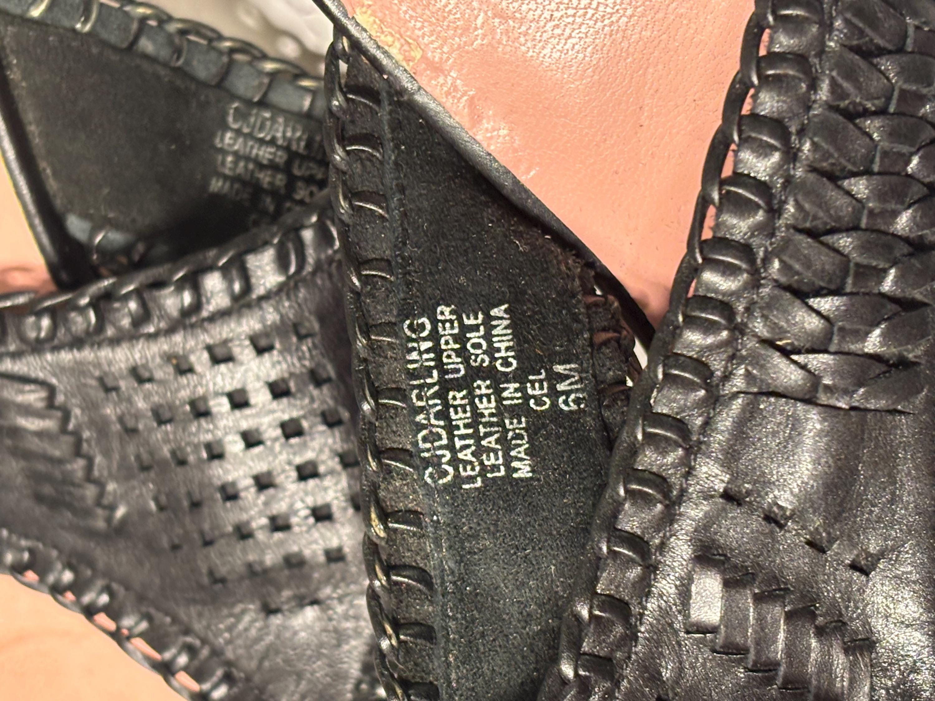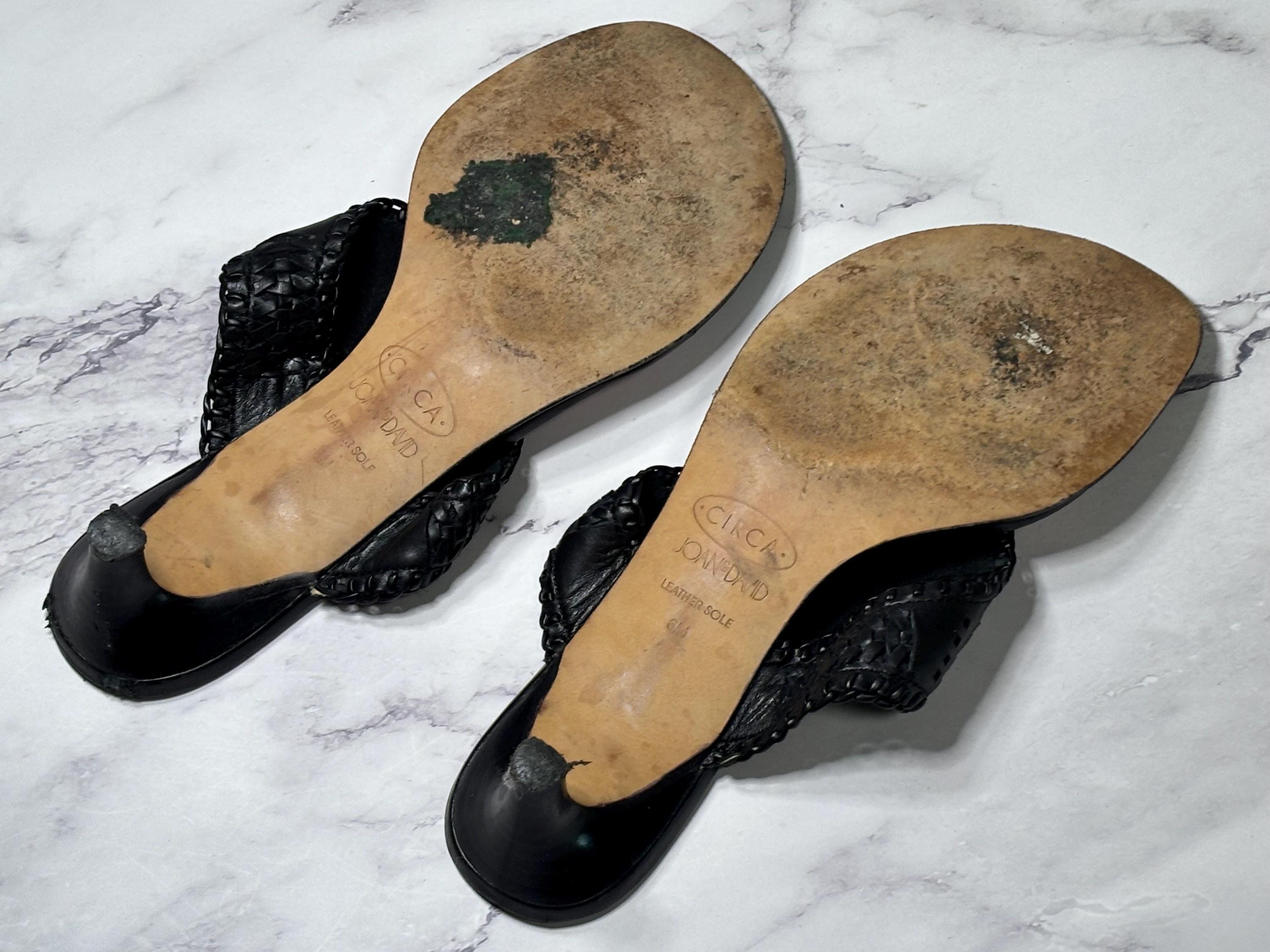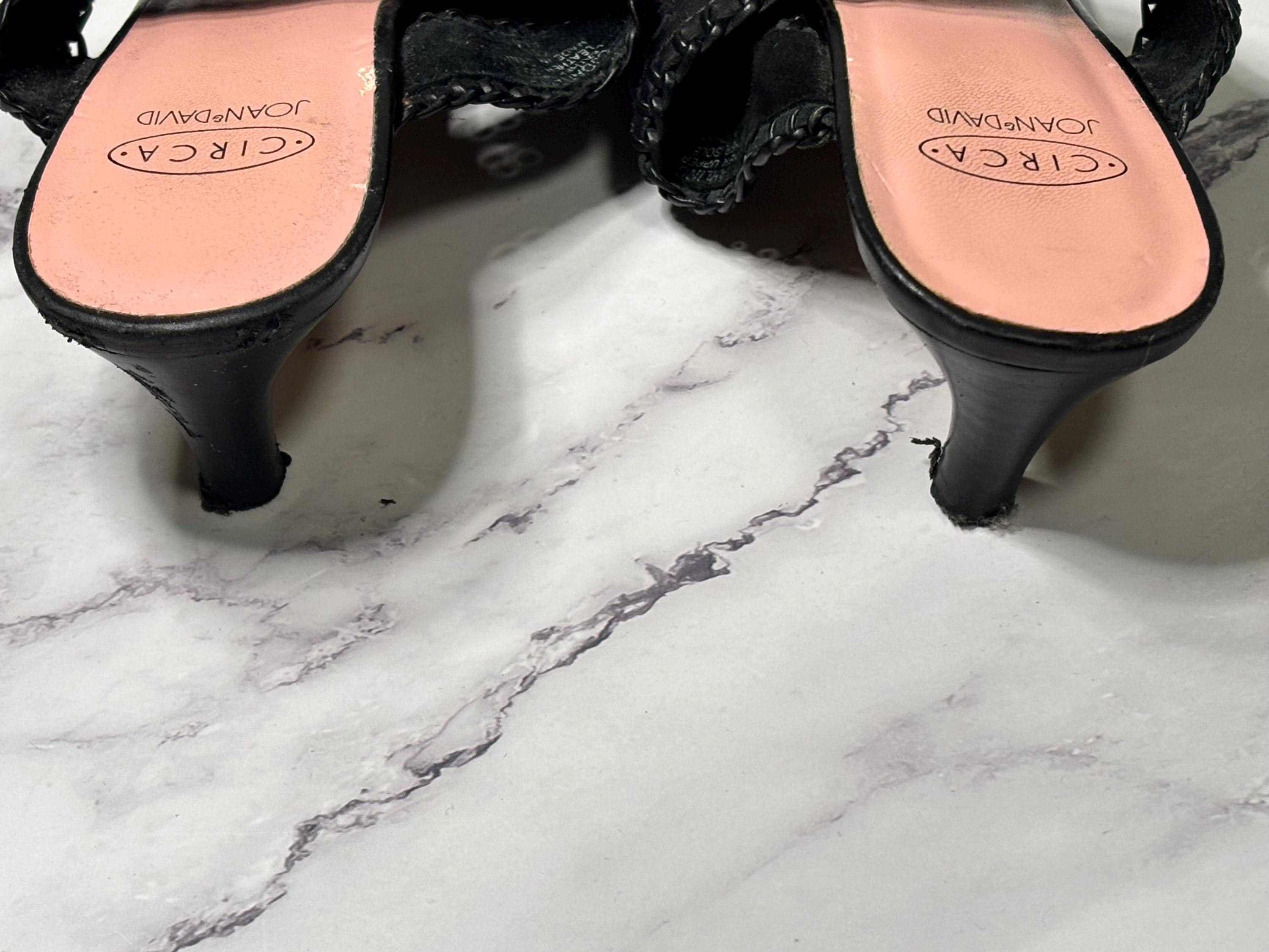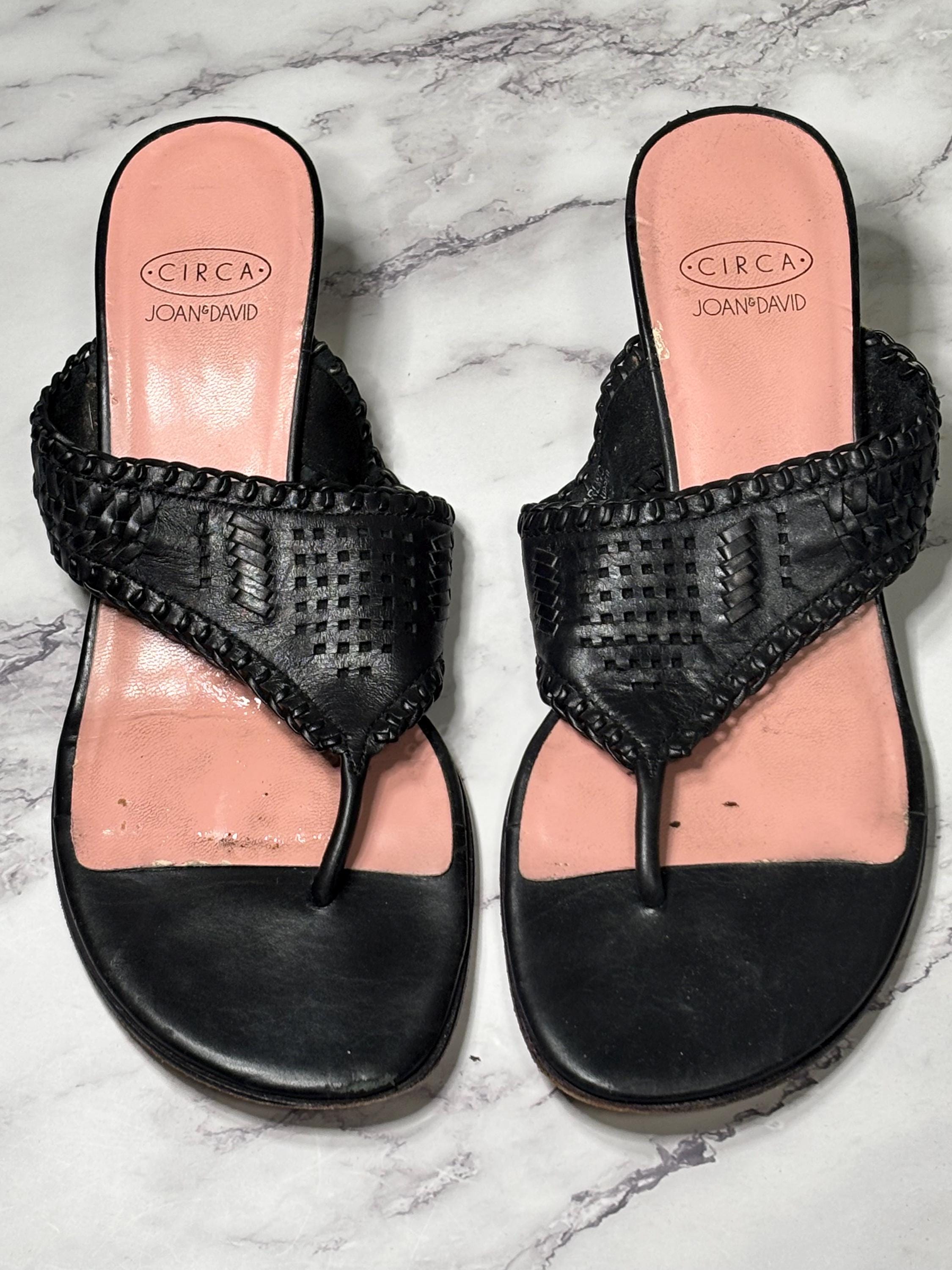 VISIT jaxinabox.com FOR ALL OUR LISTINGS!Circa Joan & David Black Pink Block Heel Flip Flops Patent Leather Sole 6M