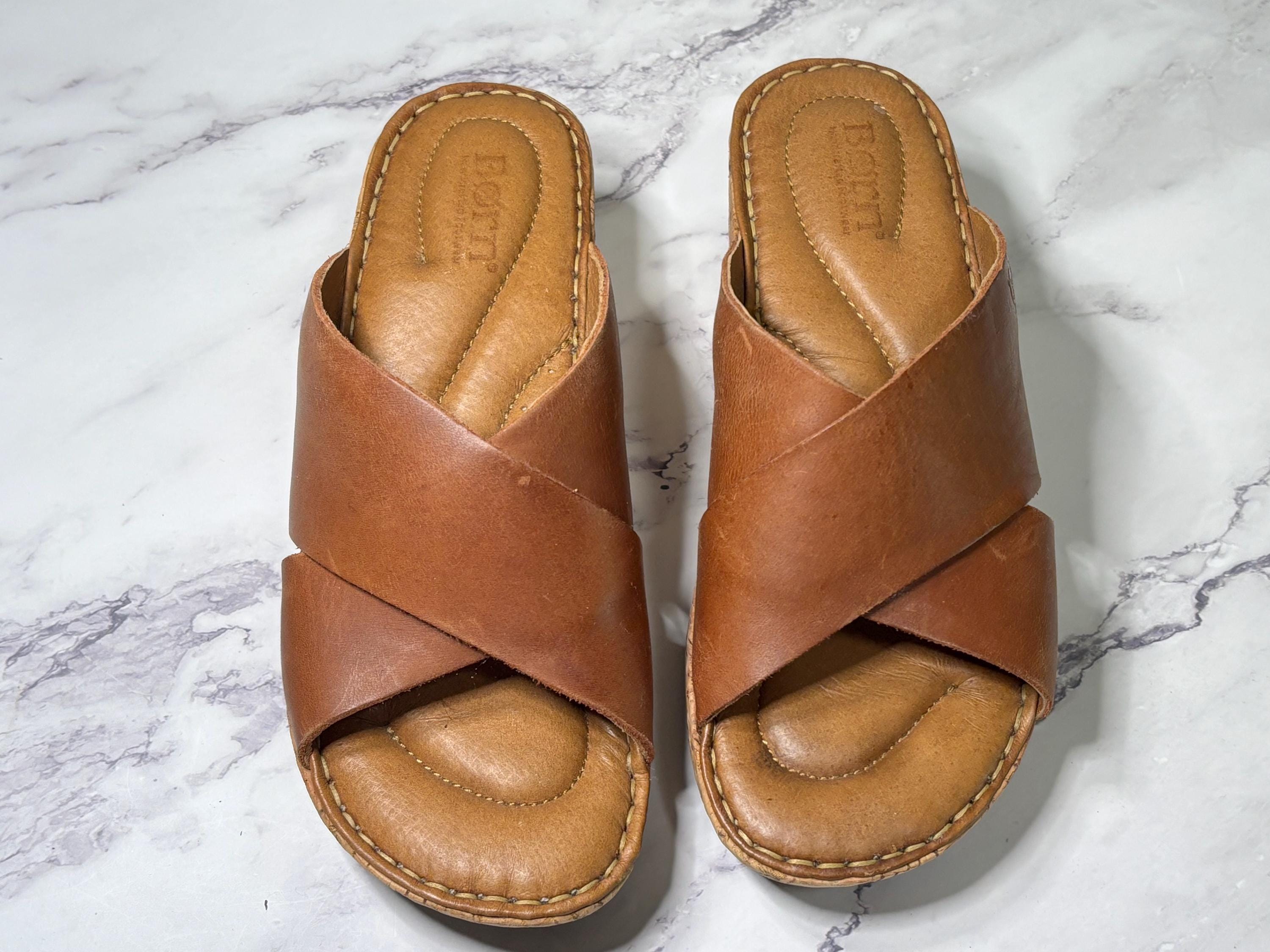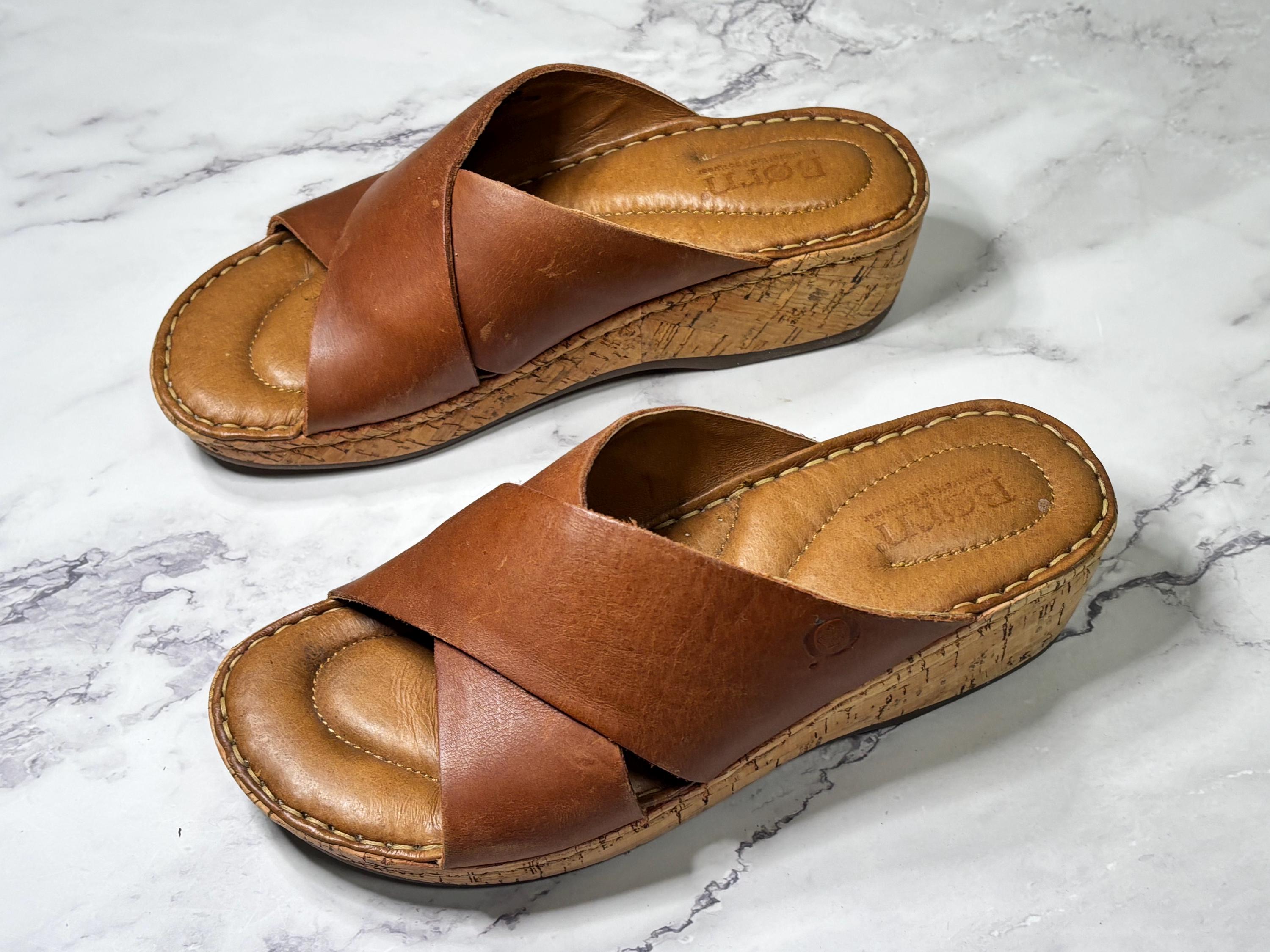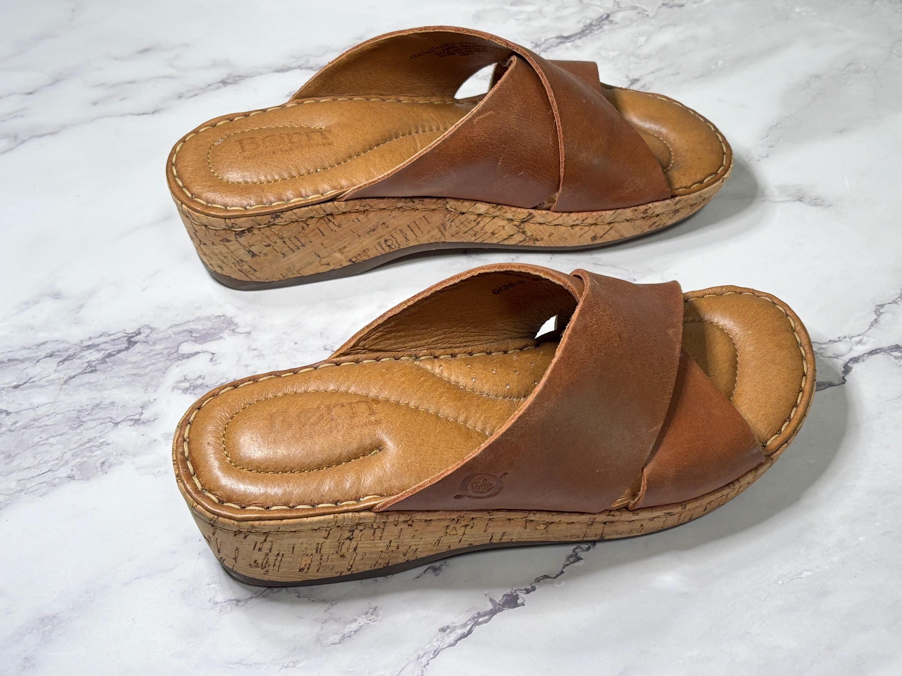 VISIT jaxinabox.com FOR ALL OUR LISTINGS!BOC by Born Womens Summer Wedge Sandals Leather Brown Tan Beige 6W Wide