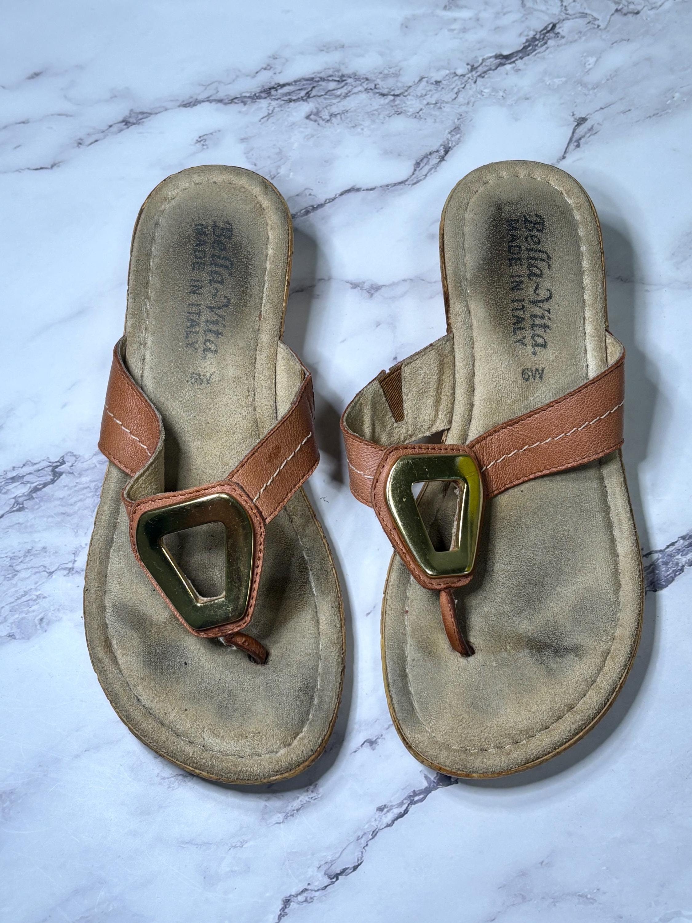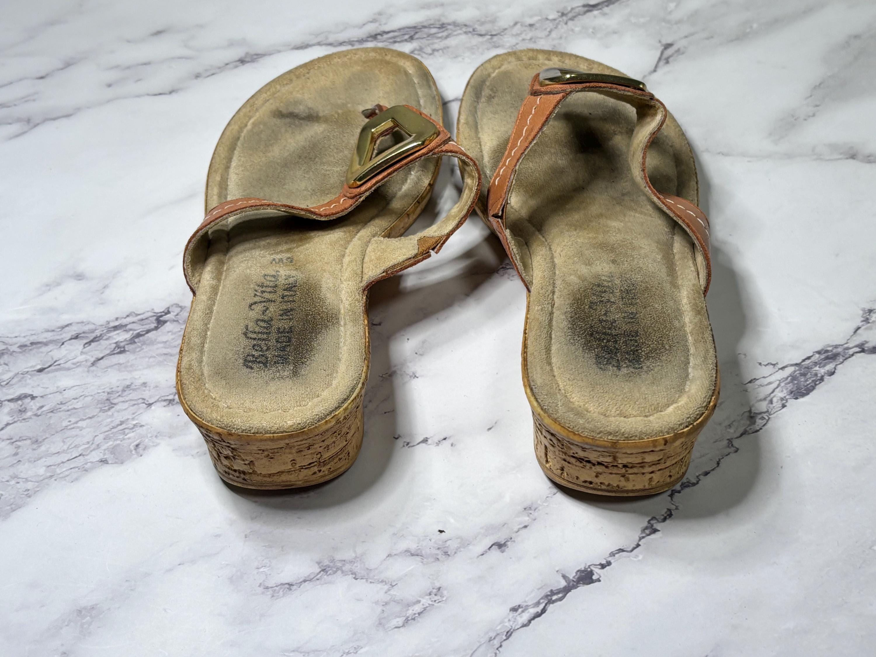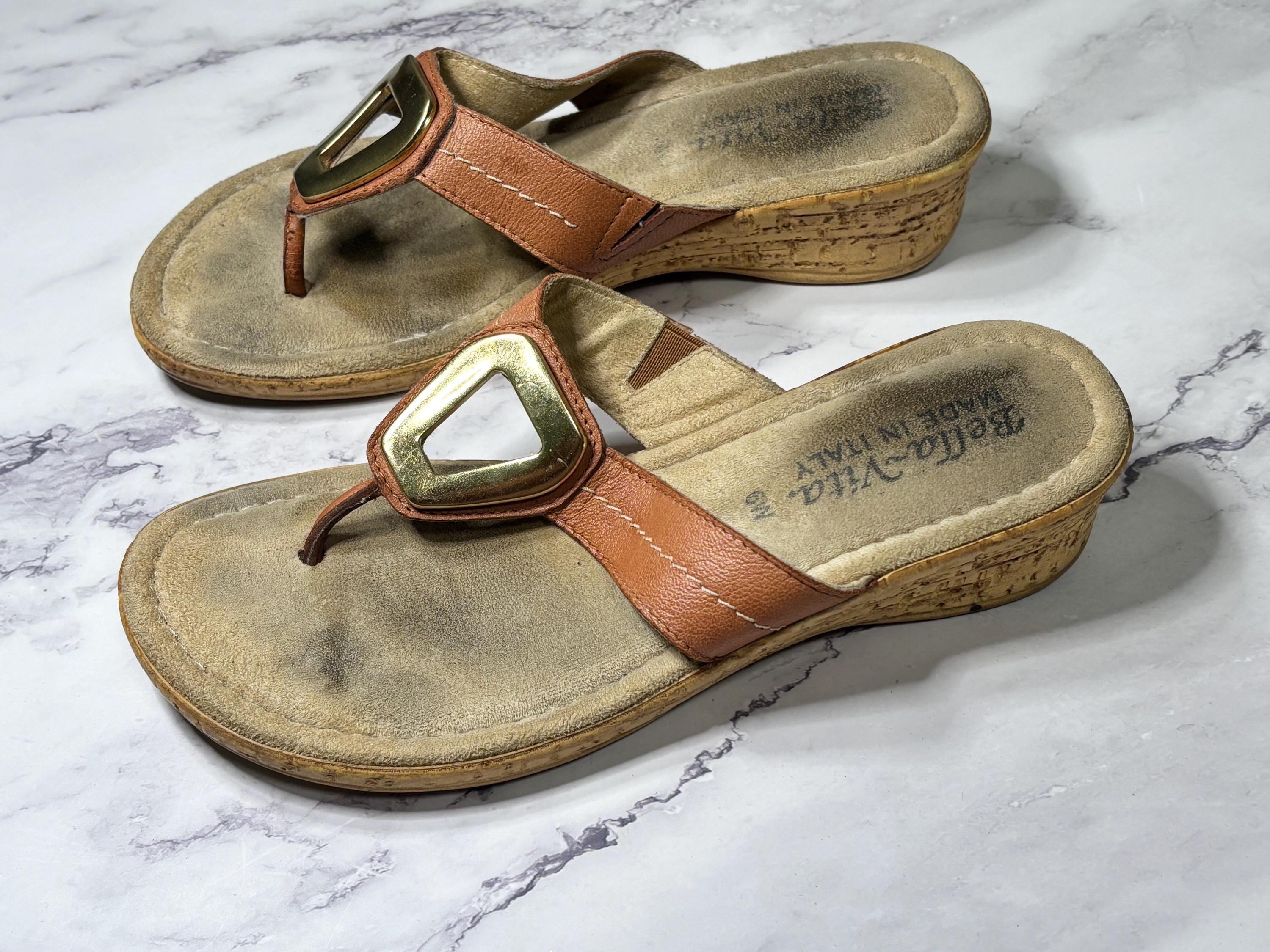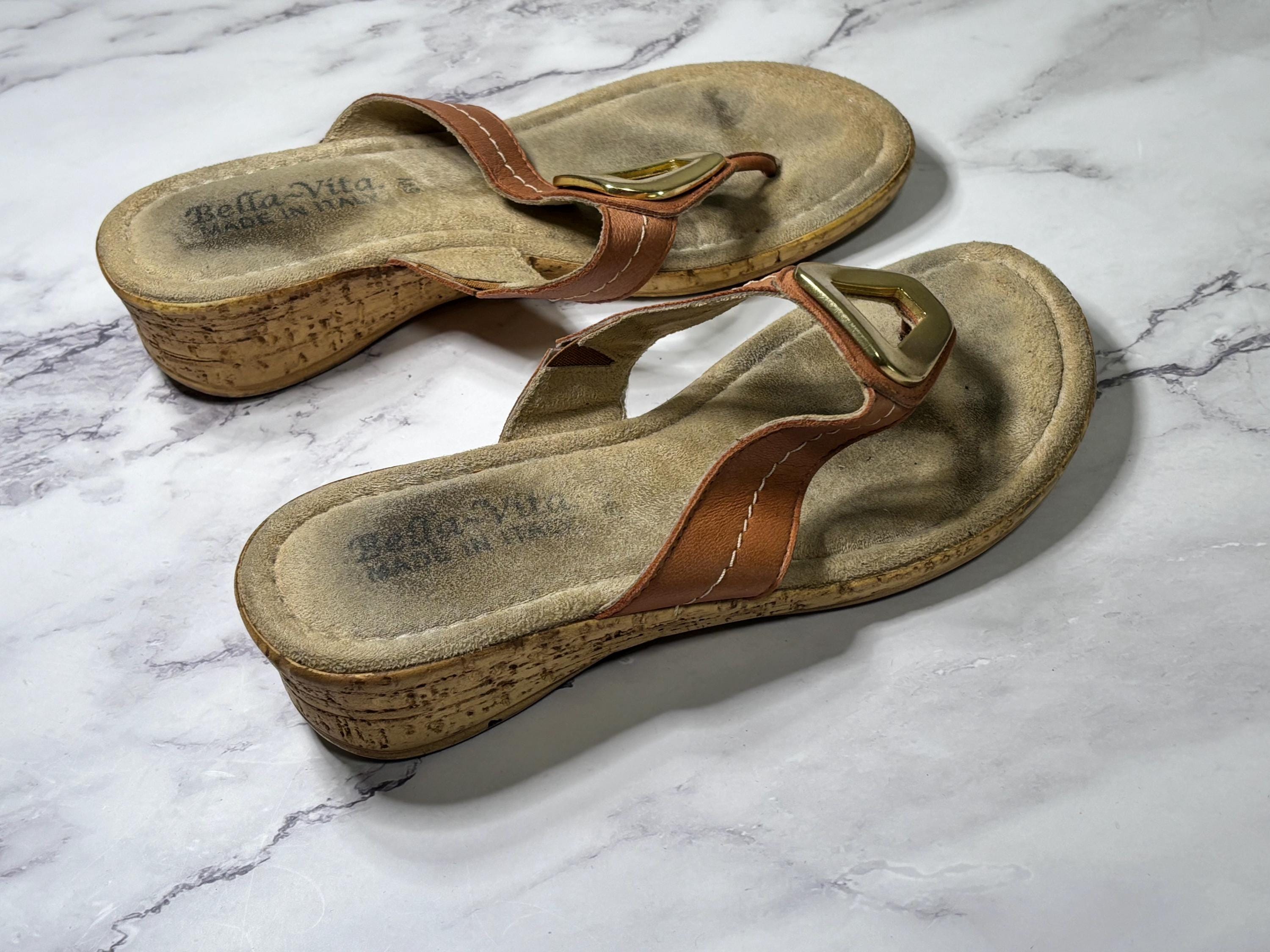VISIT jaxinabox.com FOR ALL OUR LISTINGS!Bella Vita Leather Cork Wedge Cushioned Slide Sandal Italy 6W Wide