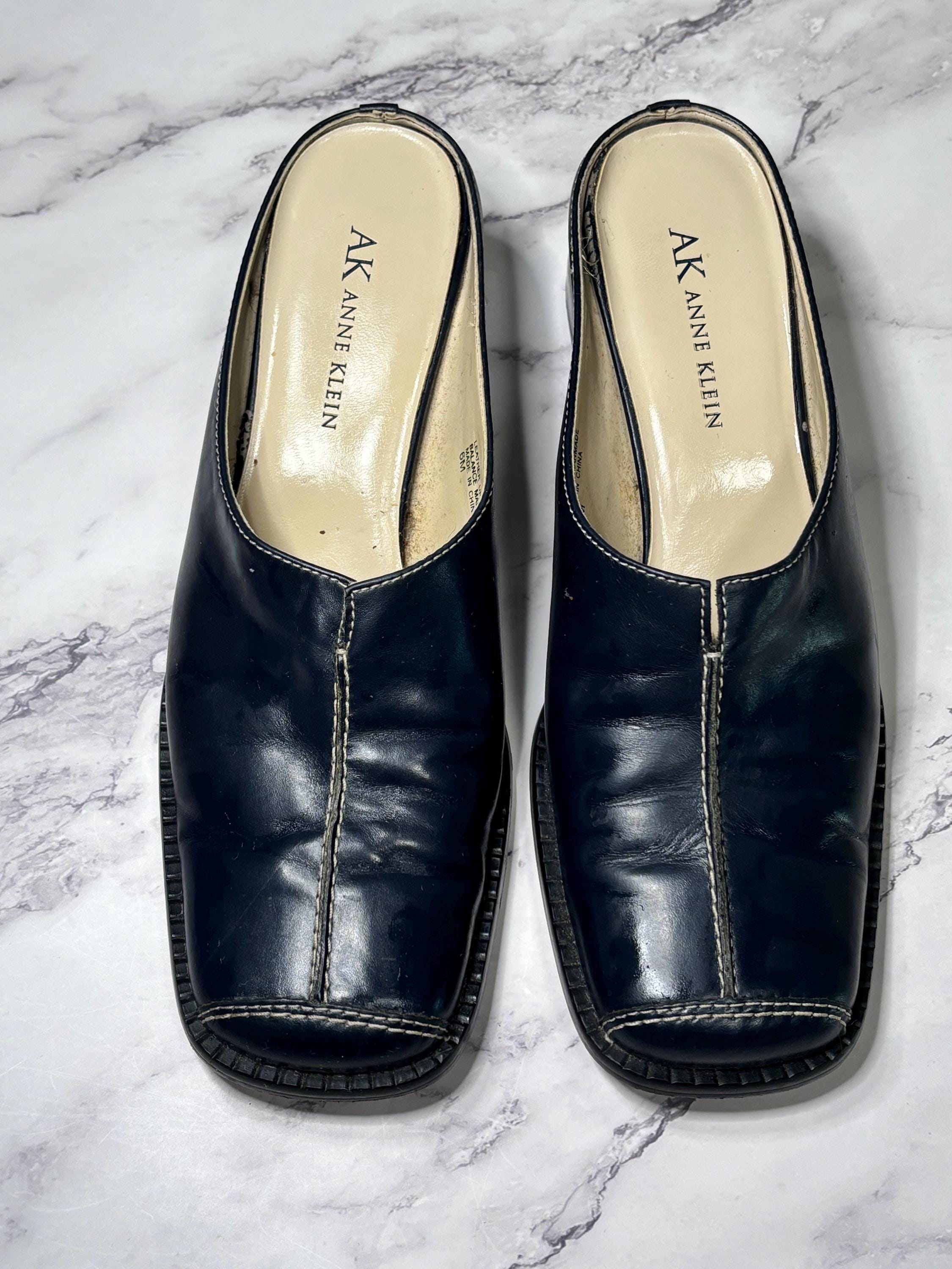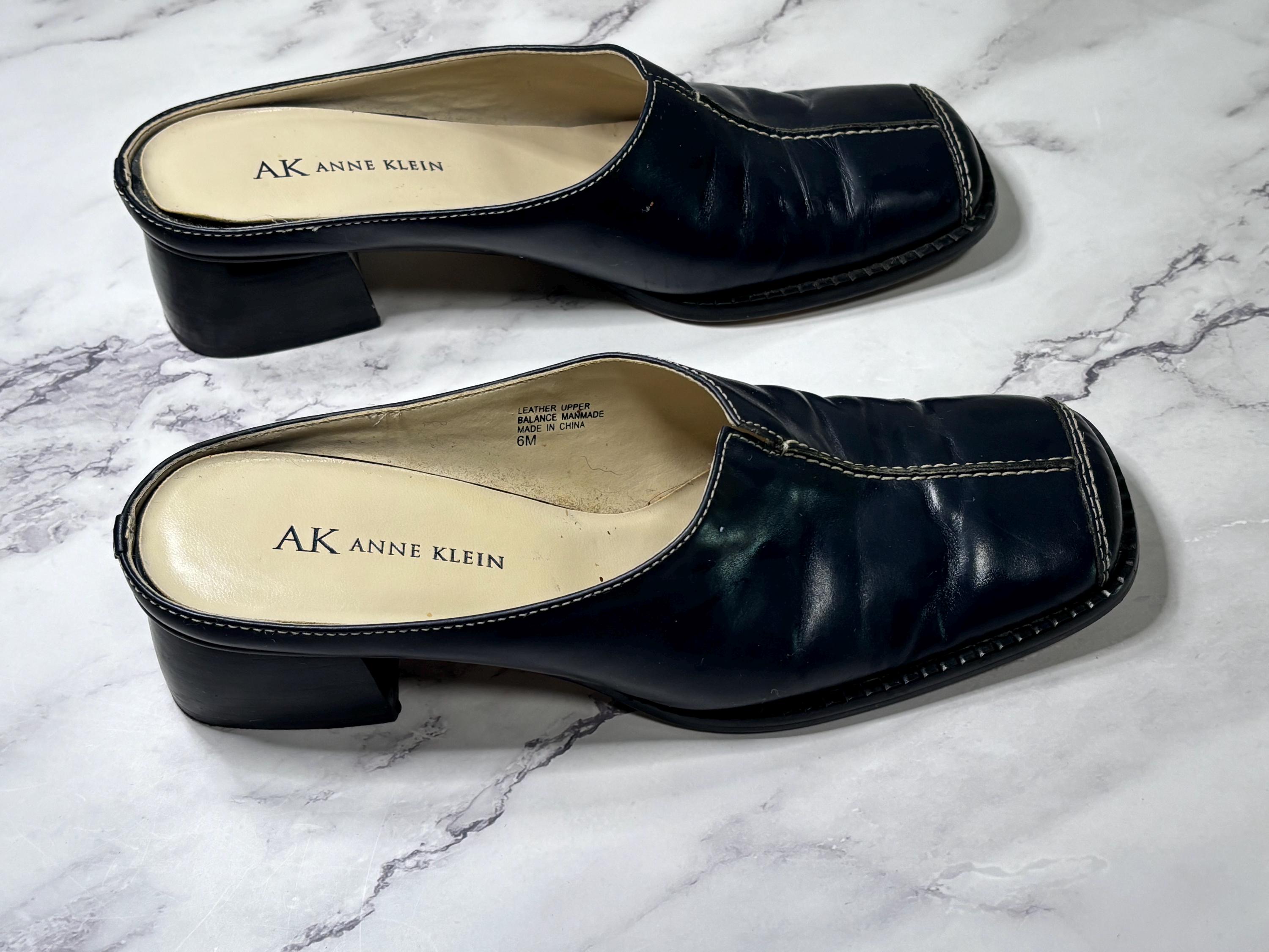 VISIT jaxinabox.com FOR ALL OUR LISTINGS!Anne Klein Black Mules Slip On Open Back Leather Upper Sandals Shoes Size 6M