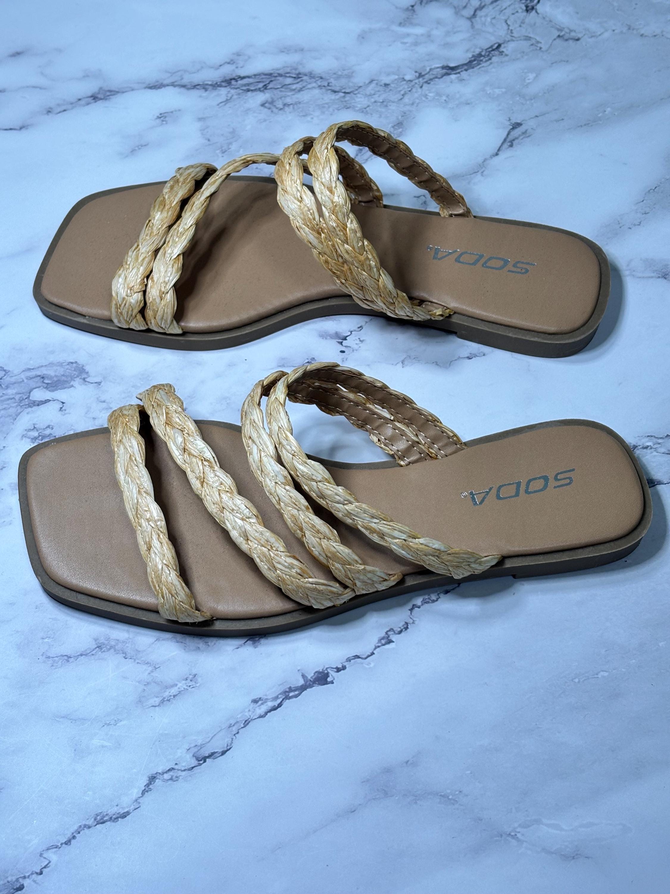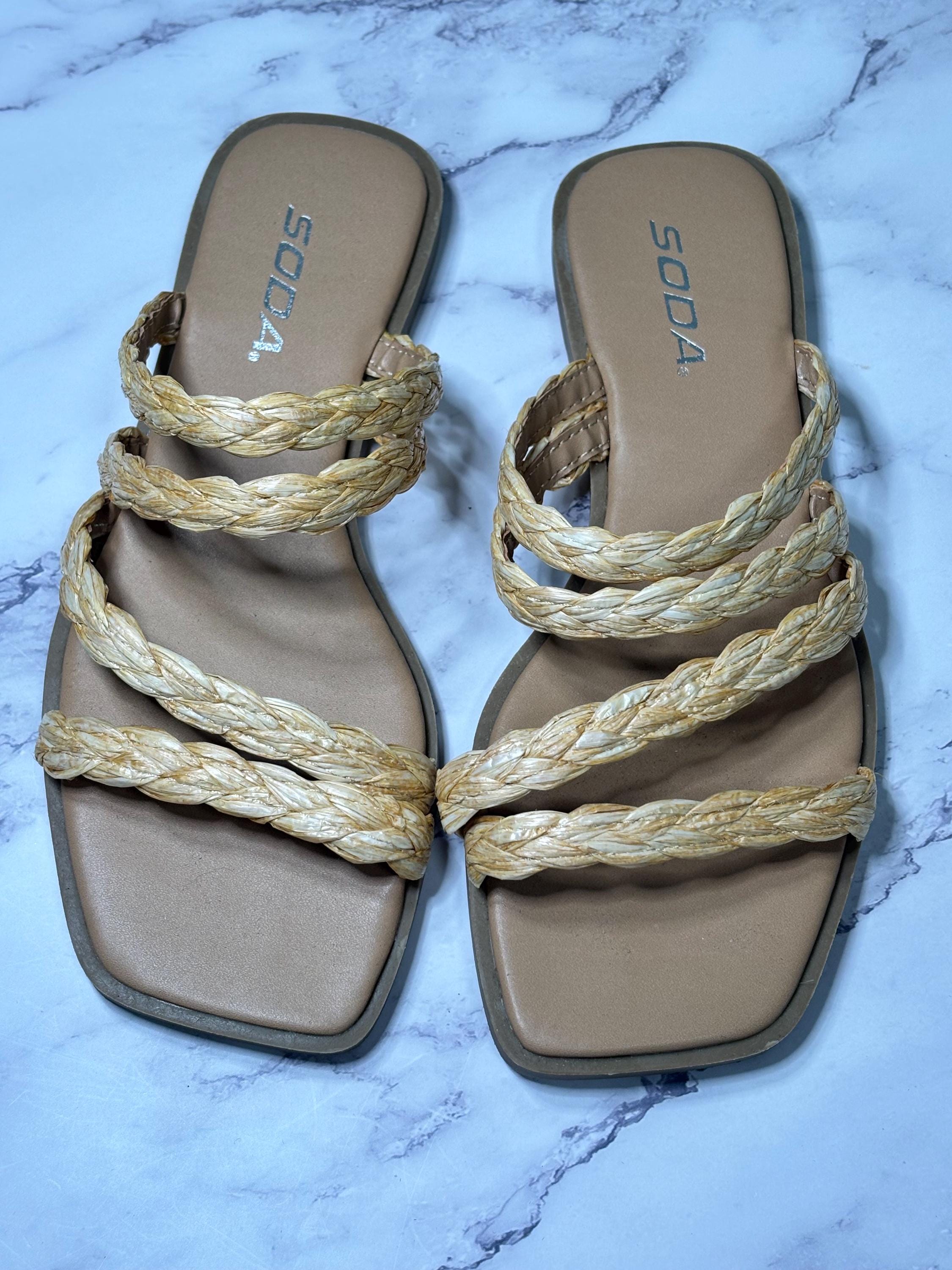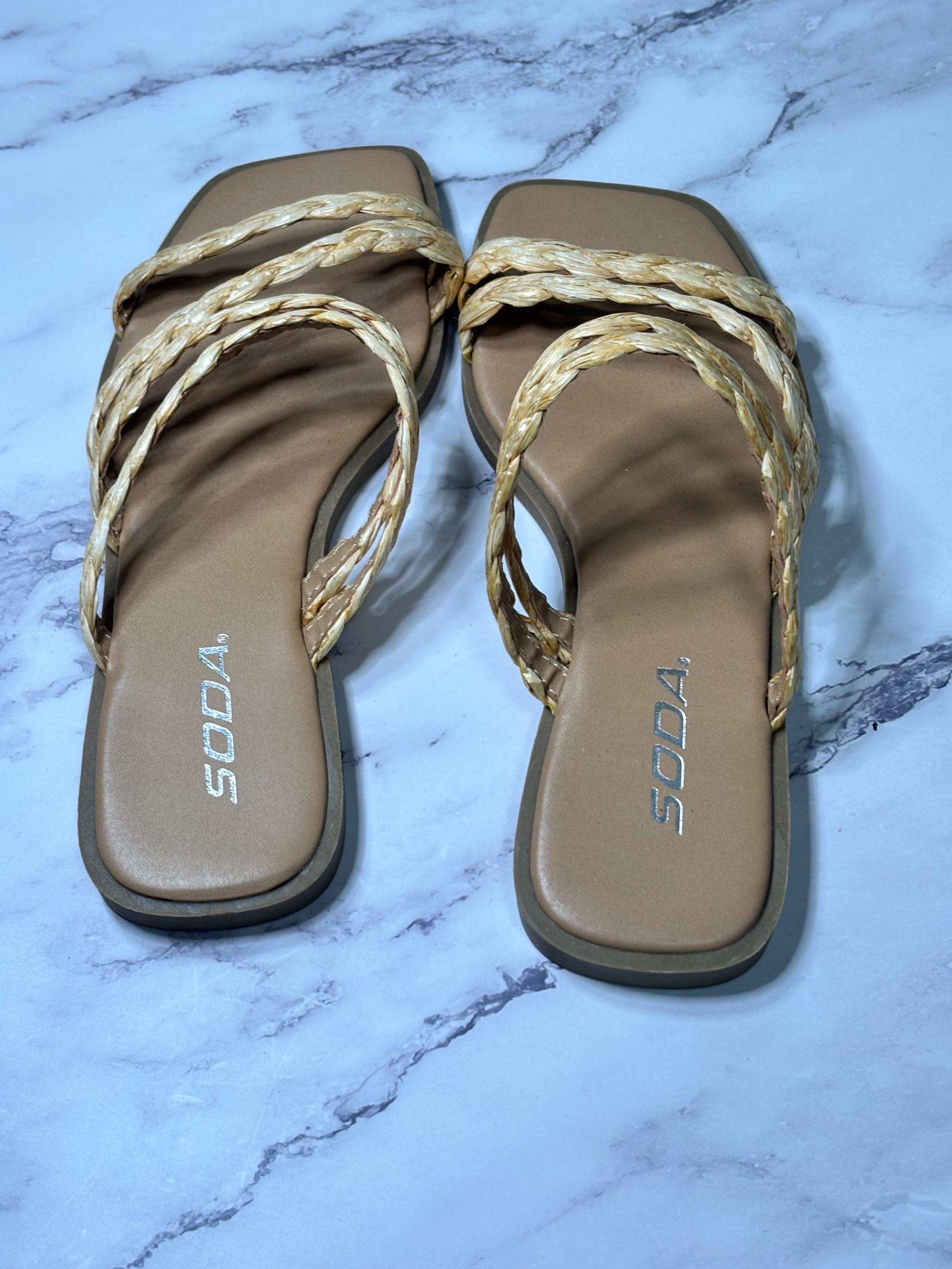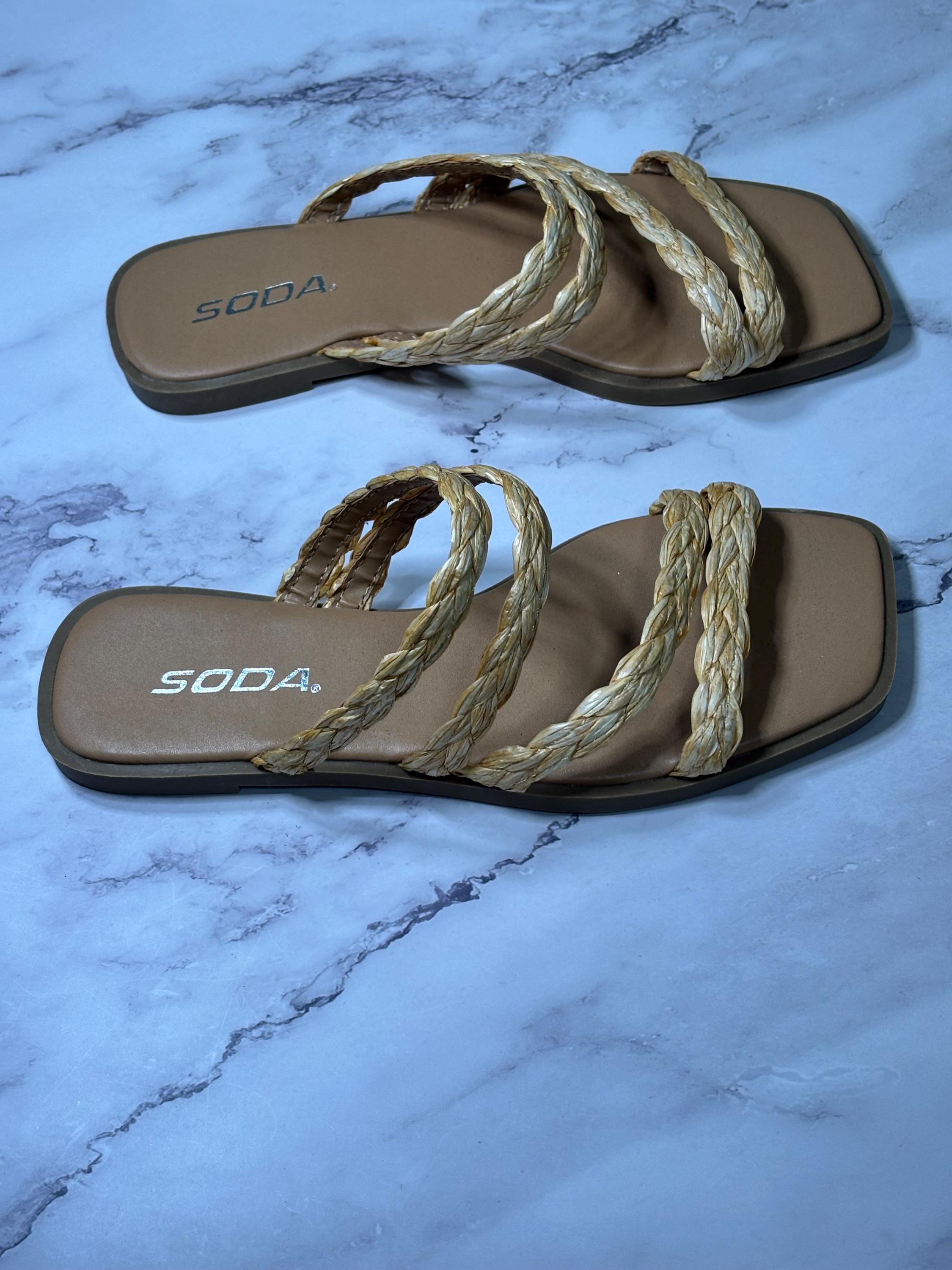 VISIT jaxinabox.com FOR ALL OUR LISTINGS!SODA Vault Braided Square Toe Womens Flat Tan Sandals Shoes 6