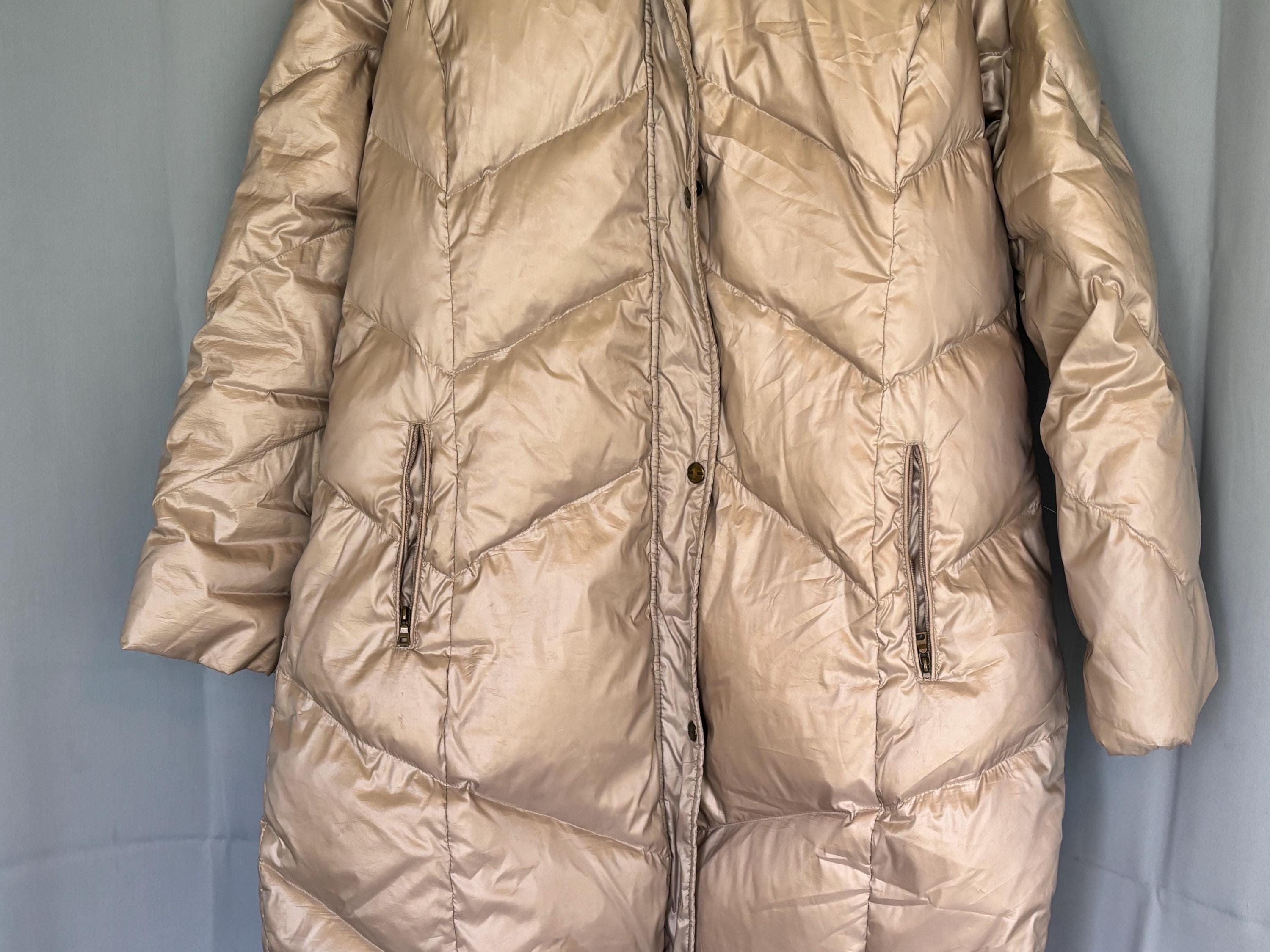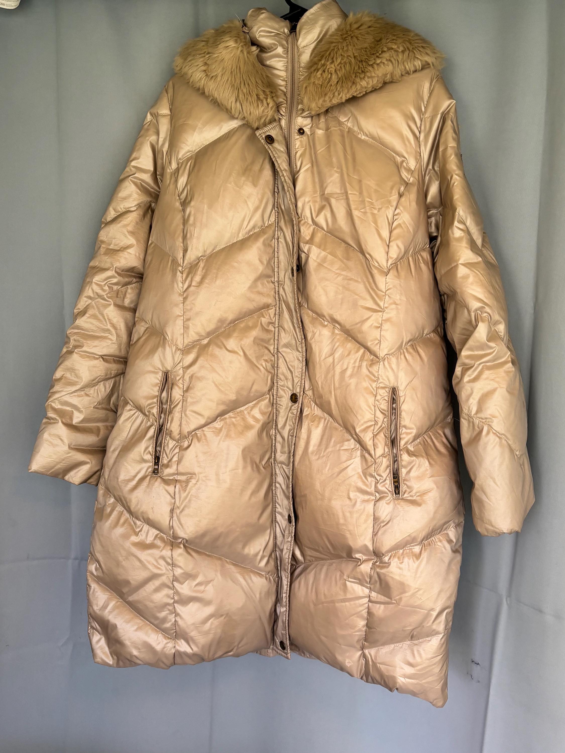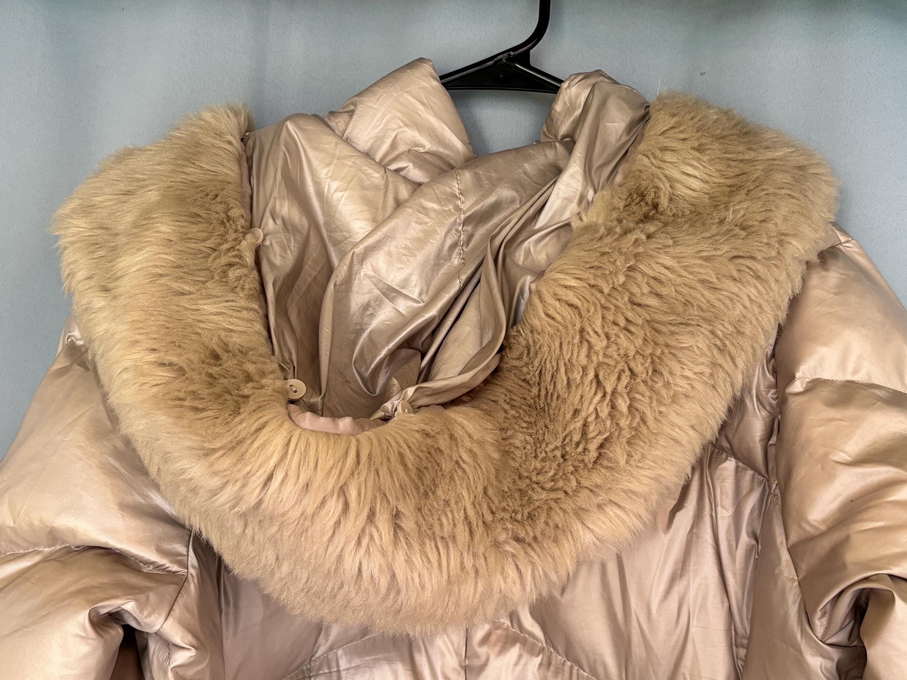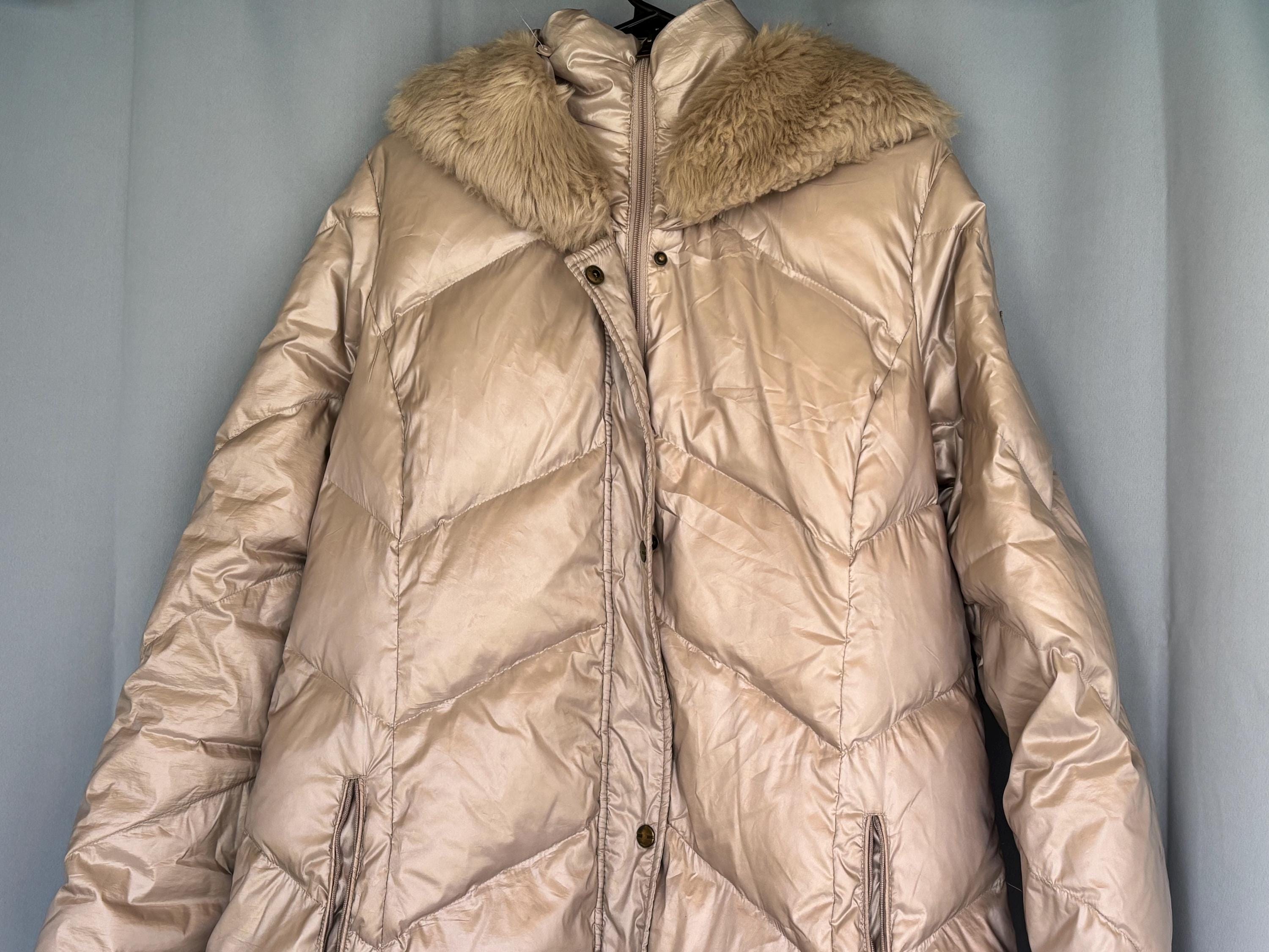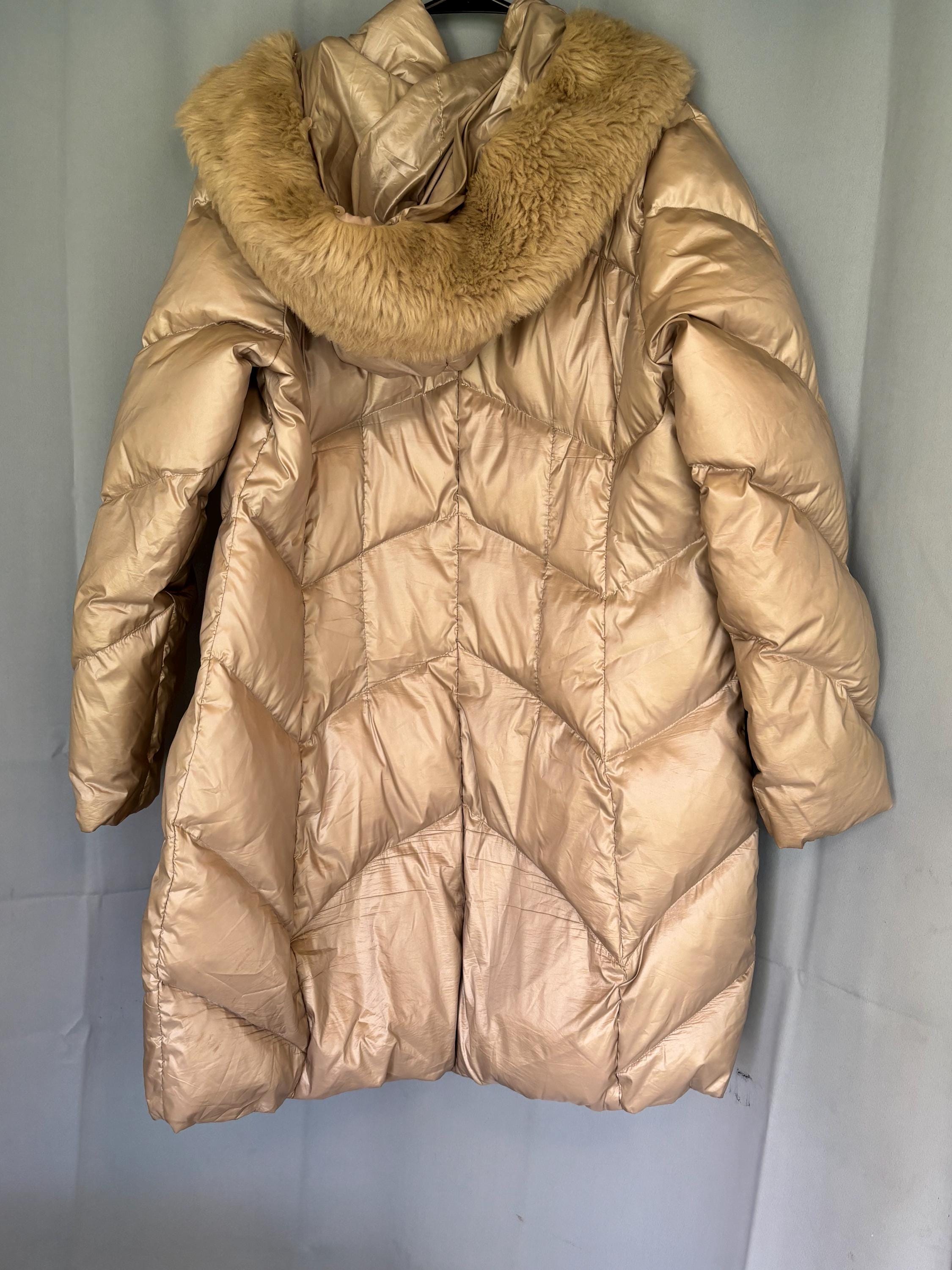 VISIT jaxinabox.com FOR ALL OUR LISTINGS!Larry Levine Women Quilted Beige Puffer Coat with Faux Fur Trim Hood Cream