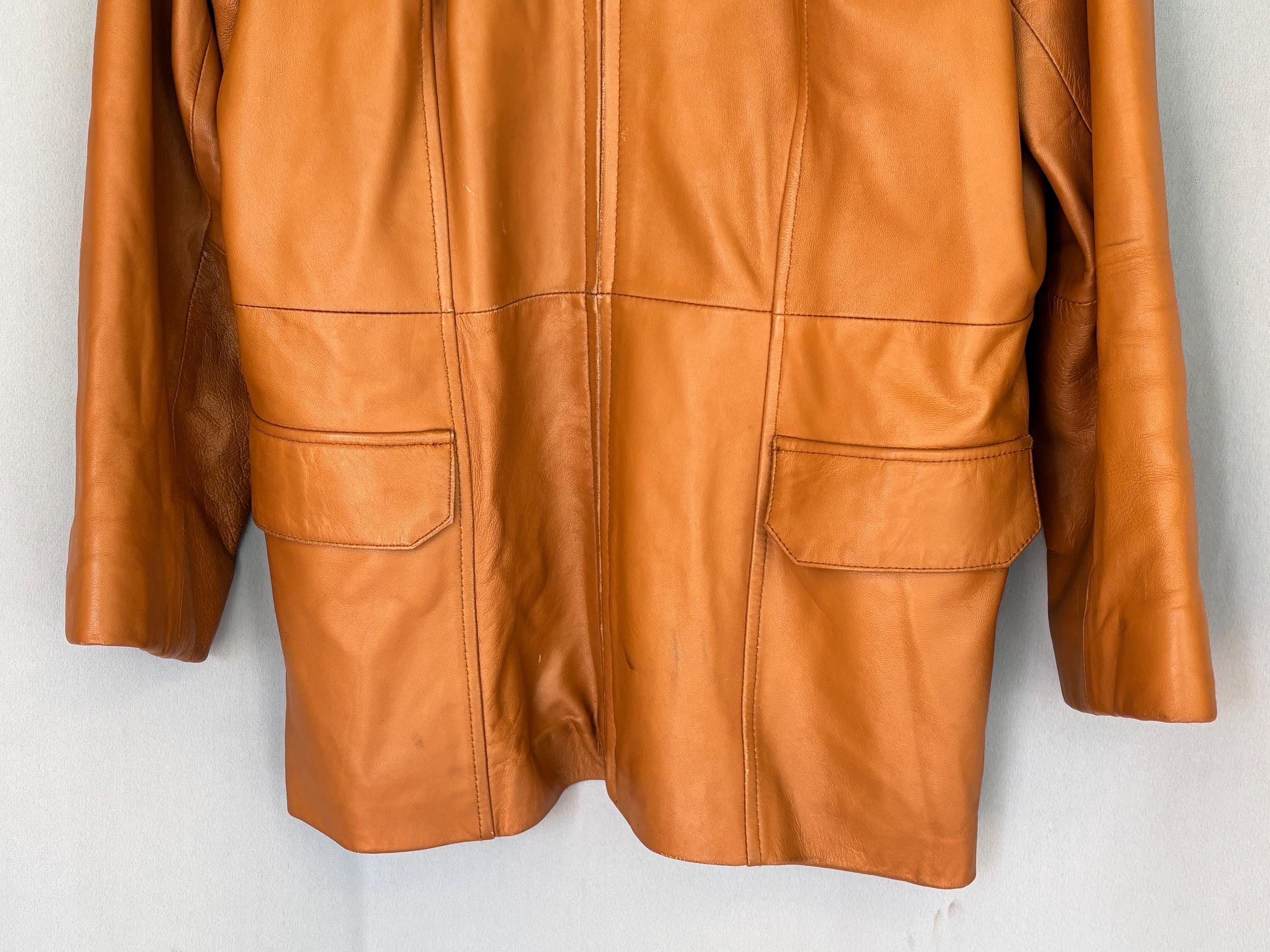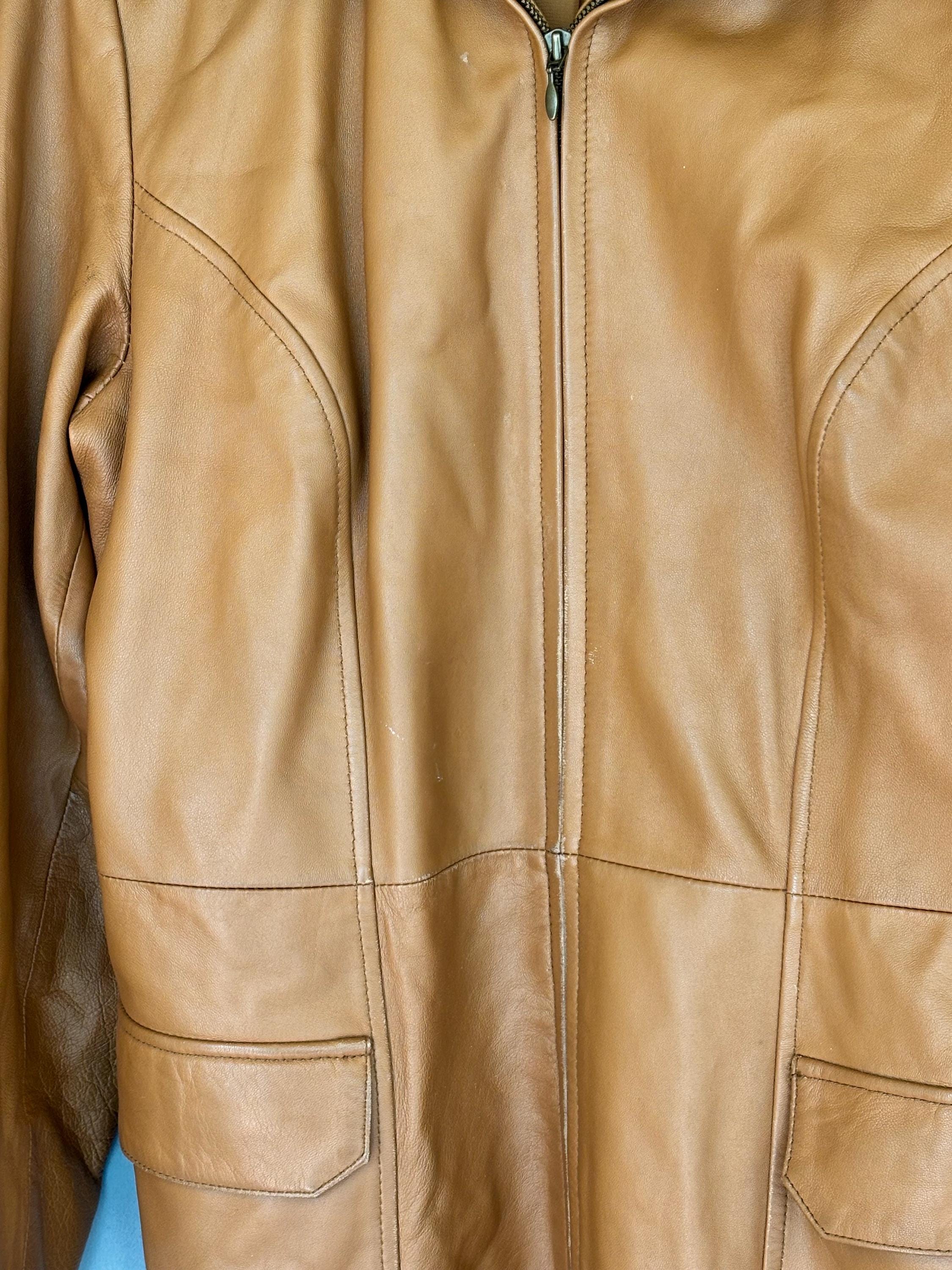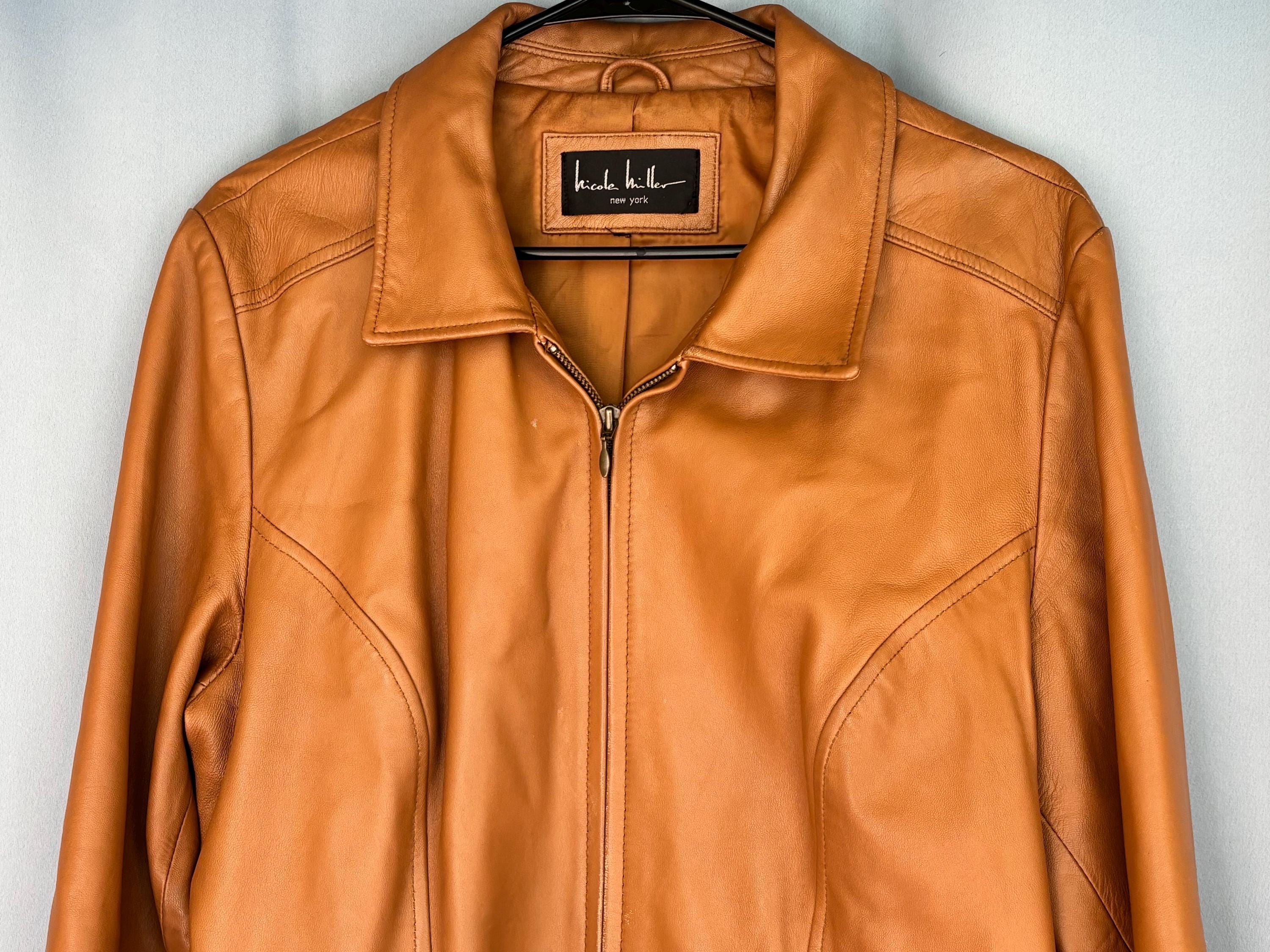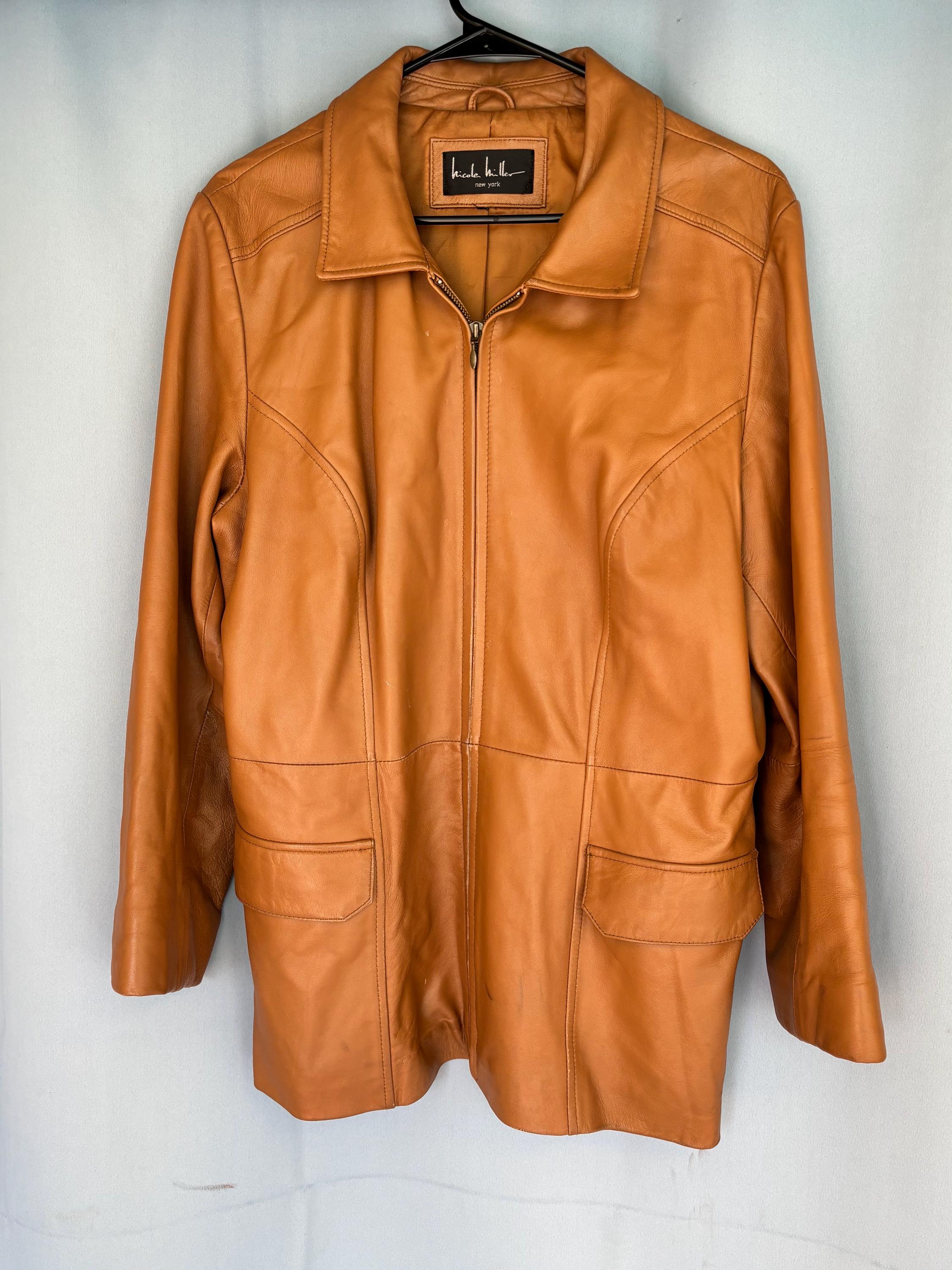 VISIT jaxinabox.com FOR ALL OUR LISTINGS!Nicole Miller Tan Brown Beige genuine leather button up jacket blazer Women’s