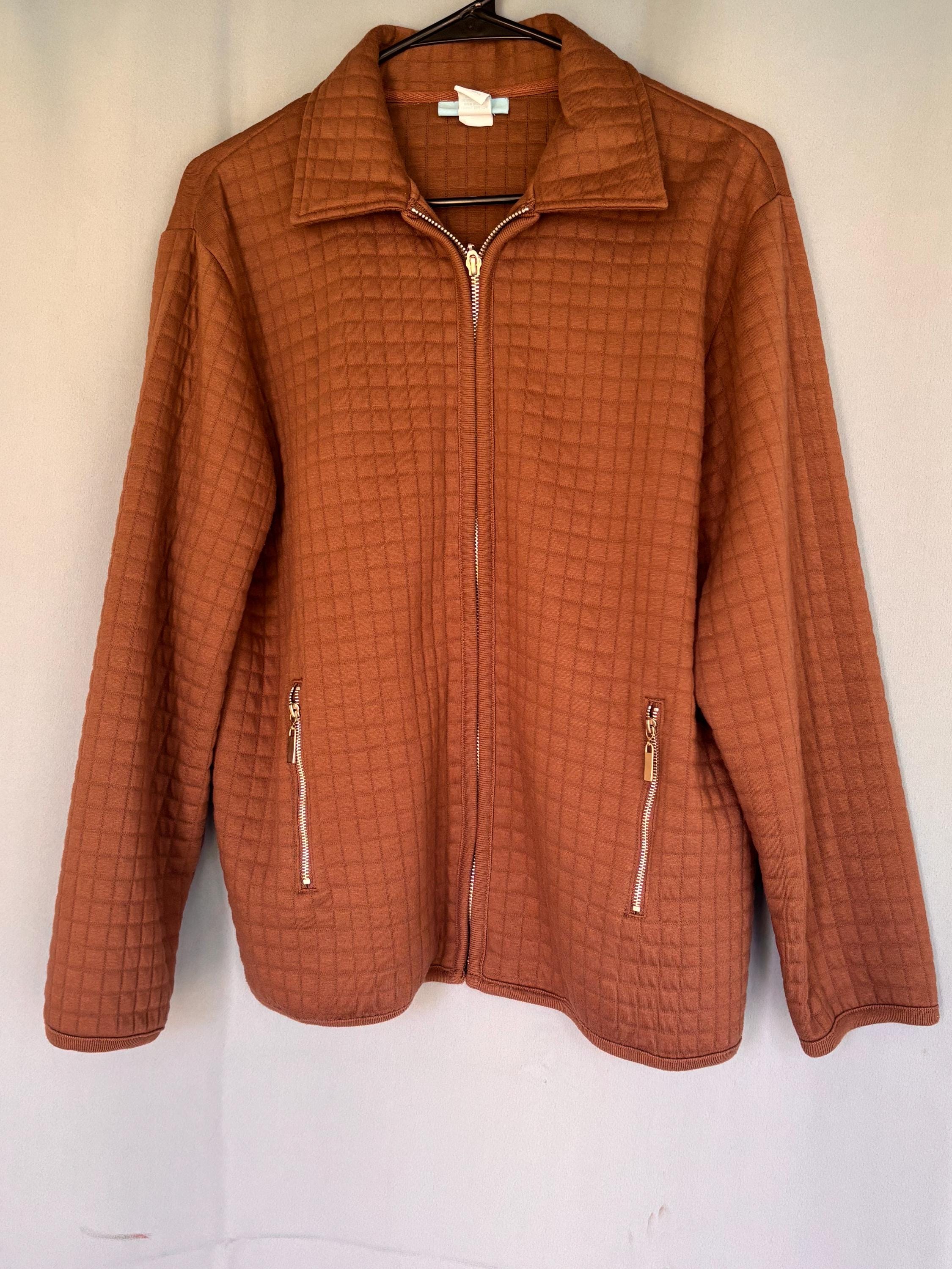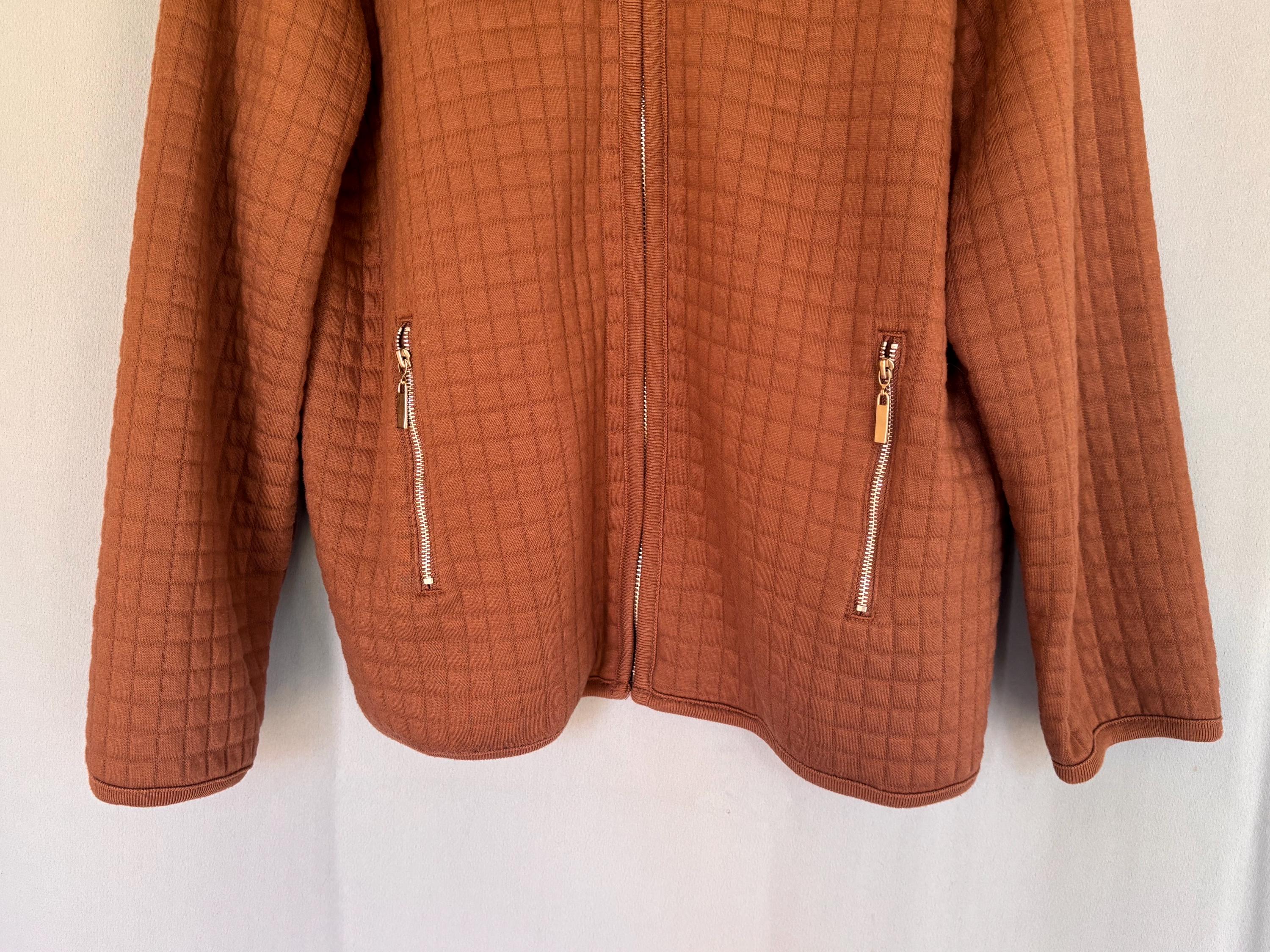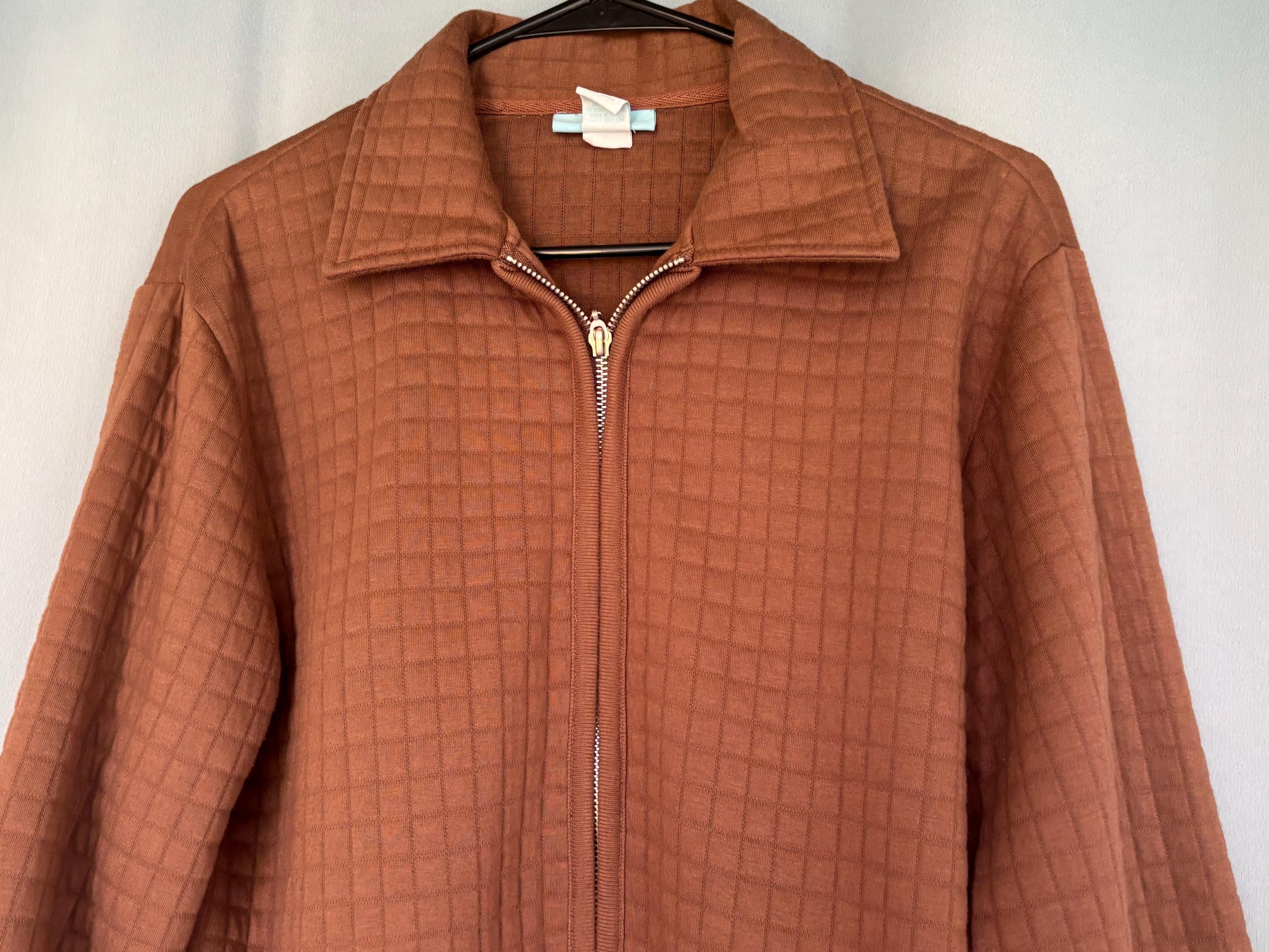 VISIT jaxinabox.com FOR ALL OUR LISTINGS!Jennifer Moore Vintage Quilted Knit Brown Bronze Women’s Jacket Top Medium M
