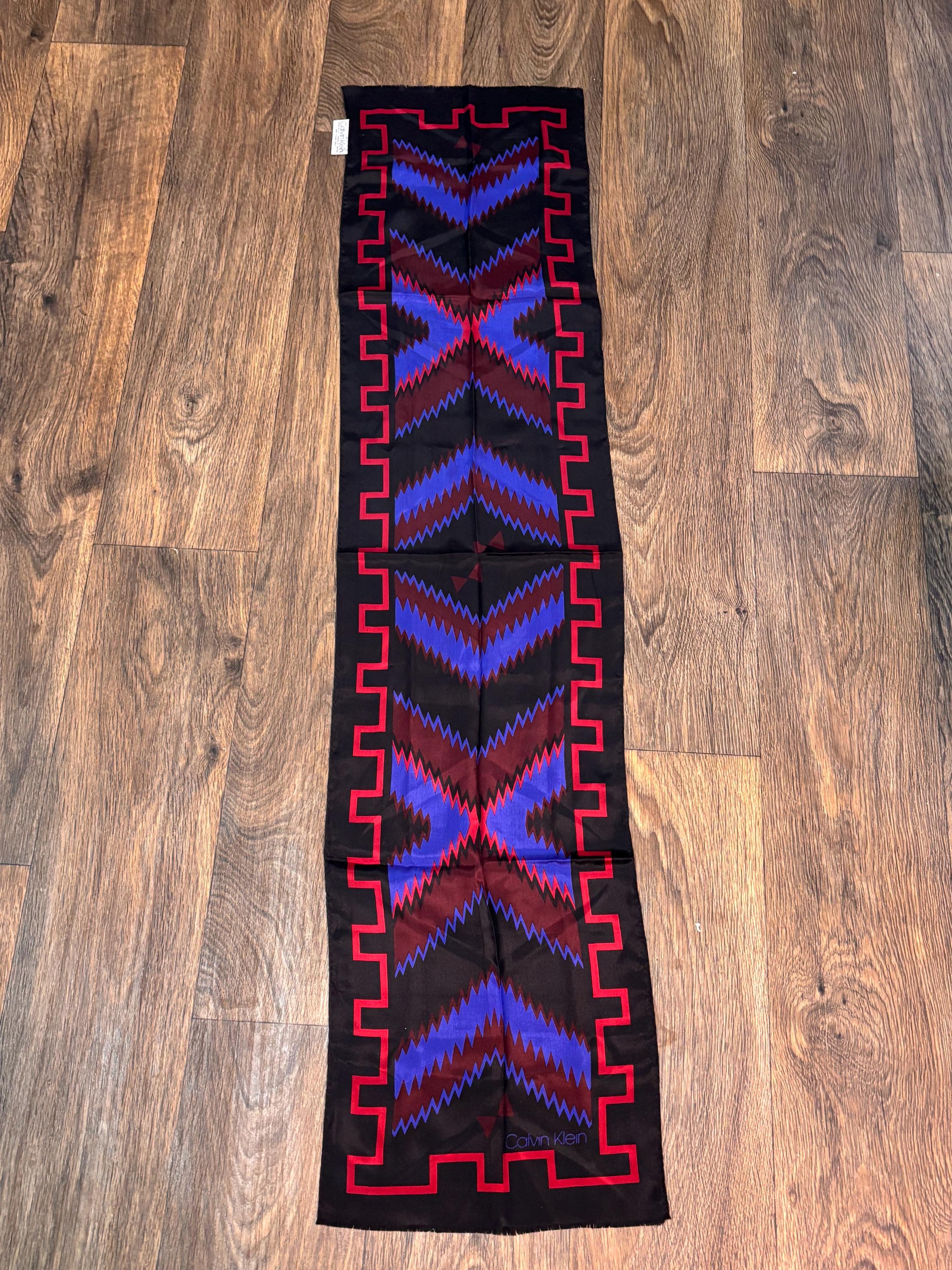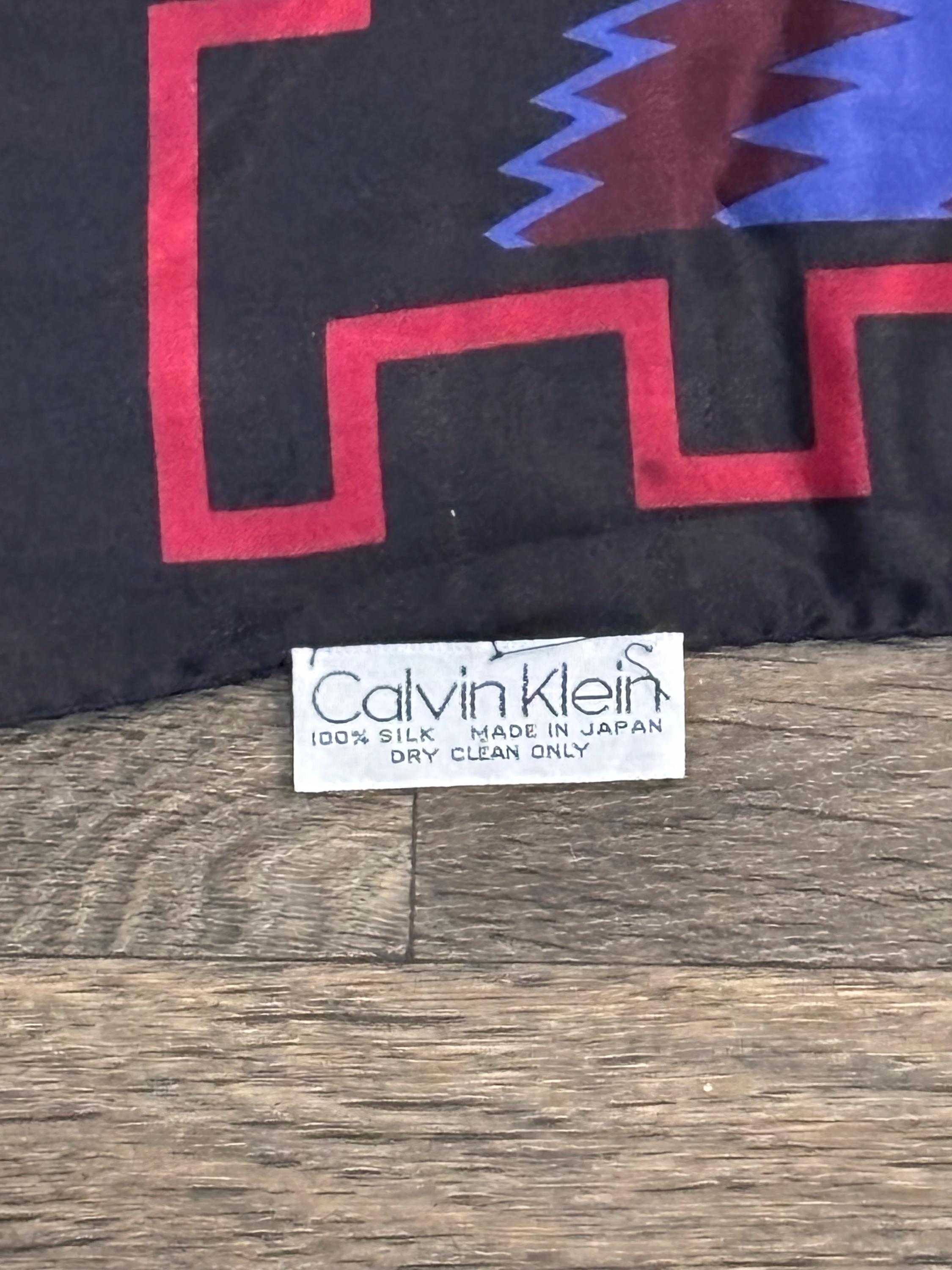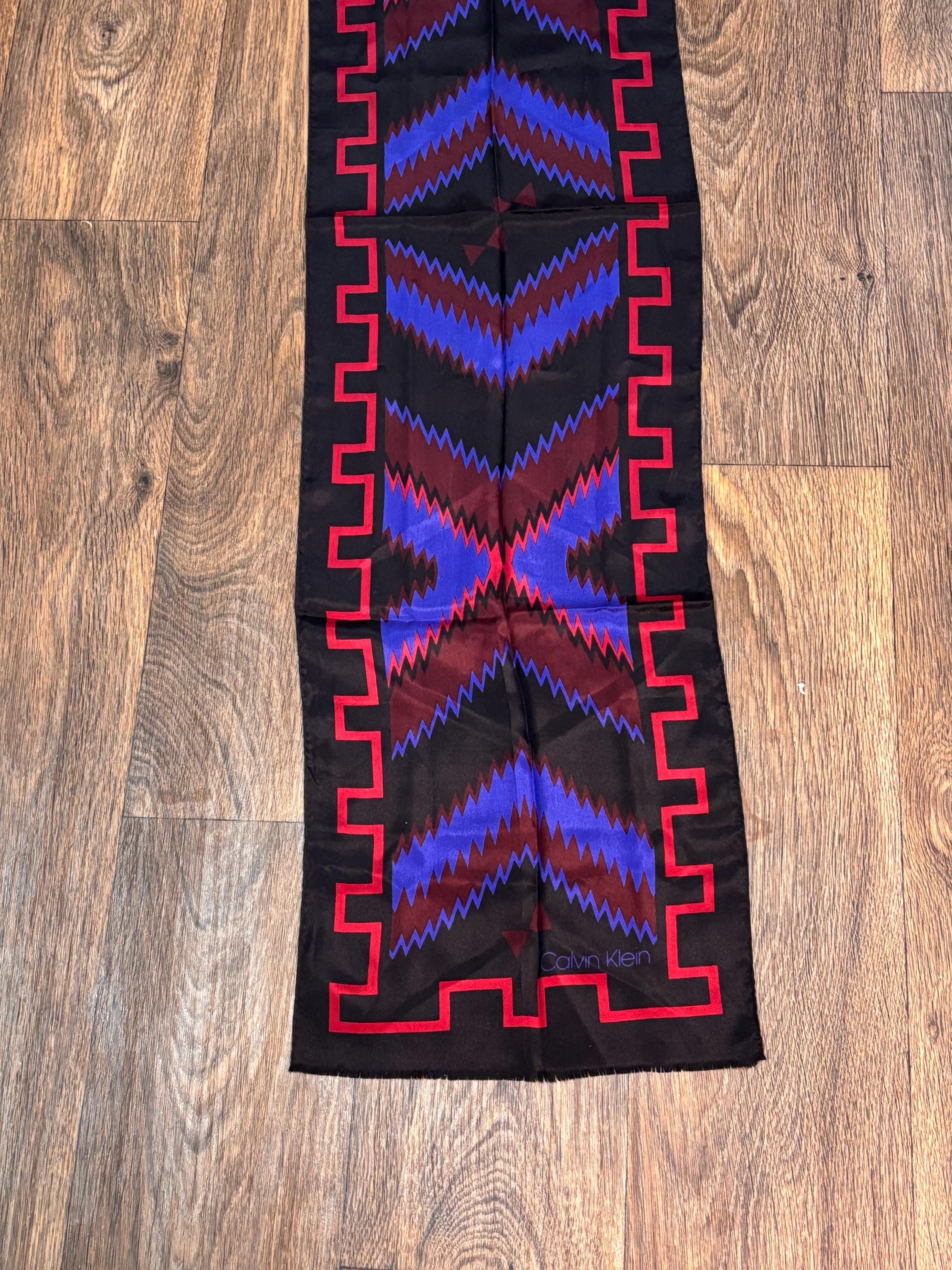 VISIT jaxinabox.com FOR ALL OUR LISTINGS!Calvin Klein Vintage 100% Silk Scarf Wrap Shawl Blue Red Black Womens