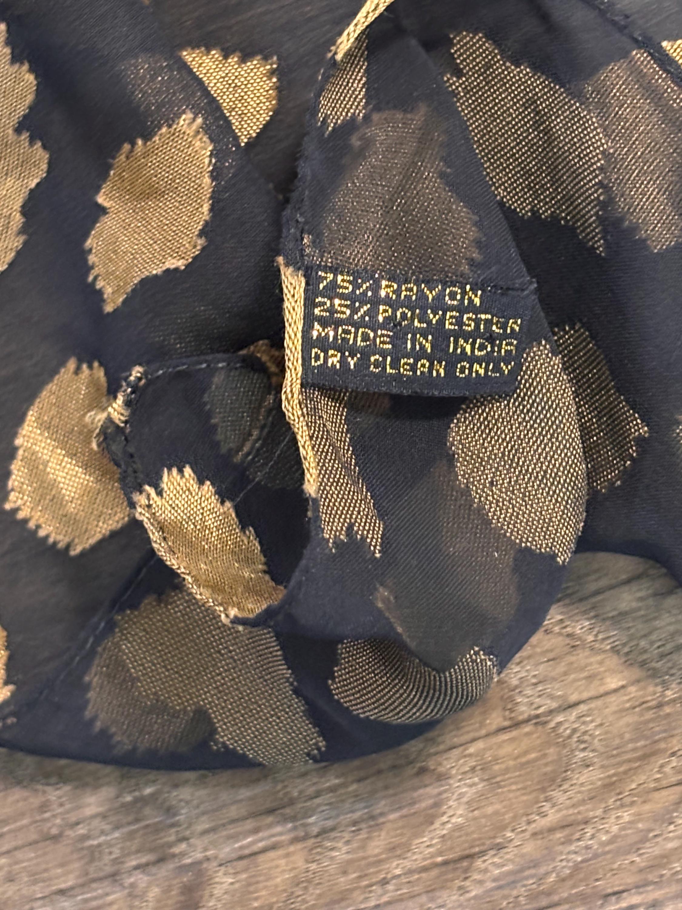 VISIT jaxinabox.com FOR ALL OUR LISTINGS!Vintage Scarf Wrap Shawl Black Gold Leapord Womens