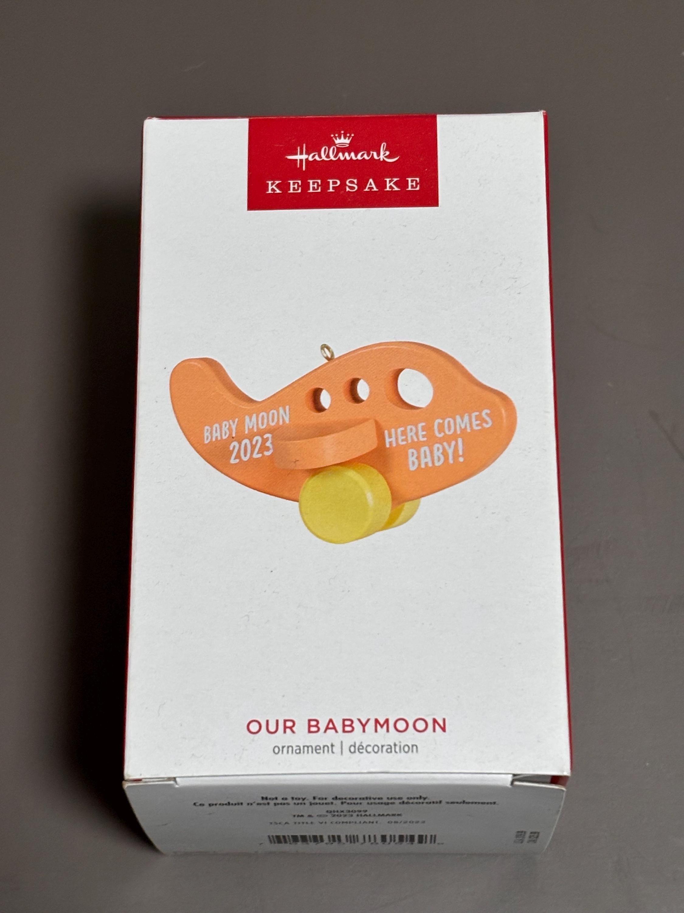 VISIT jaxinabox.com FOR ALL OUR LISTINGS!2023 Hallmark OUR BABYMOON Baby Wood Airplane Keepsake Christmas Ornament