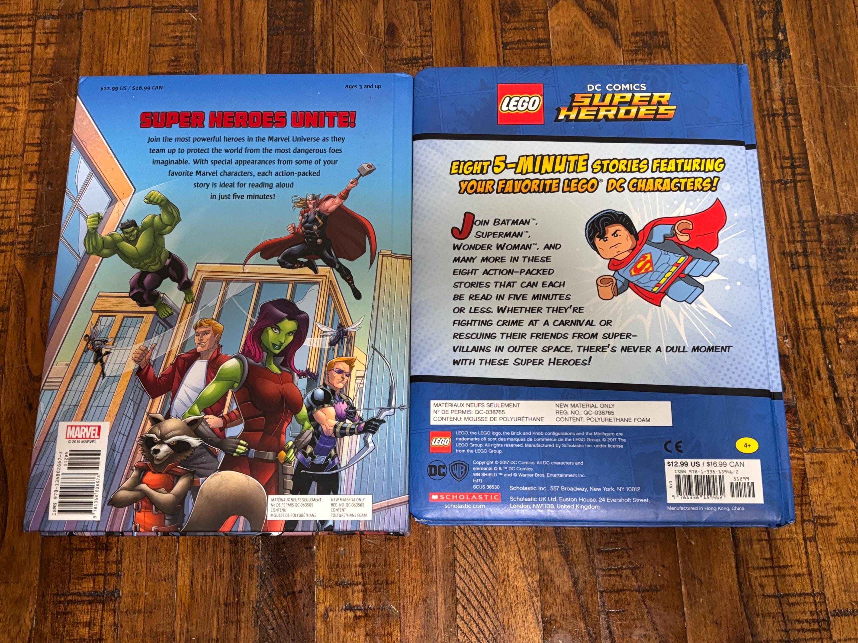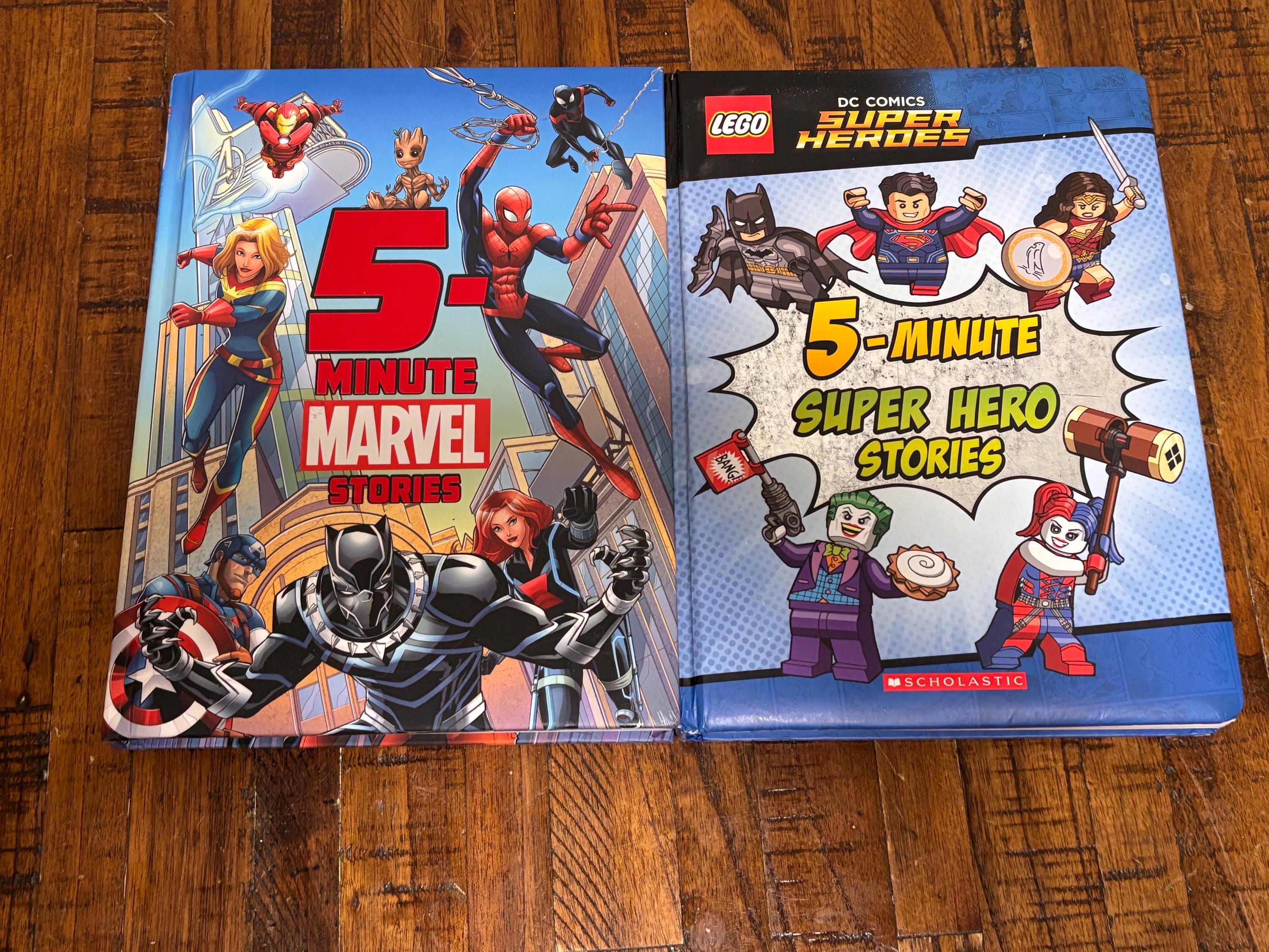 VISIT jaxinabox.com FOR ALL OUR LISTINGS!Lot of 2 Young Boys Girls Childern Kid Books Lego 5 Minute Super Hero Stories