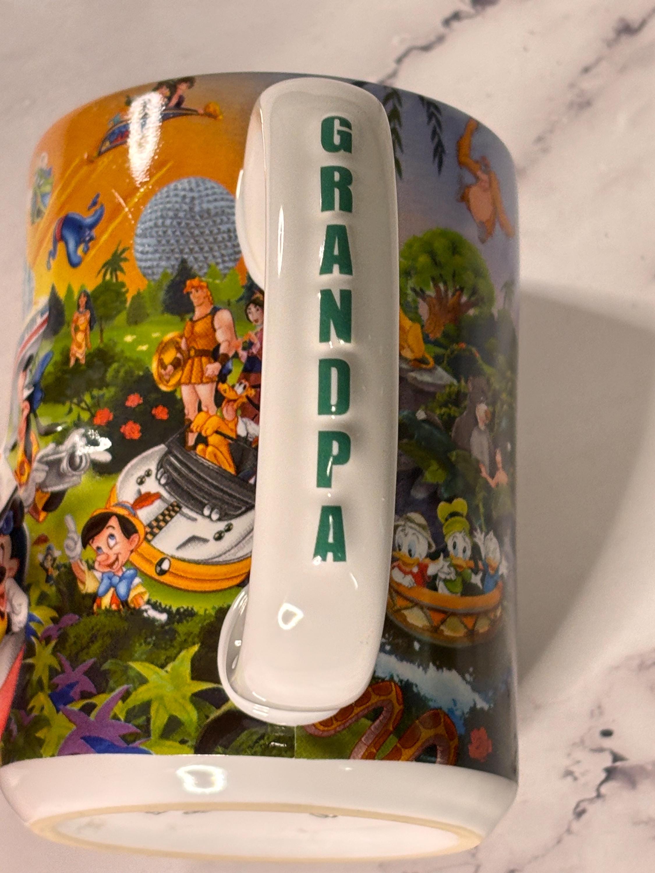 VISIT jaxinabox.com FOR ALL OUR LISTINGS!VTG Walt Disney World Grandpa 3D 16 oz Mug Cup Four Parks One World Splash Mount