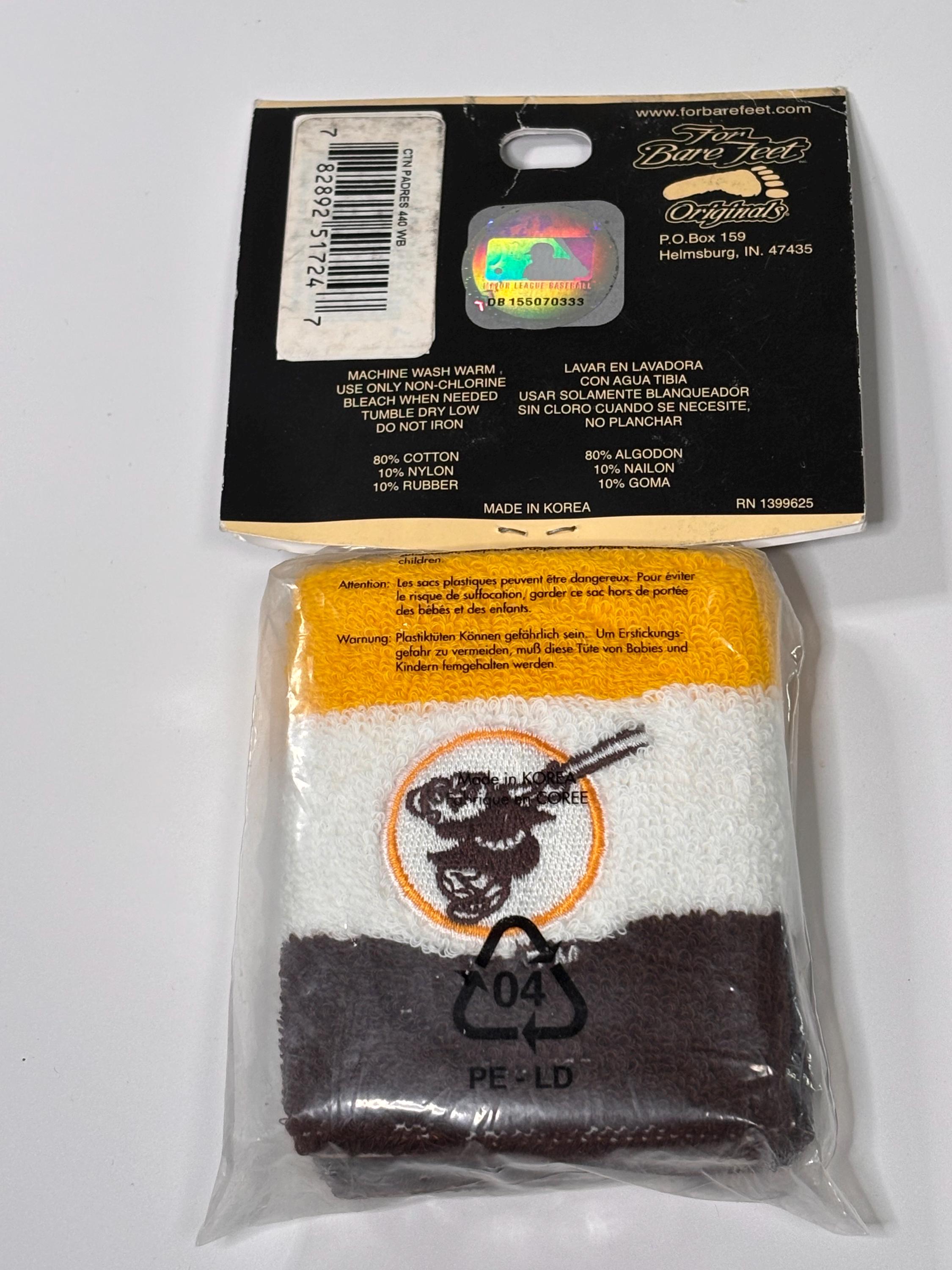 VISIT jaxinabox.com FOR ALL OUR LISTINGS!For Bare Feet San Diego Padres Cooperstown Collection 2 Double Wide Wristbands Yellow Brown White MLB Baseball New