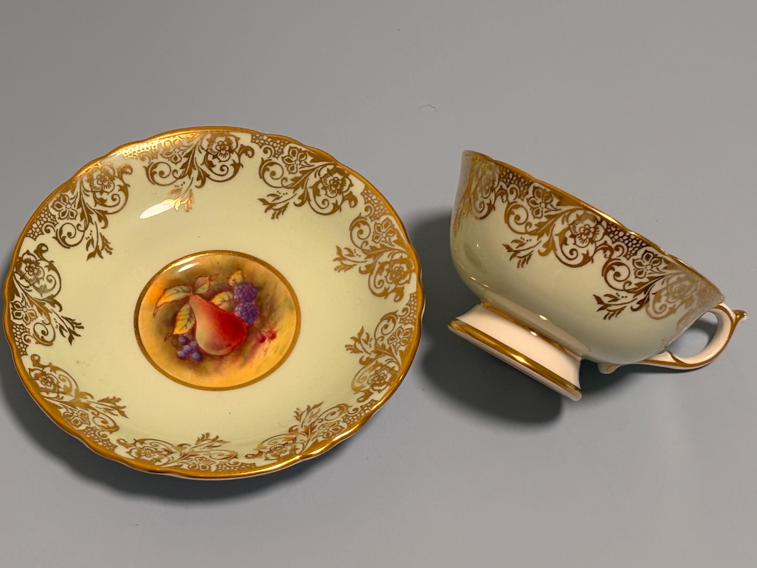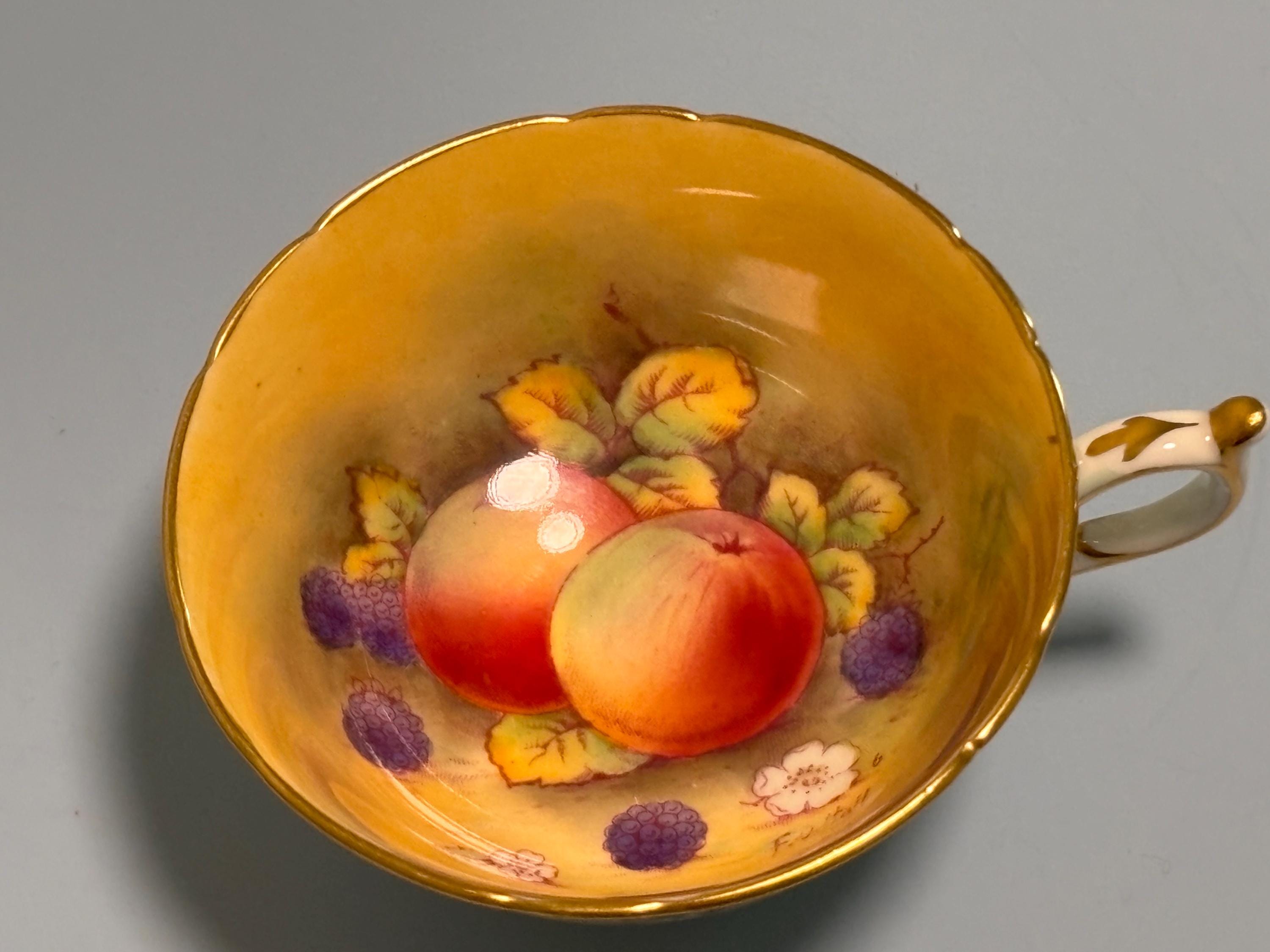VISIT jaxinabox.com FOR ALL OUR LISTINGS!Paragon Blue Gold Gilding Orchard Fruit Teacup & Saucer Signed F D Hall