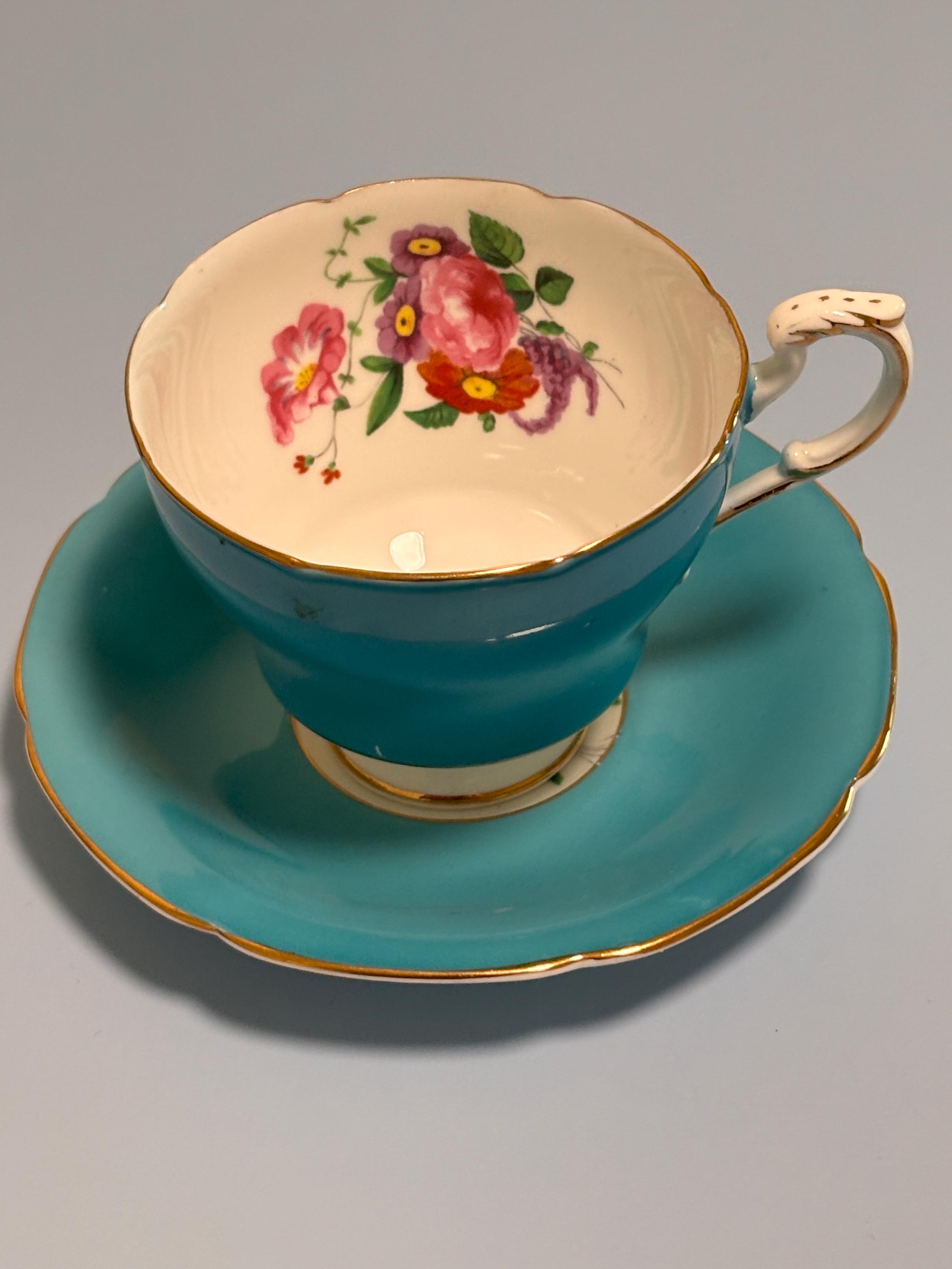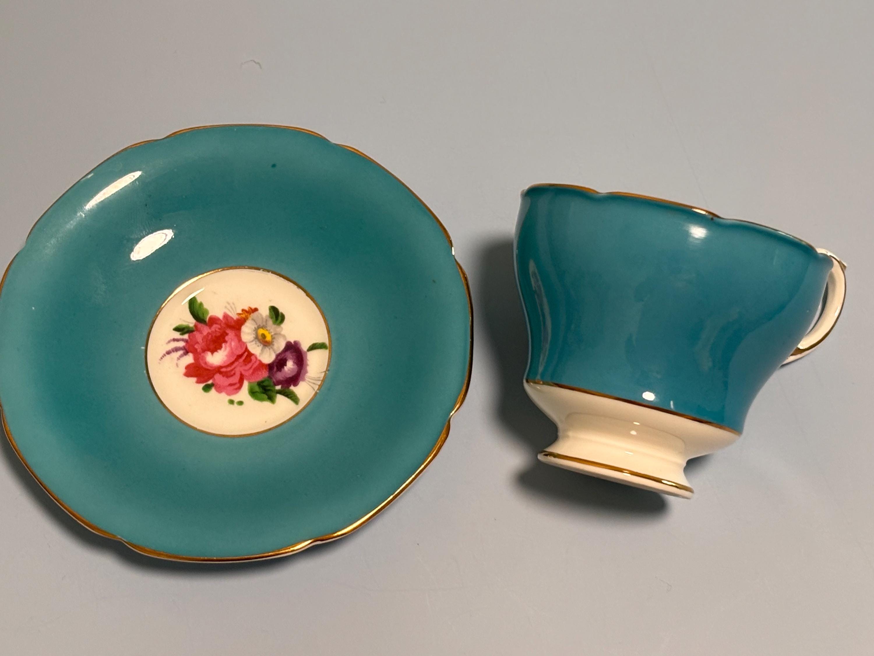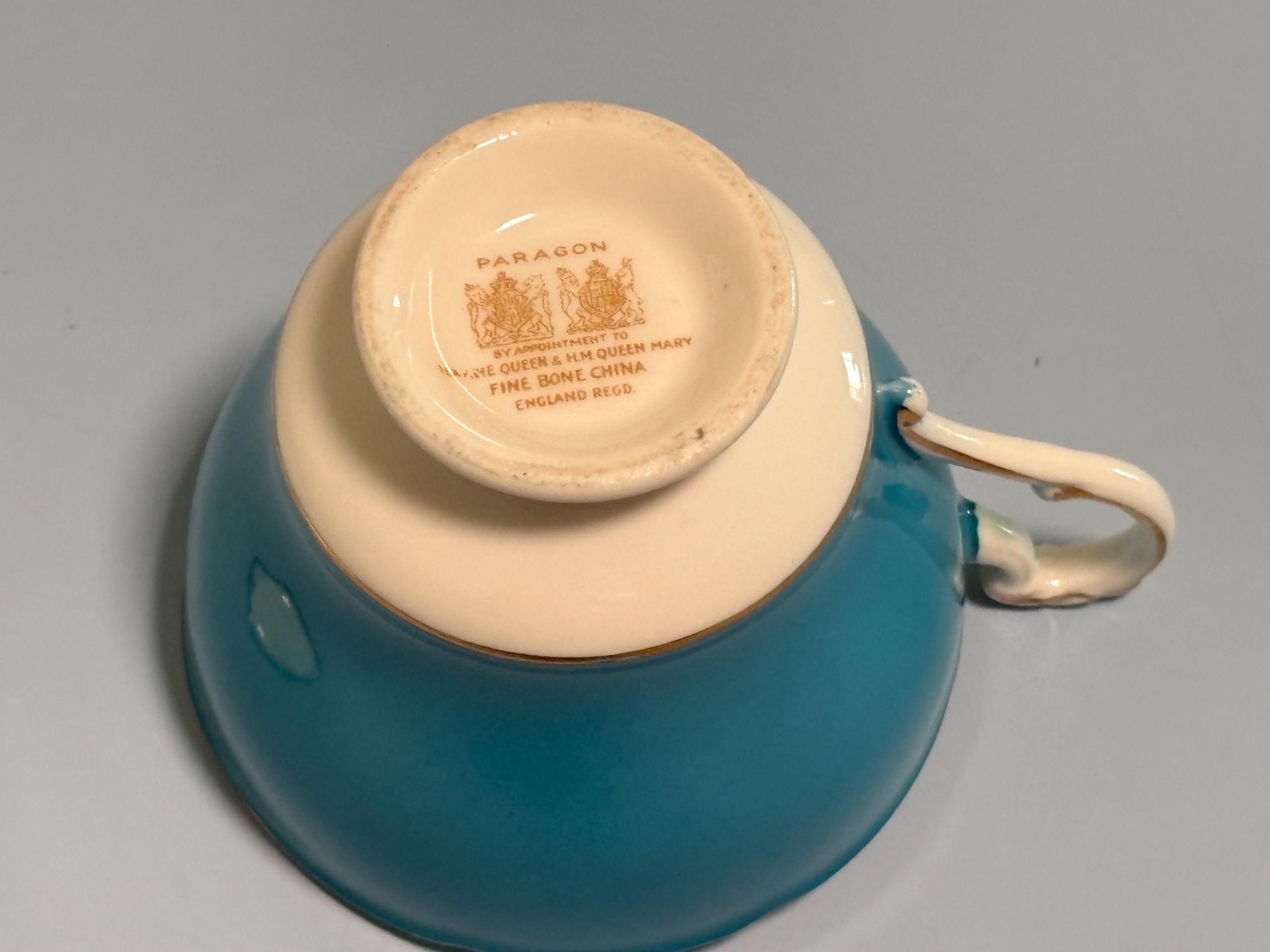 VISIT jaxinabox.com FOR ALL OUR LISTINGS!Paragon Fine Bone China Turquoise Teacup and Saucer By Appointment to H.M. Queen