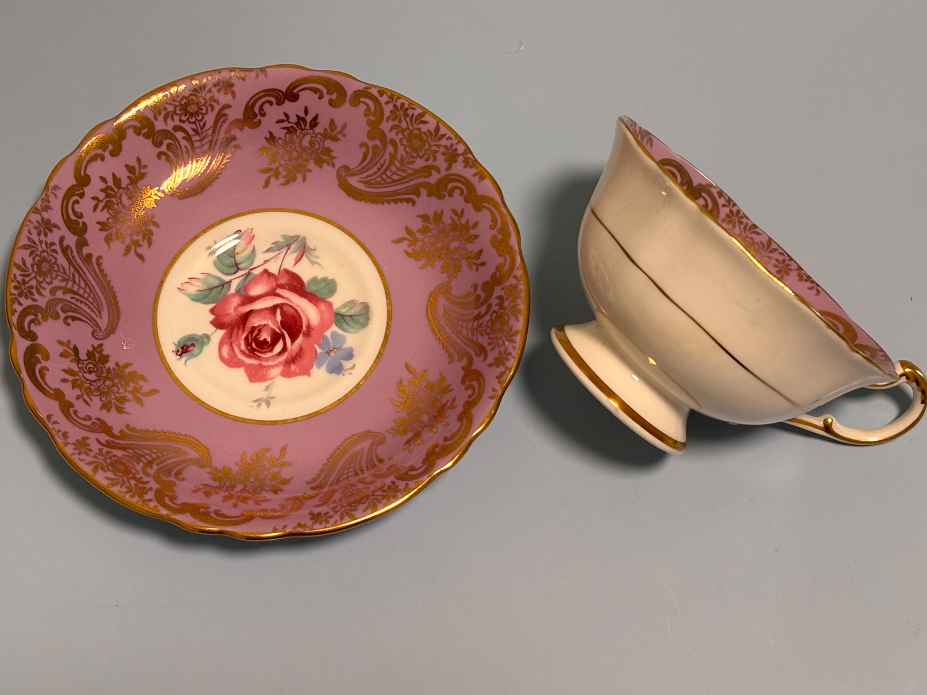VISIT jaxinabox.com FOR ALL OUR LISTINGS!Vintage Paragon Double Warranted Pink Gold Roses Teacup and Saucer Floral