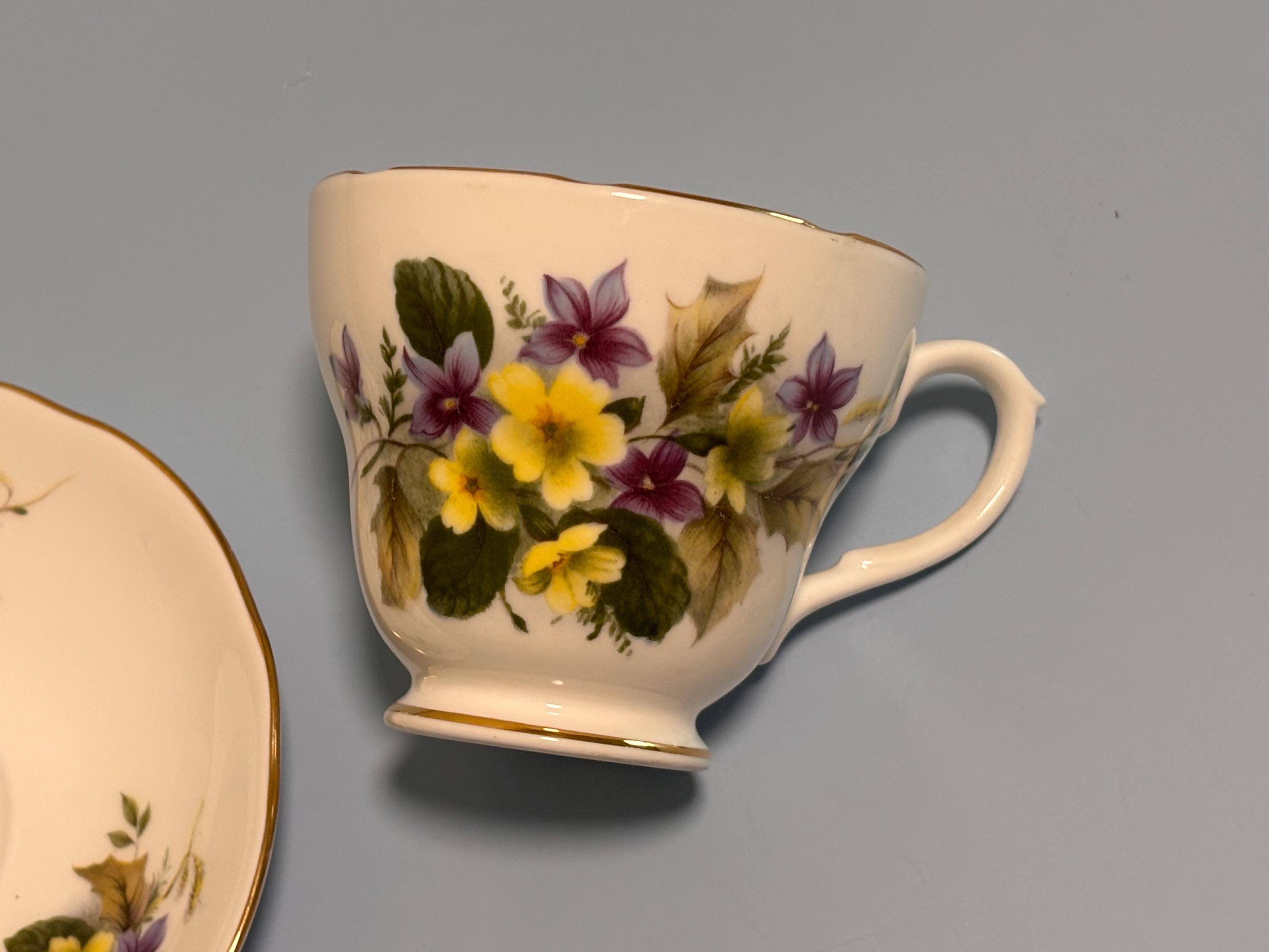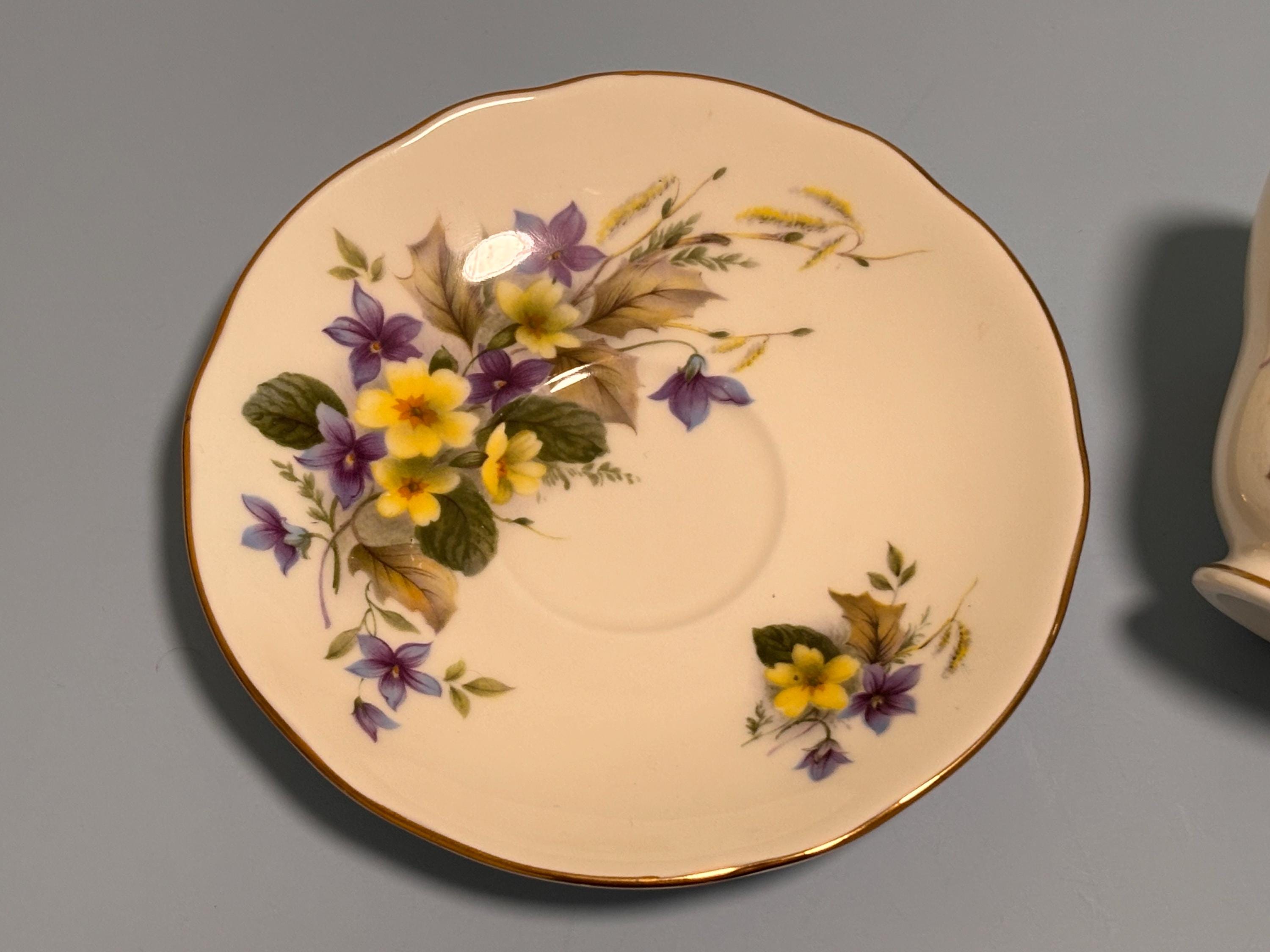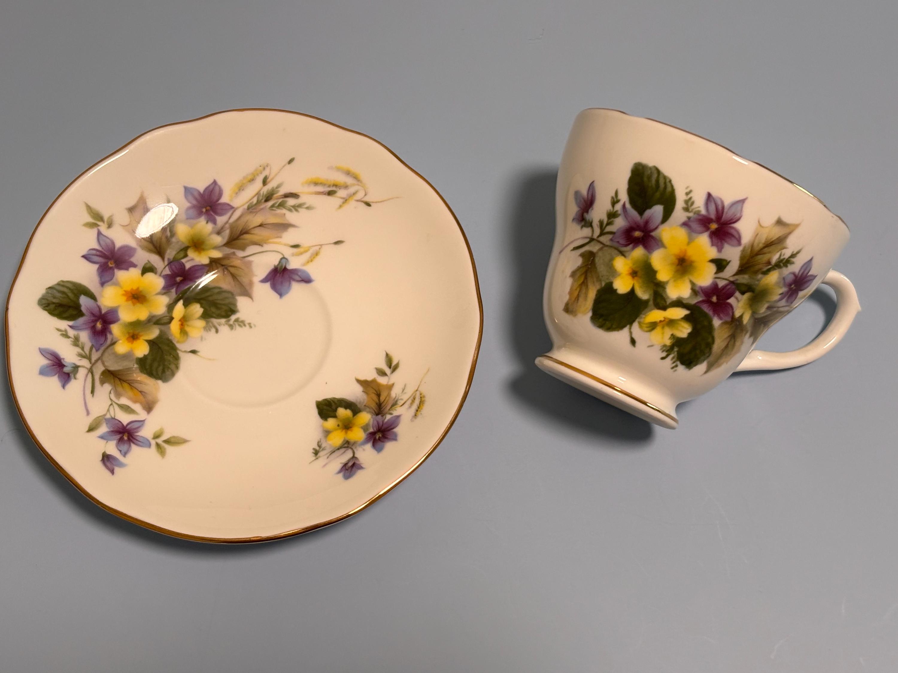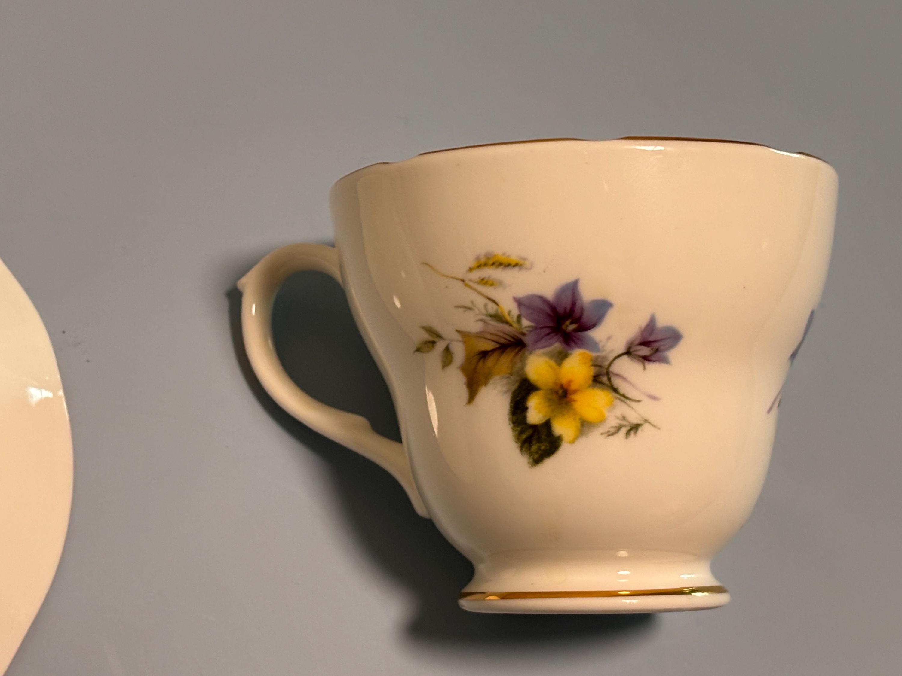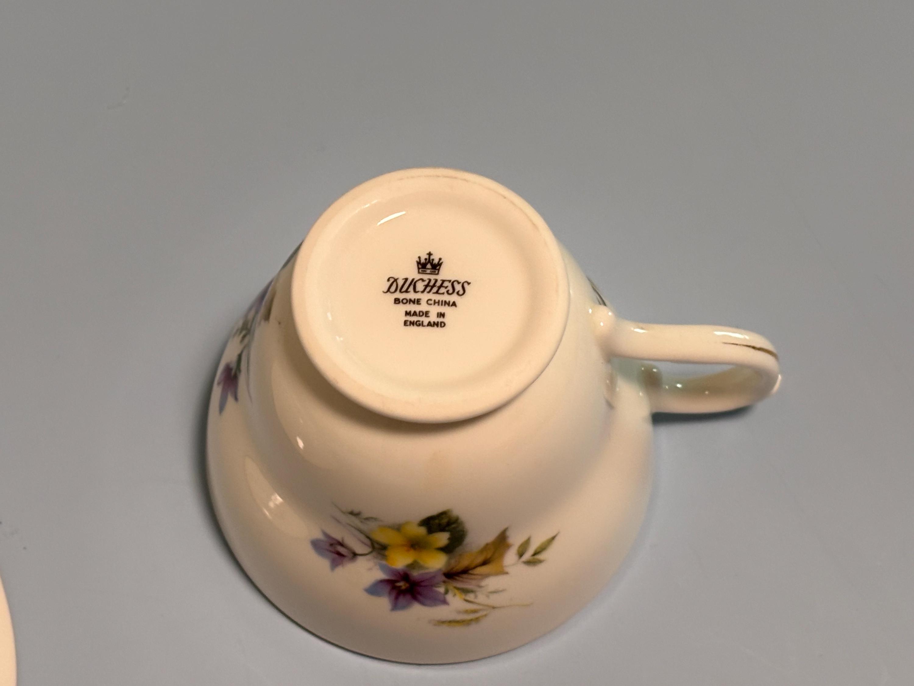 VISIT jaxinabox.com FOR ALL OUR LISTINGS!Tea Cup & Saucer Duchess Bone China England Purple & Yellow Floral