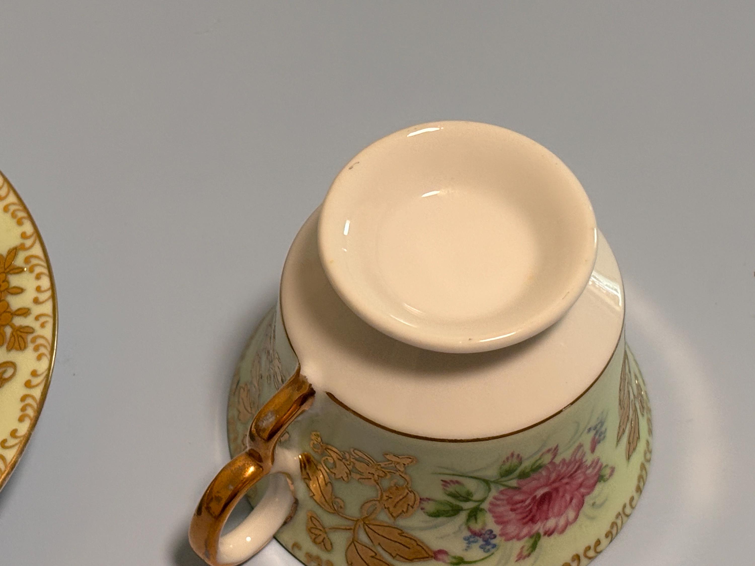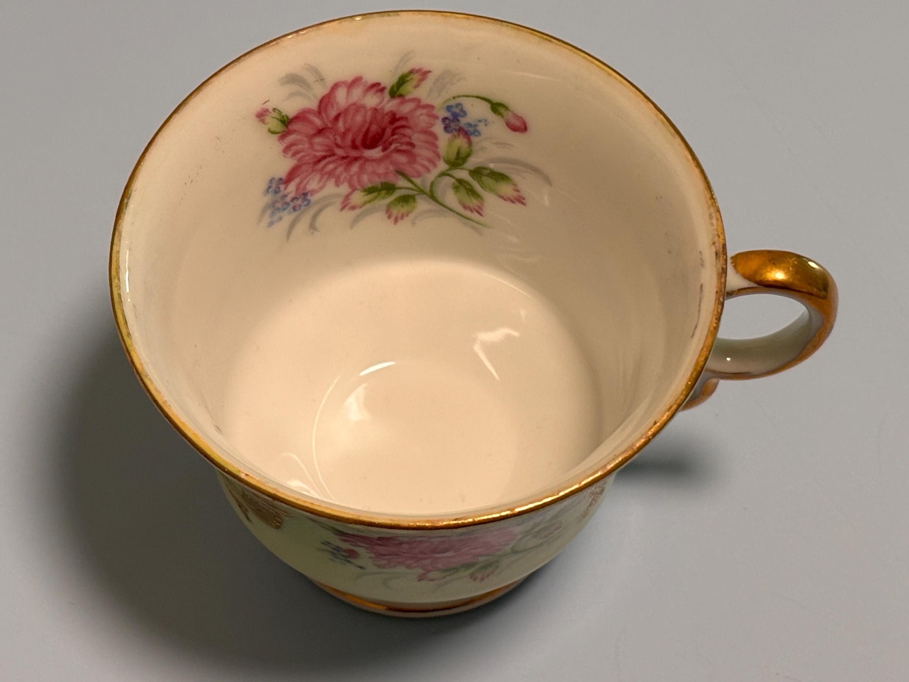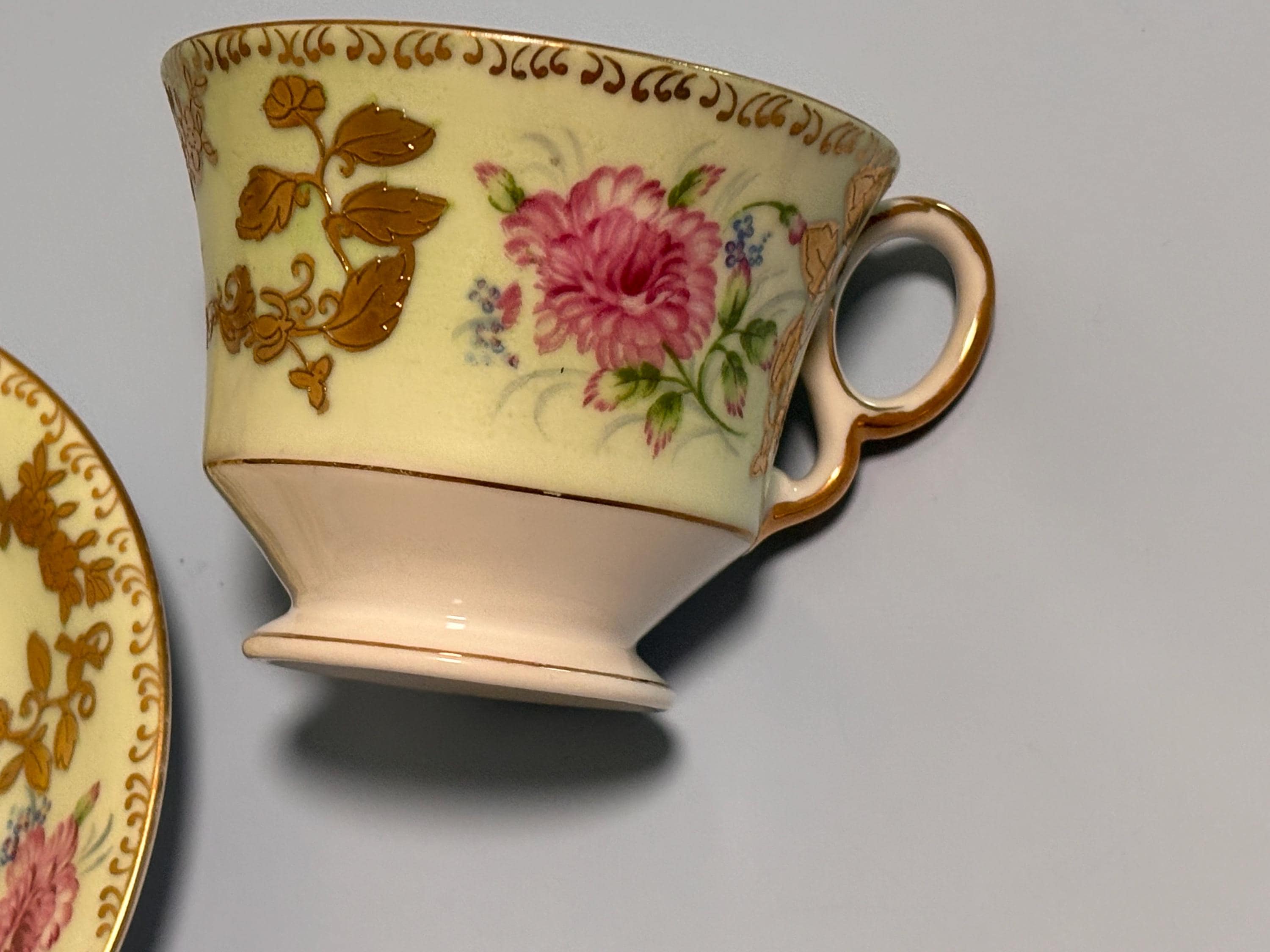 VISIT jaxinabox.com FOR ALL OUR LISTINGS!Vintage Royal Sealy Pale Green Pink Floral with Gold Filigree Teacup & Saucer * Japan