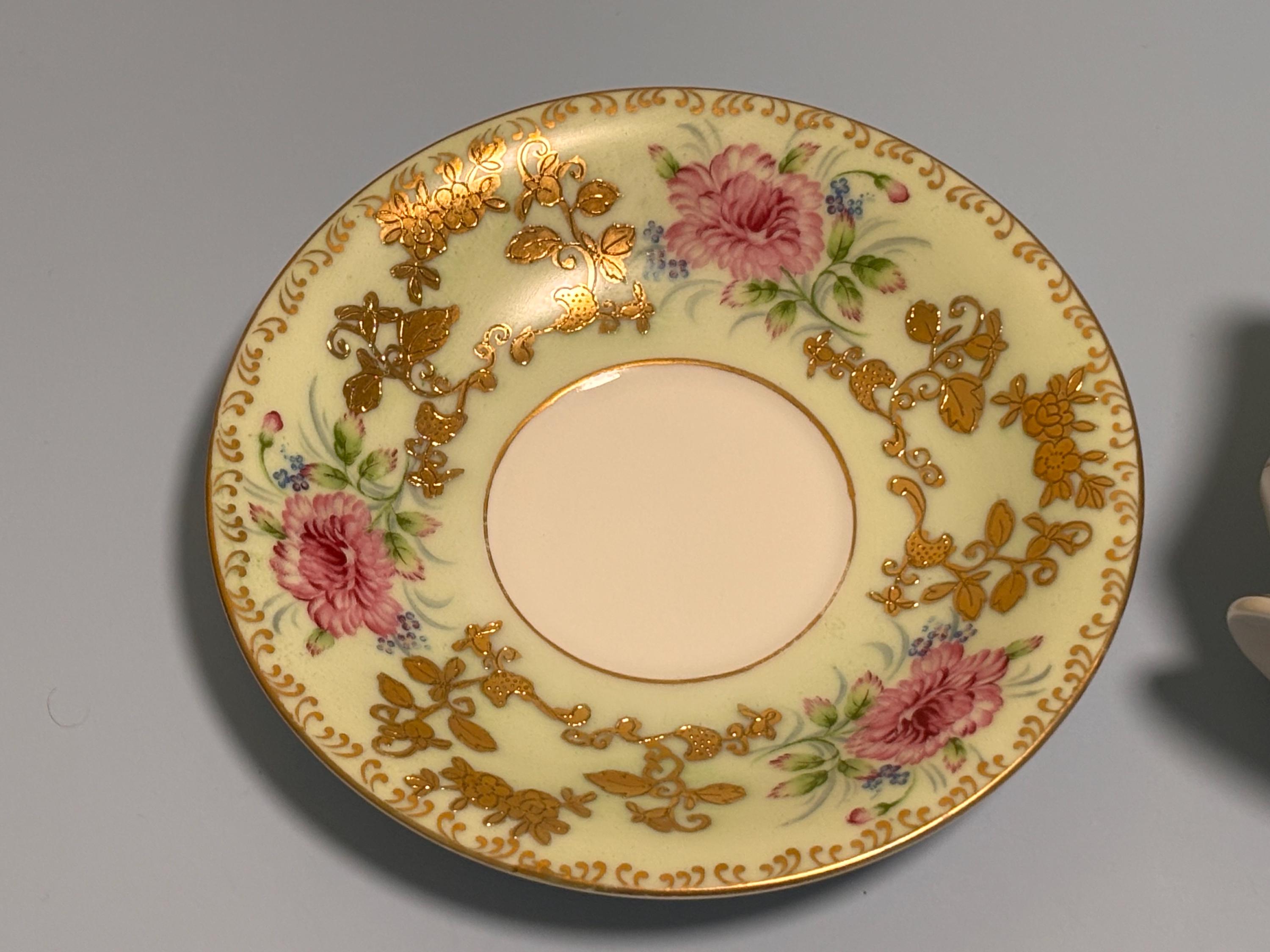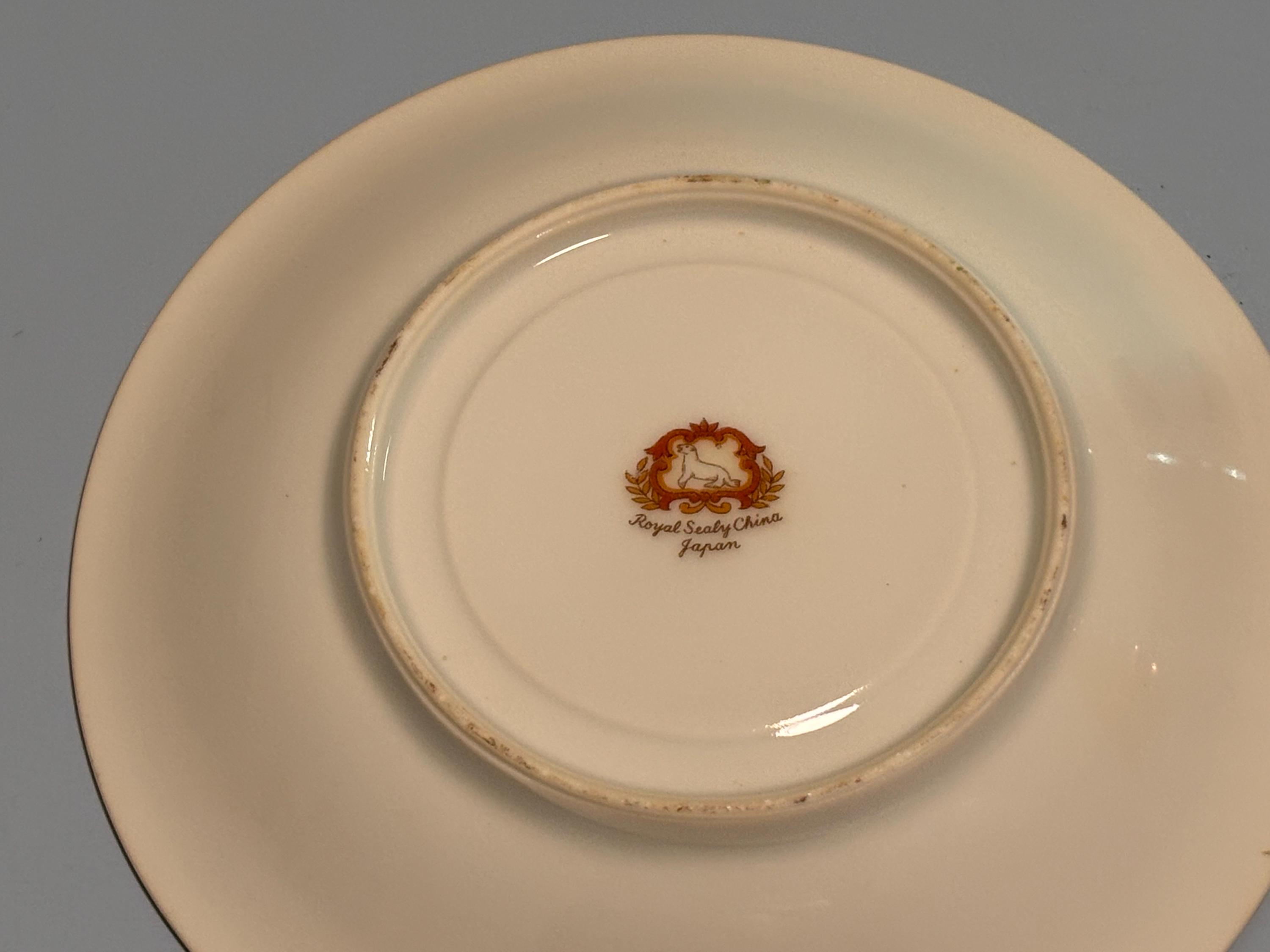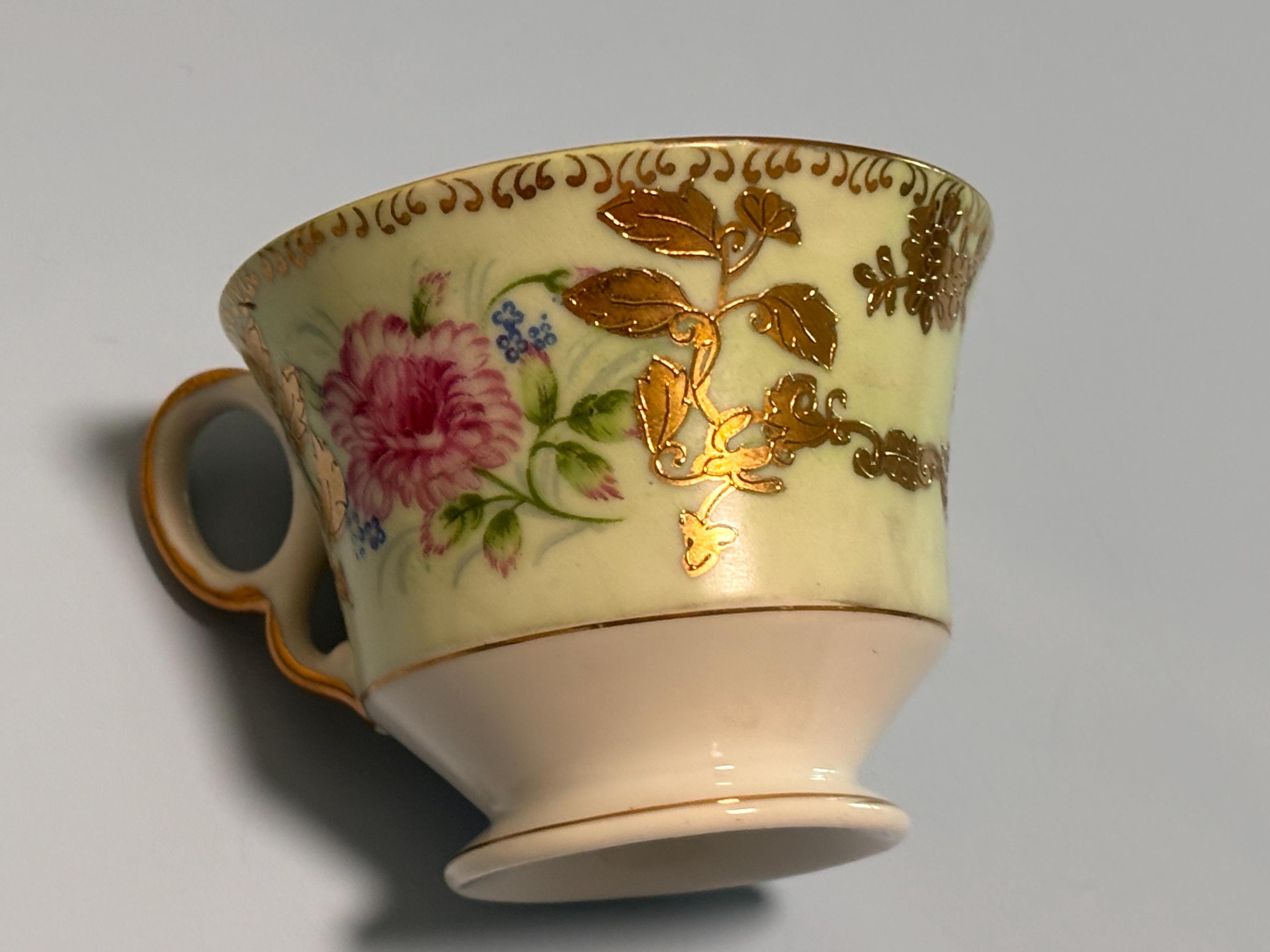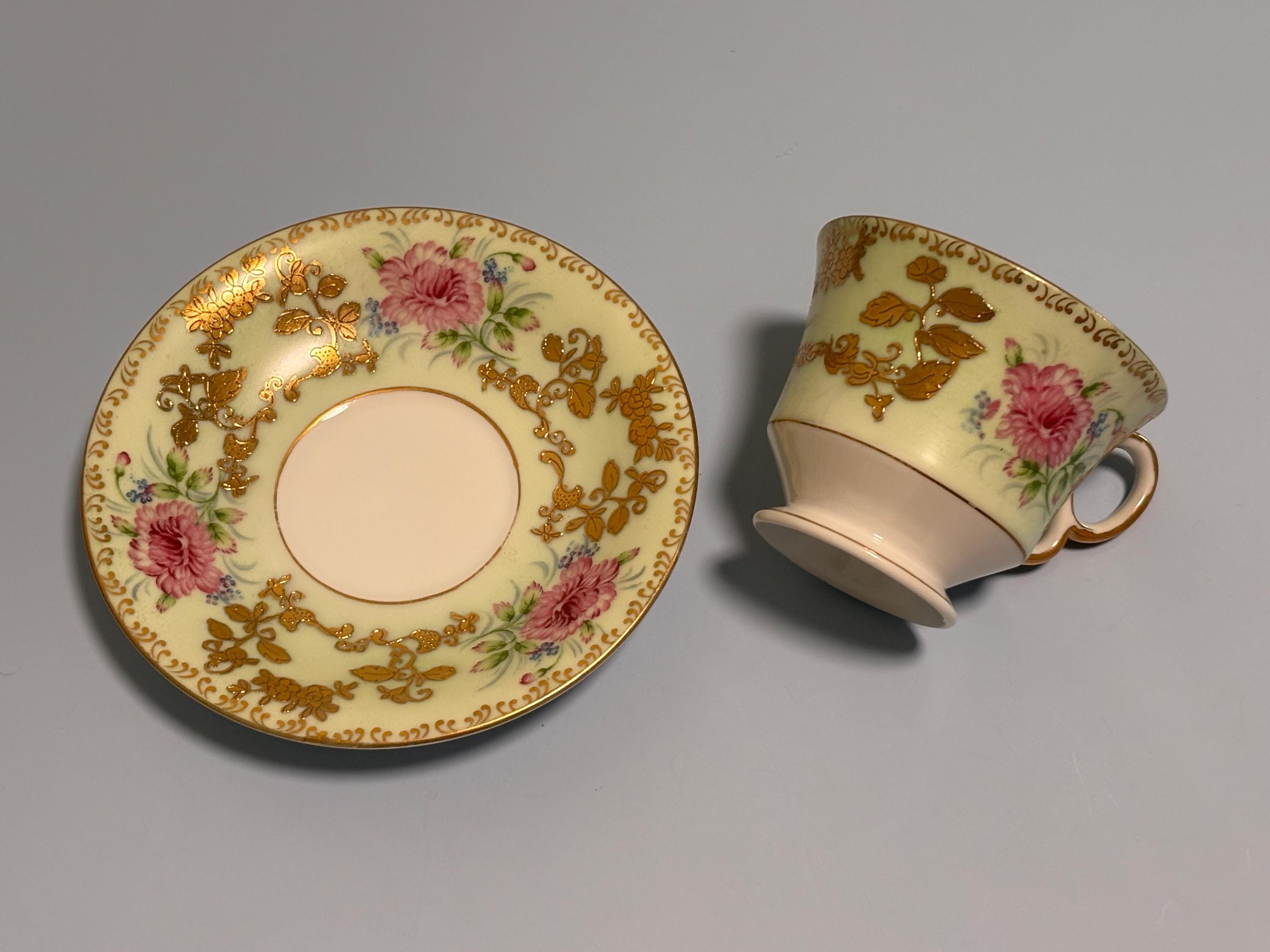 VISIT jaxinabox.com FOR ALL OUR LISTINGS!Vintage Royal Sealy Pale Green Pink Floral with Gold Filigree Teacup & Saucer * Japan