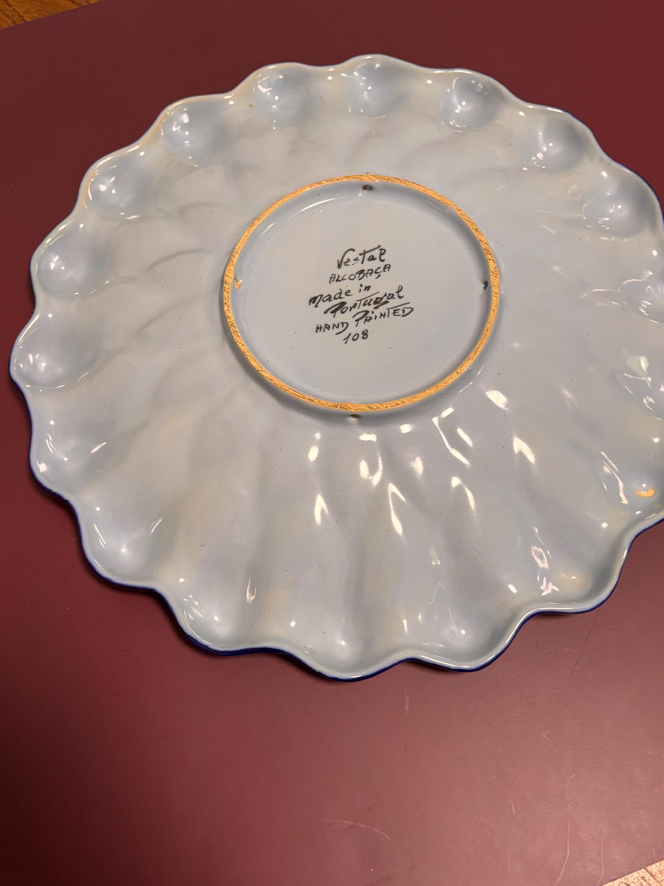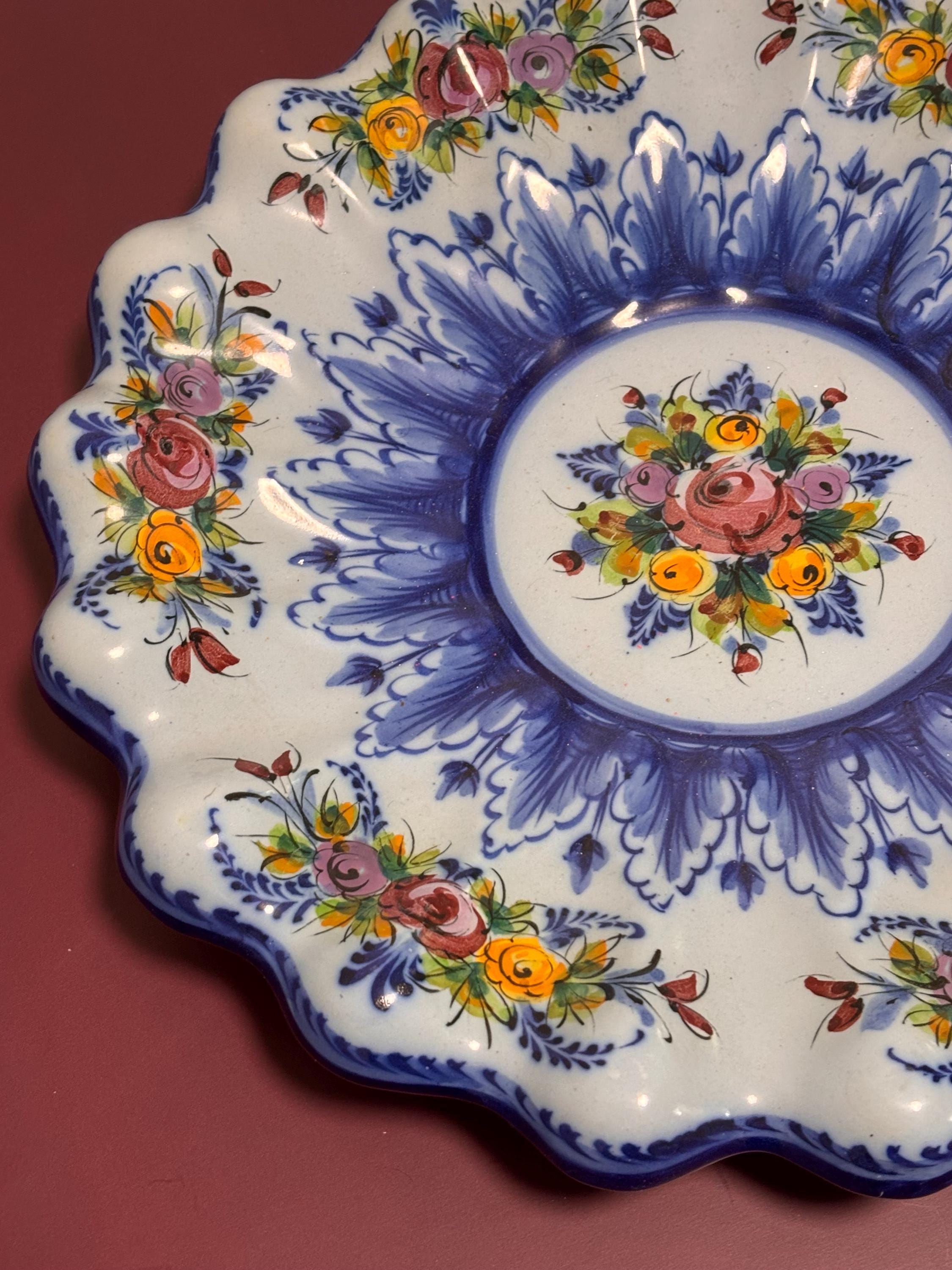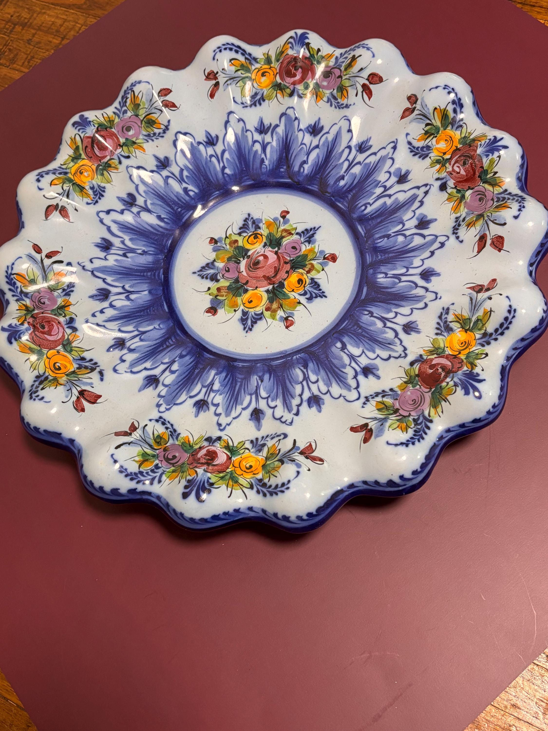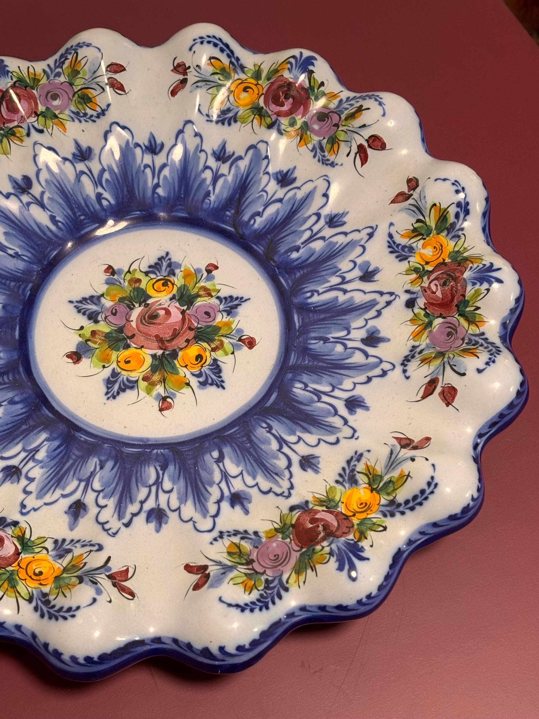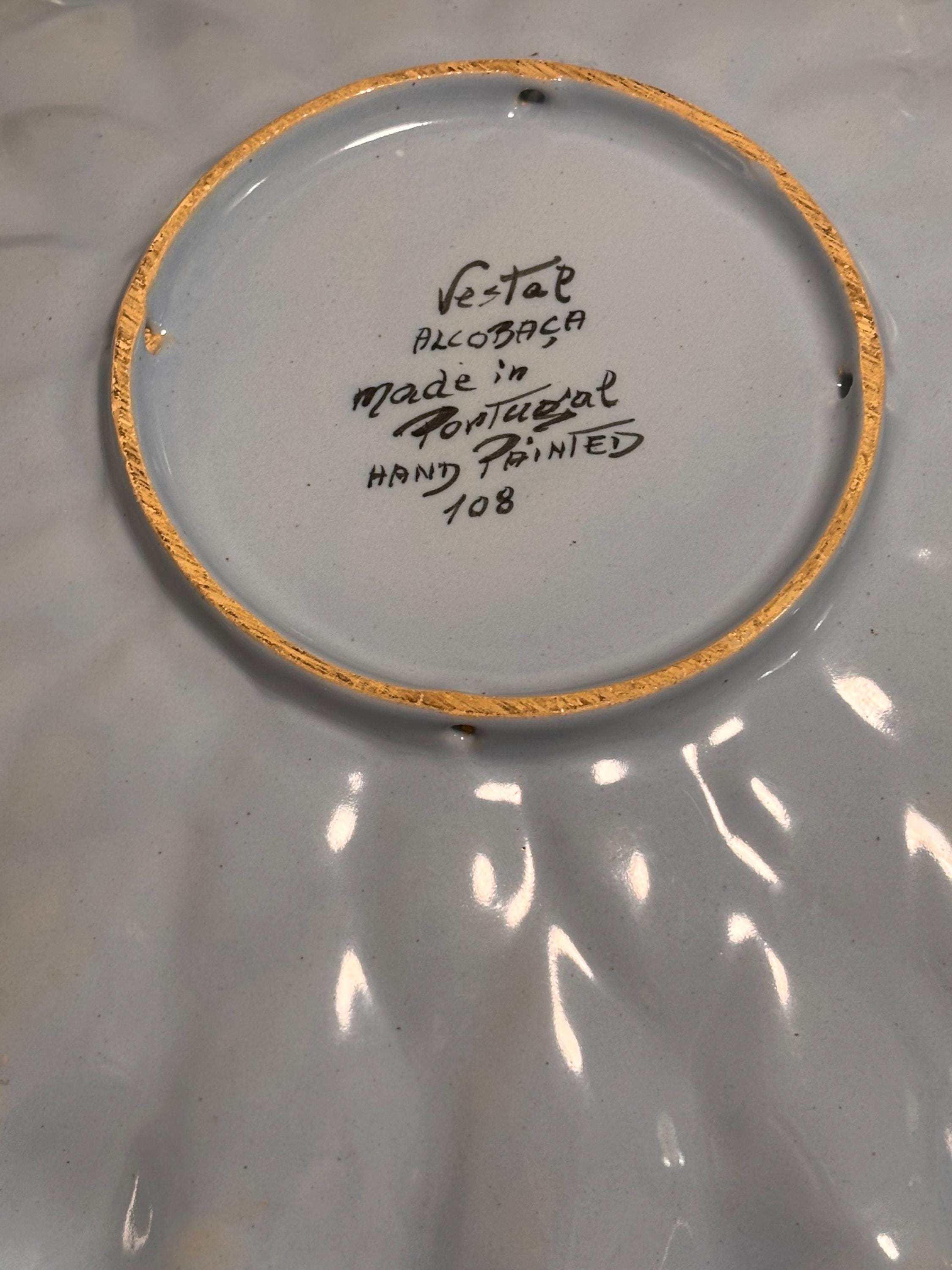 VISIT jaxinabox.com FOR ALL OUR LISTINGS!Hand-Painted Portugal Vestal Pottery Plate, #108 Vintage 14” Blue White floral