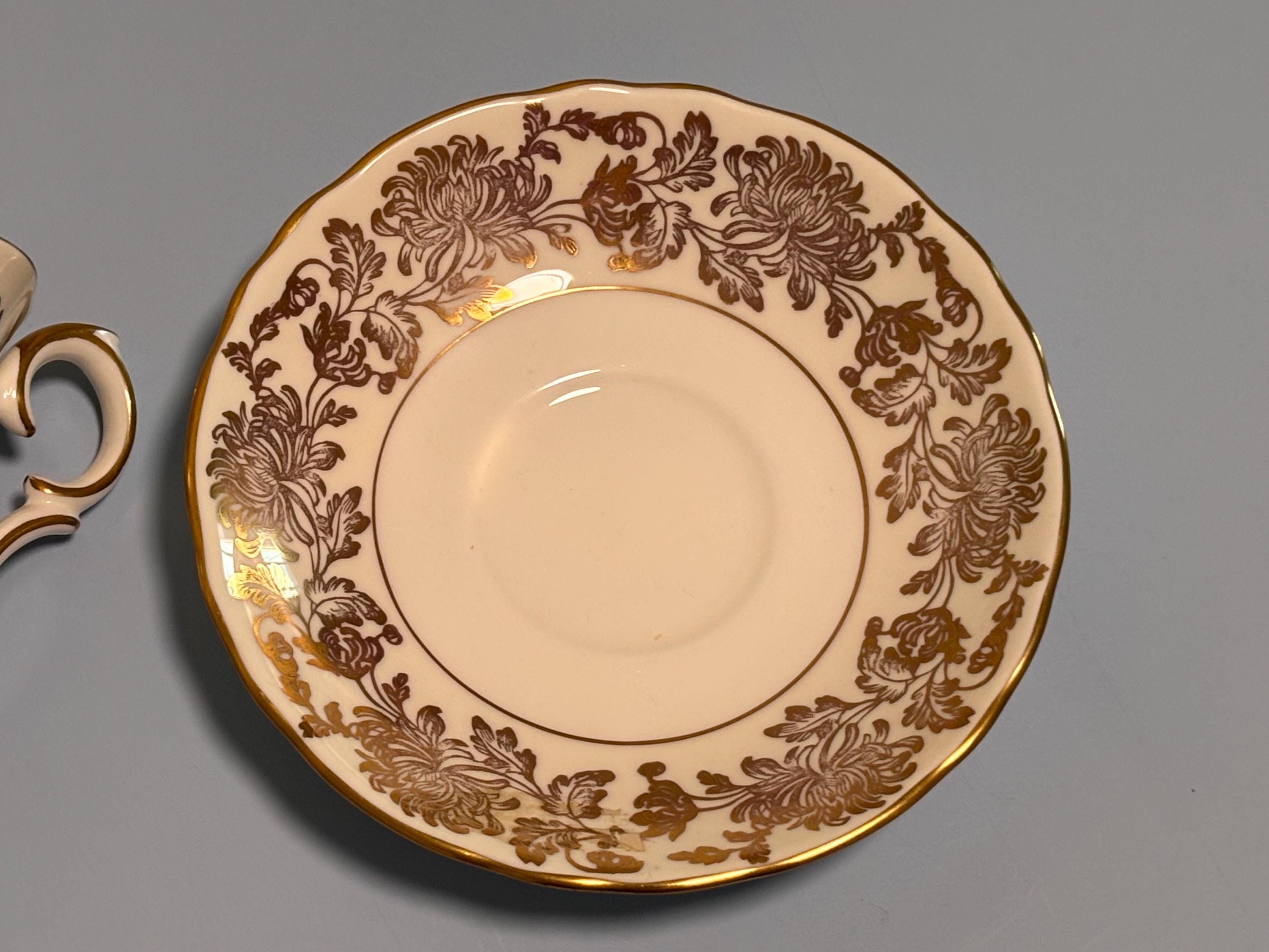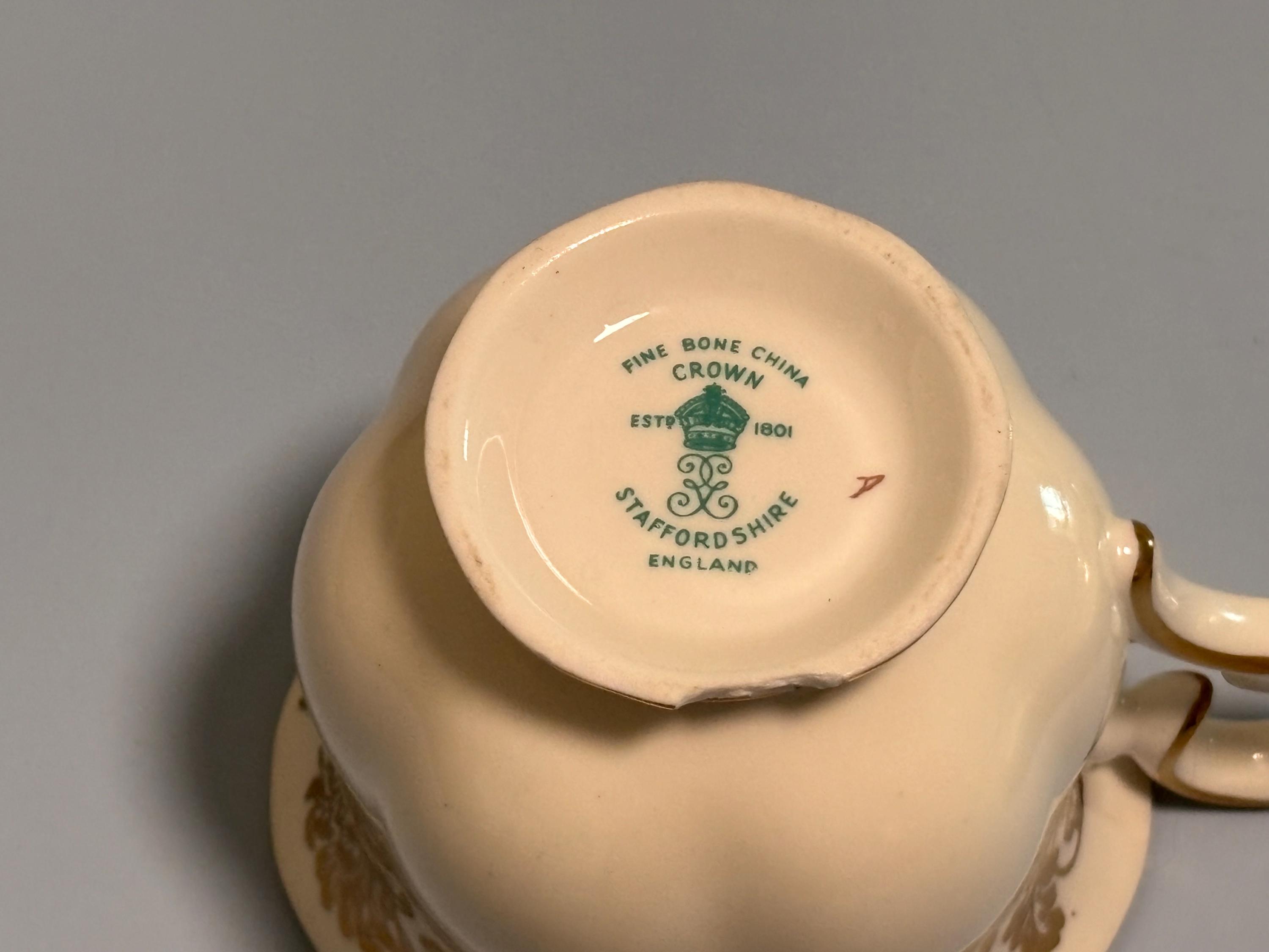VISIT jaxinabox.com FOR ALL OUR LISTINGS!Crown Staffordshire Pink Gold Gilded Floral Rose Tea Cup Saucer