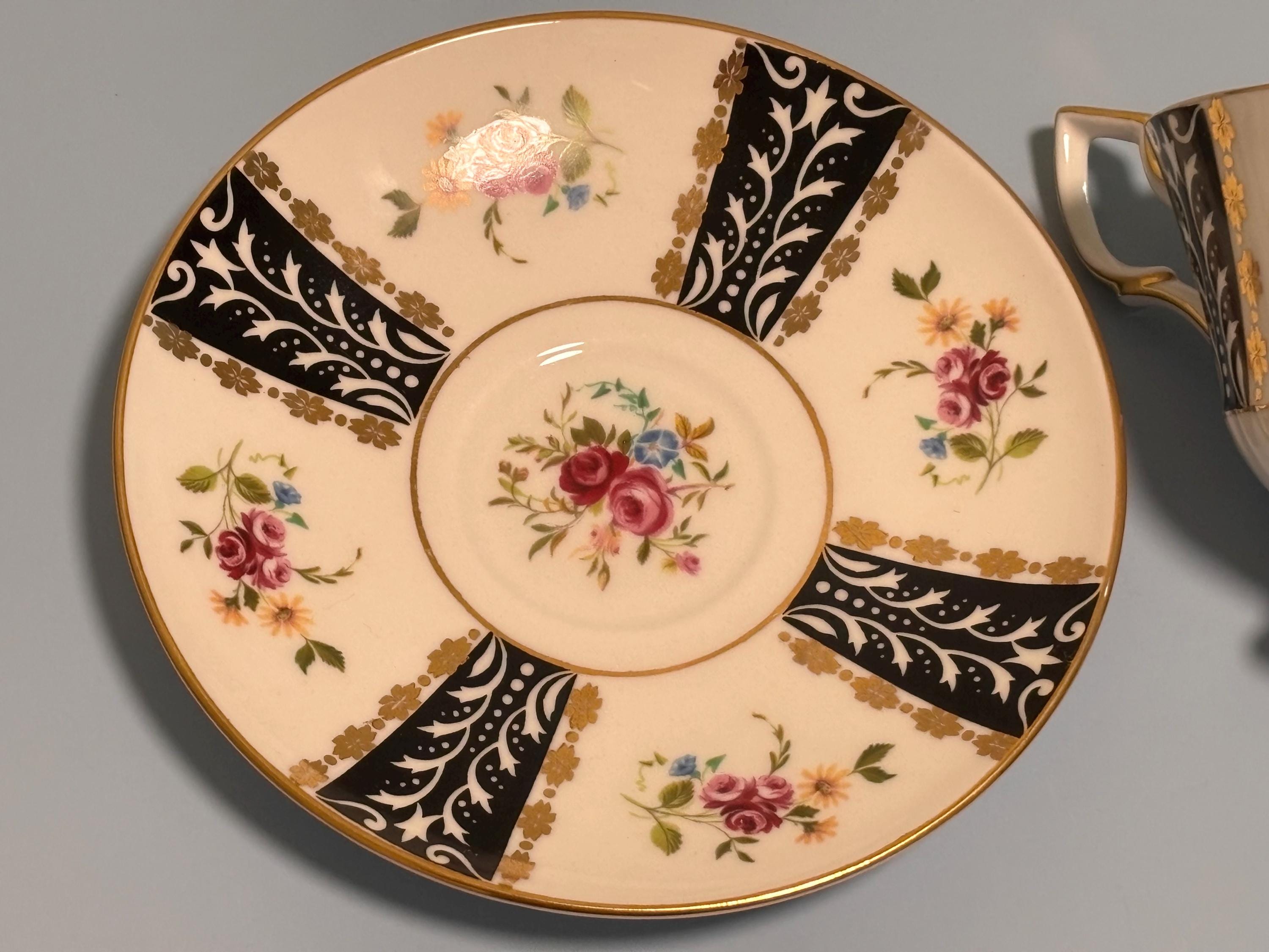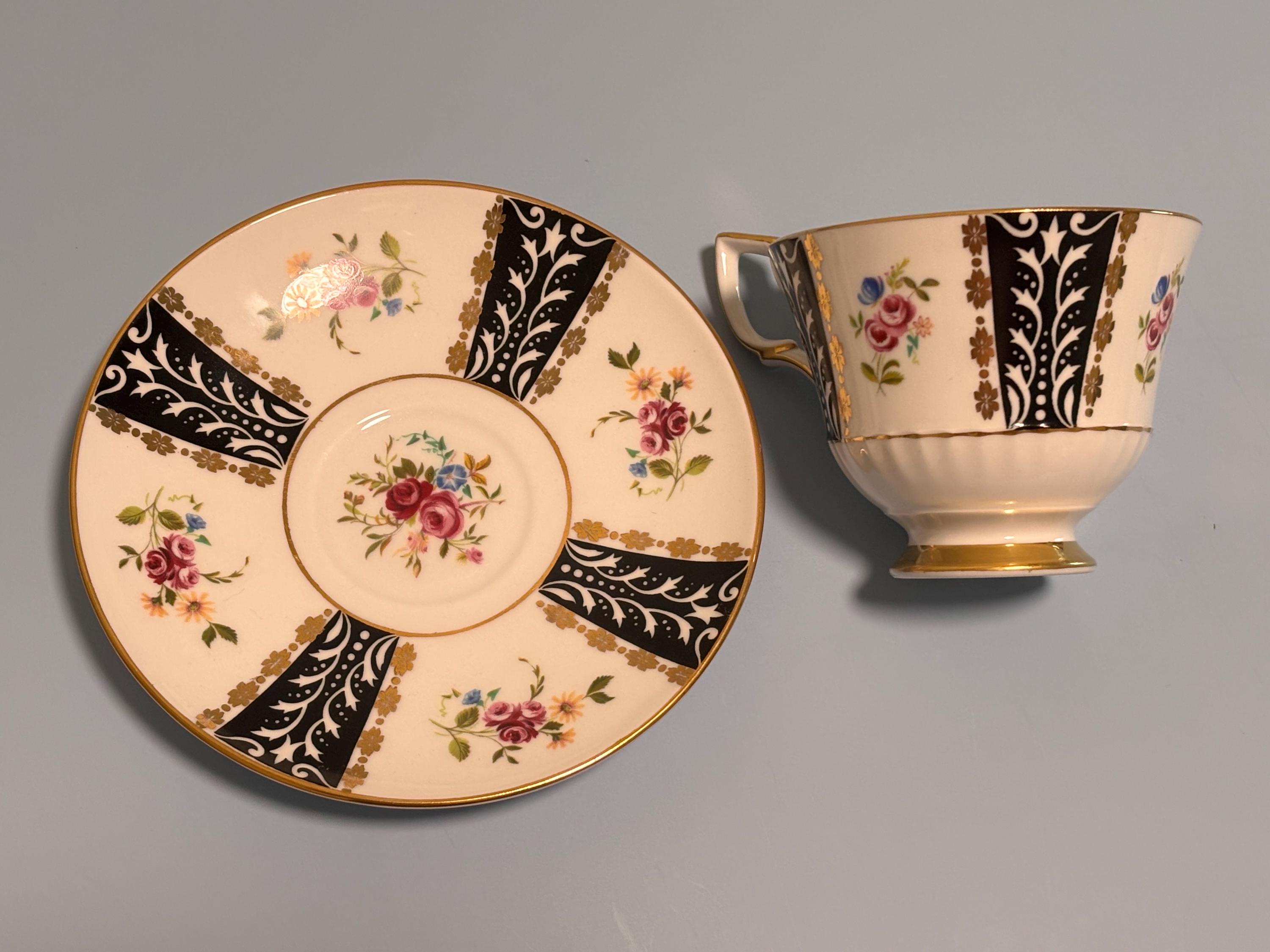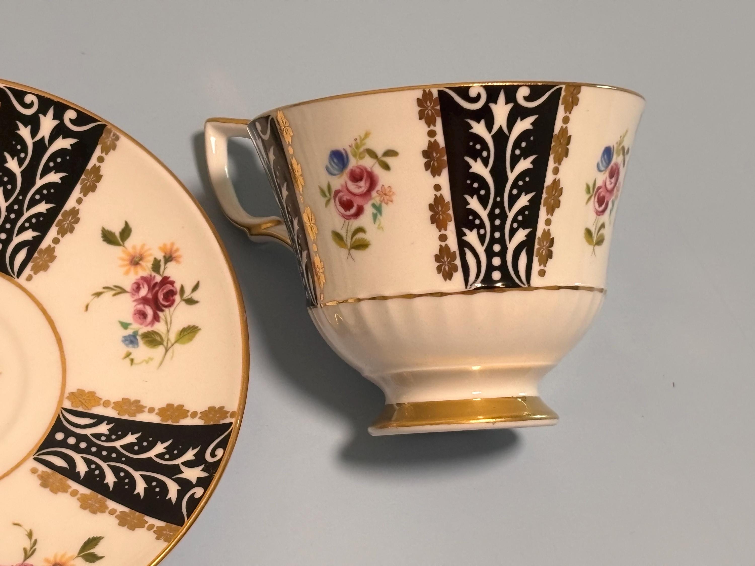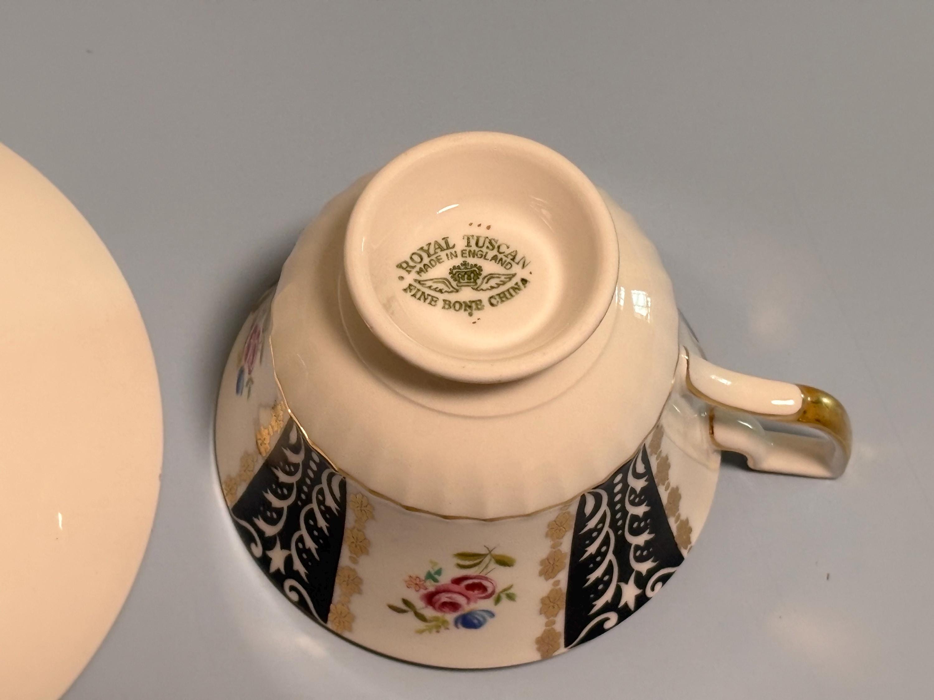 VISIT jaxinabox.com FOR ALL OUR LISTINGS!Teacup and Saucer Royal Tuscan Fine Bone China England Black White Gold Floral