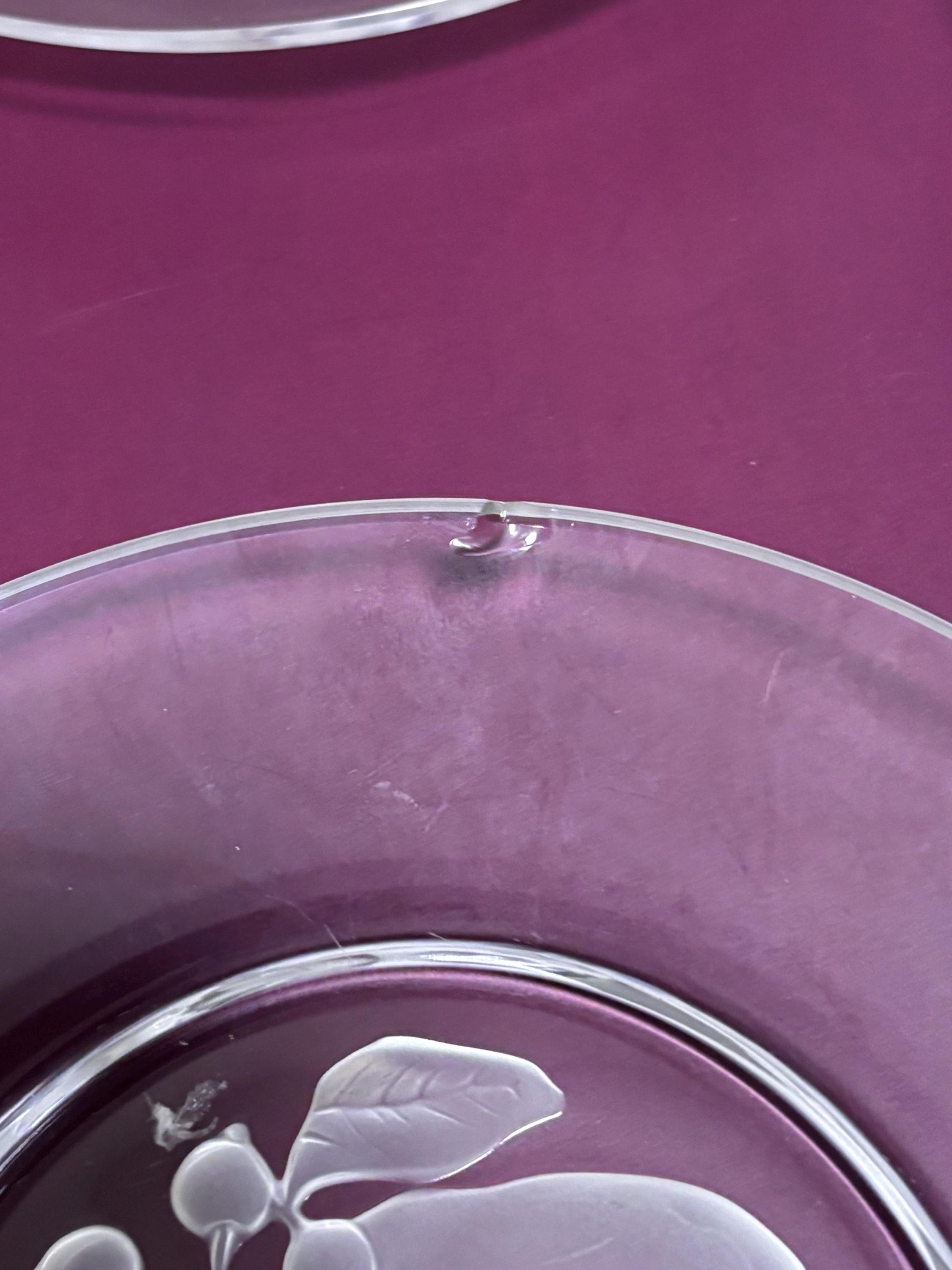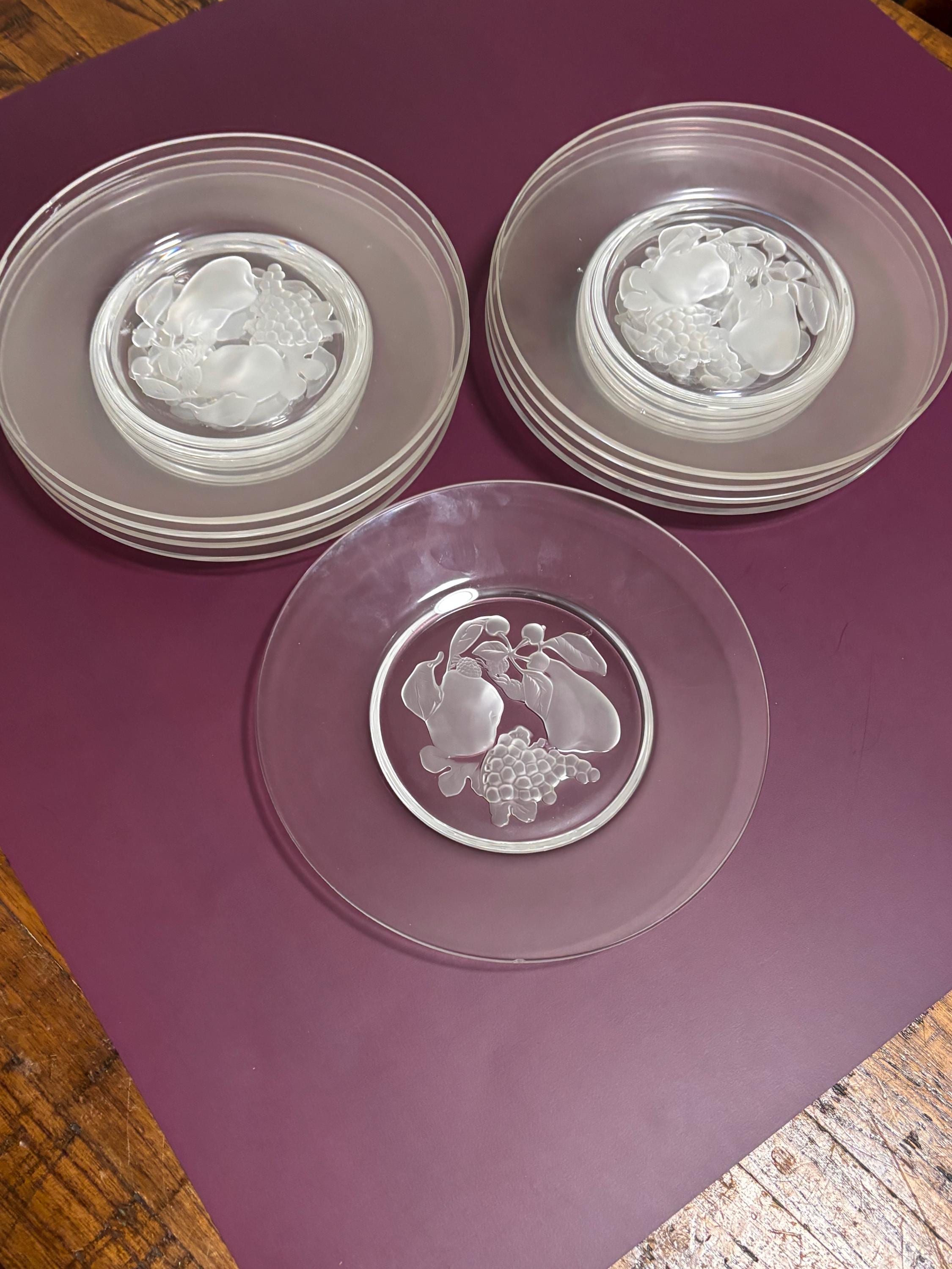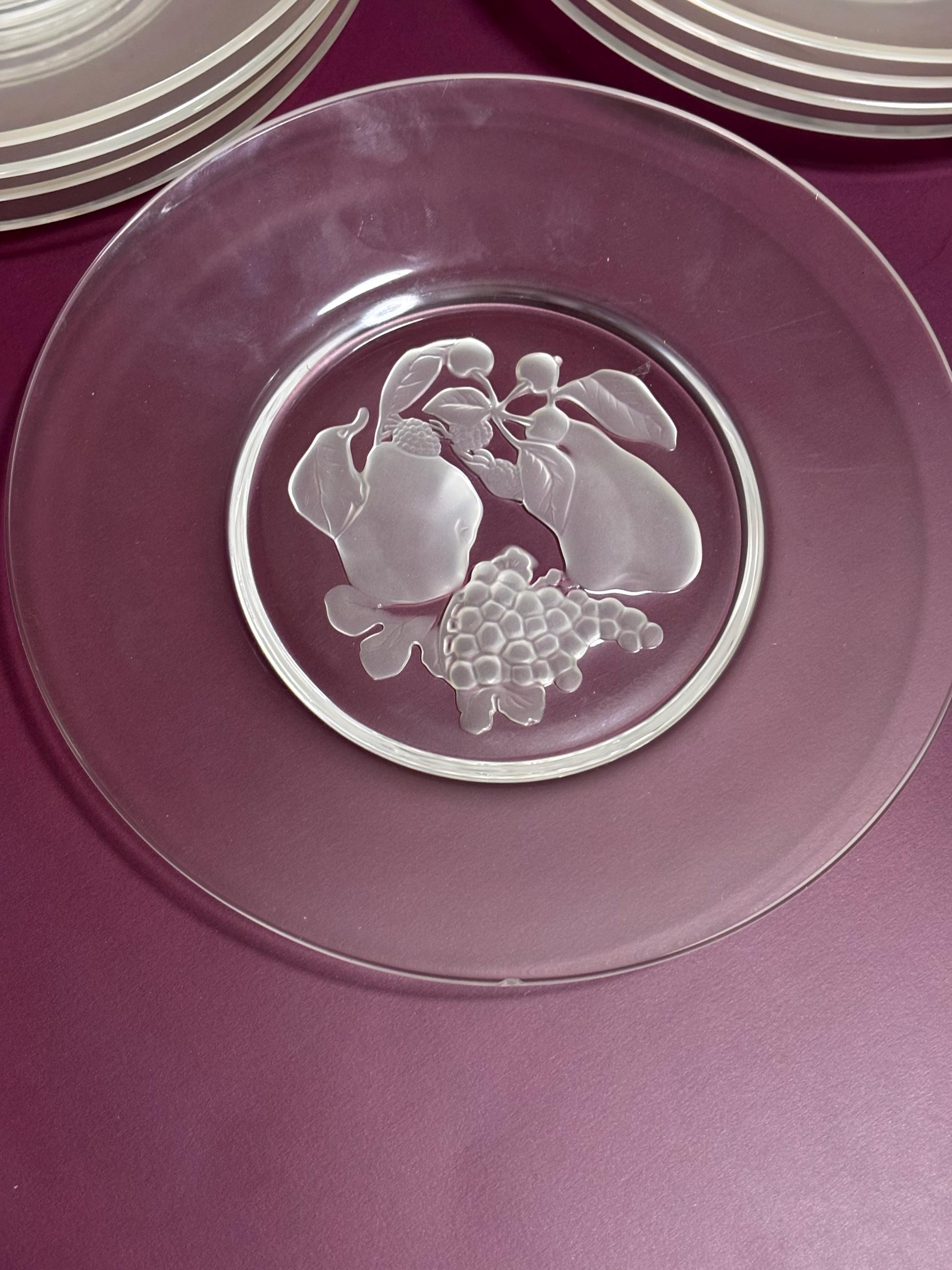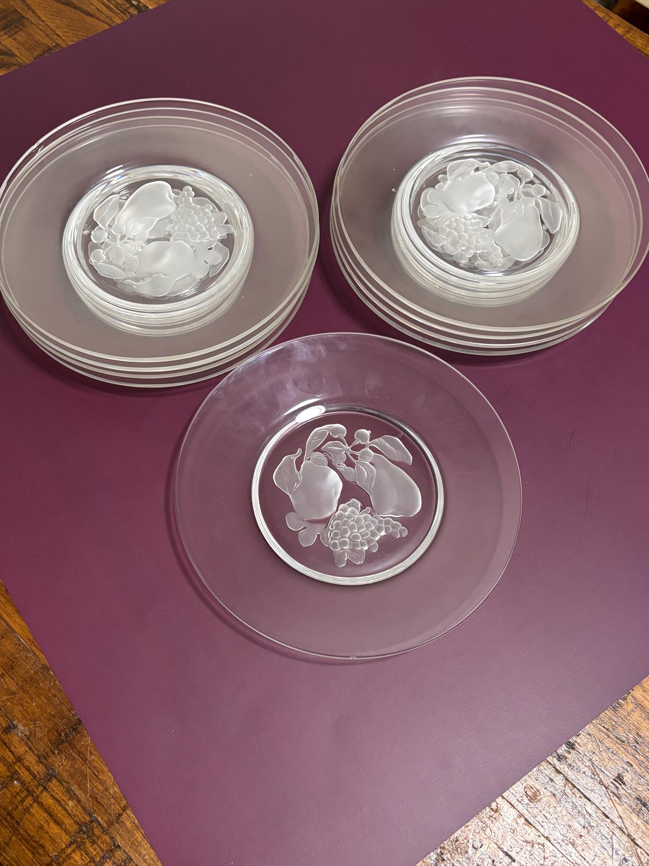 VISIT jaxinabox.com FOR ALL OUR LISTINGS!Set of 8 VAL ST LAMBERT Brussels Frosted Intaglio Fruit Salad Plates Vinatge