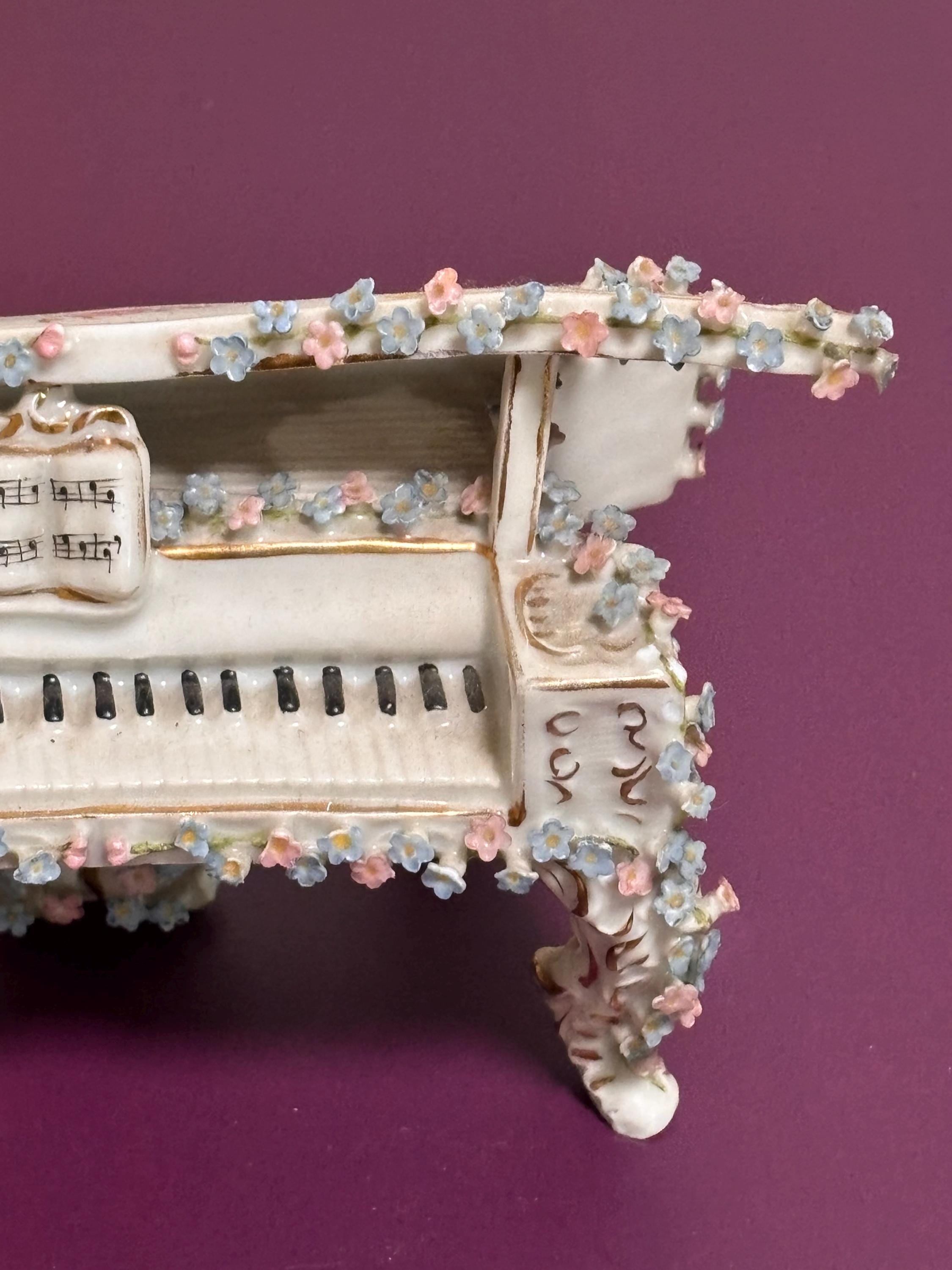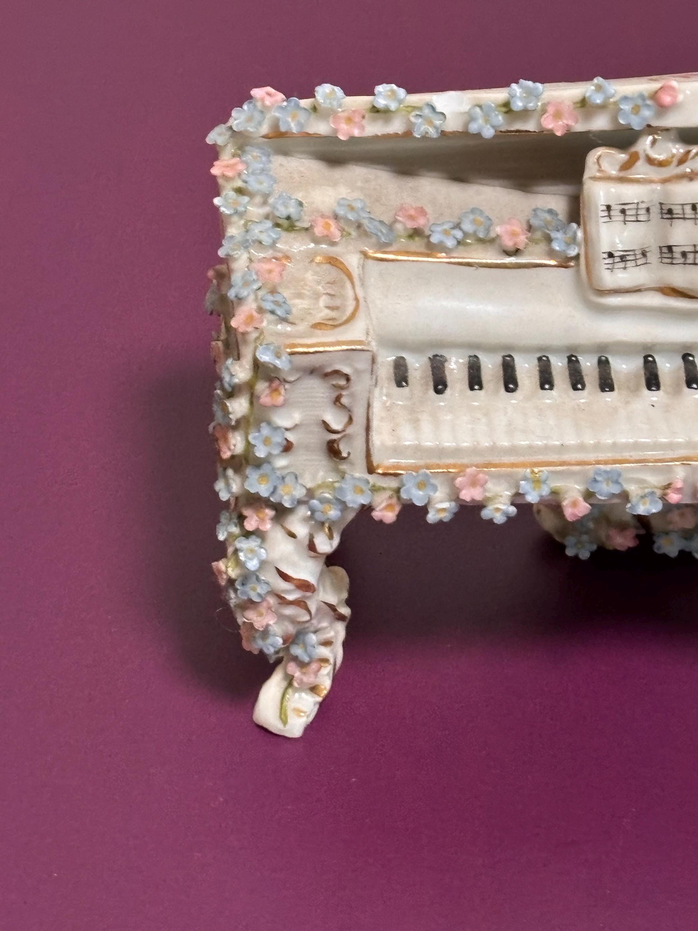 VISIT jaxinabox.com FOR ALL OUR LISTINGS!Meissen Vintae Rare Germany Porcelain Floral Flower Piano Pink Blue 100+ Years Old