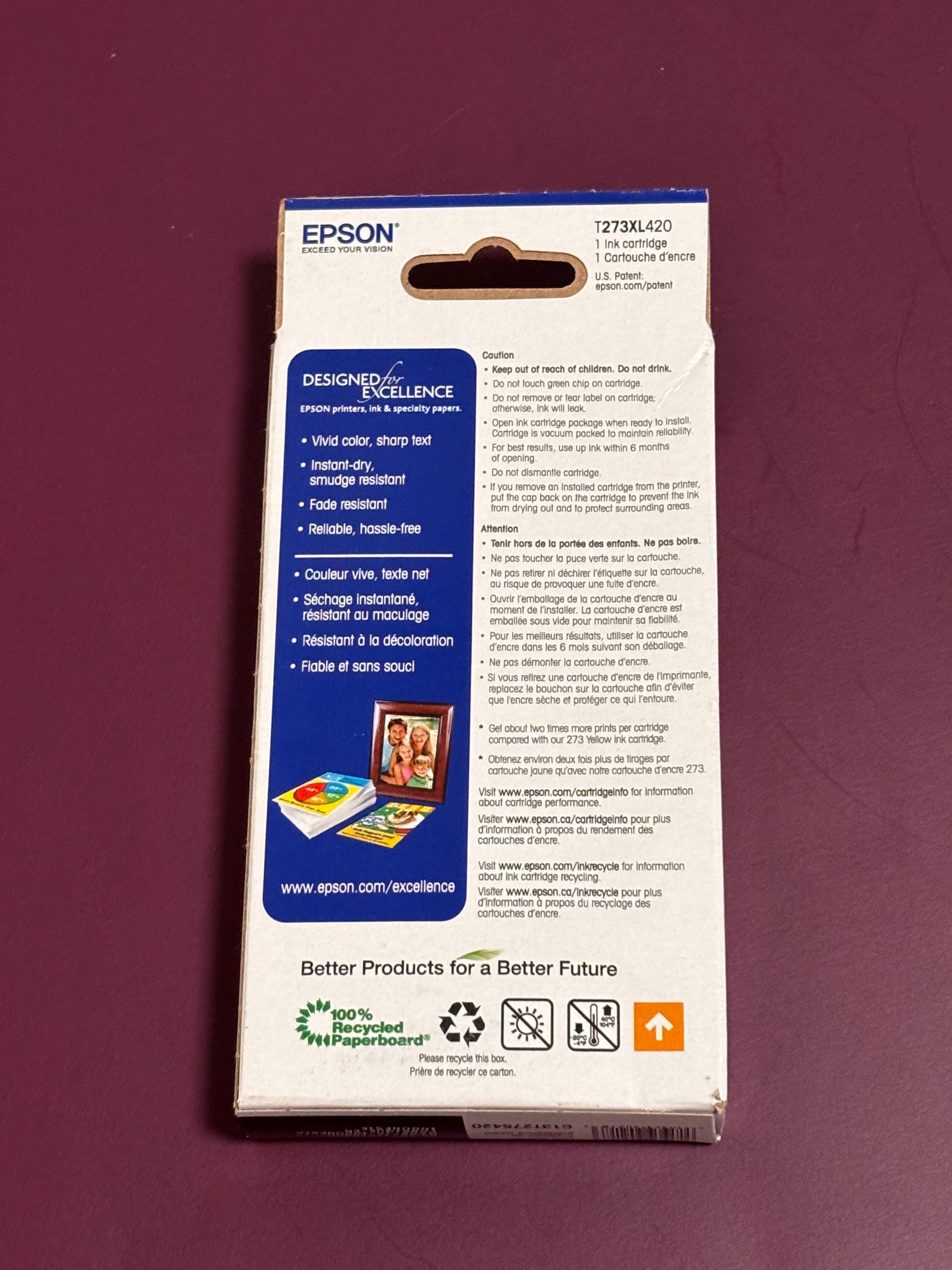 VISIT jaxinabox.com FOR ALL OUR LISTINGS!Genuine Epson 273XL Yellow Ink Cartridge High Capacity T273XL420 EXP 05/2027