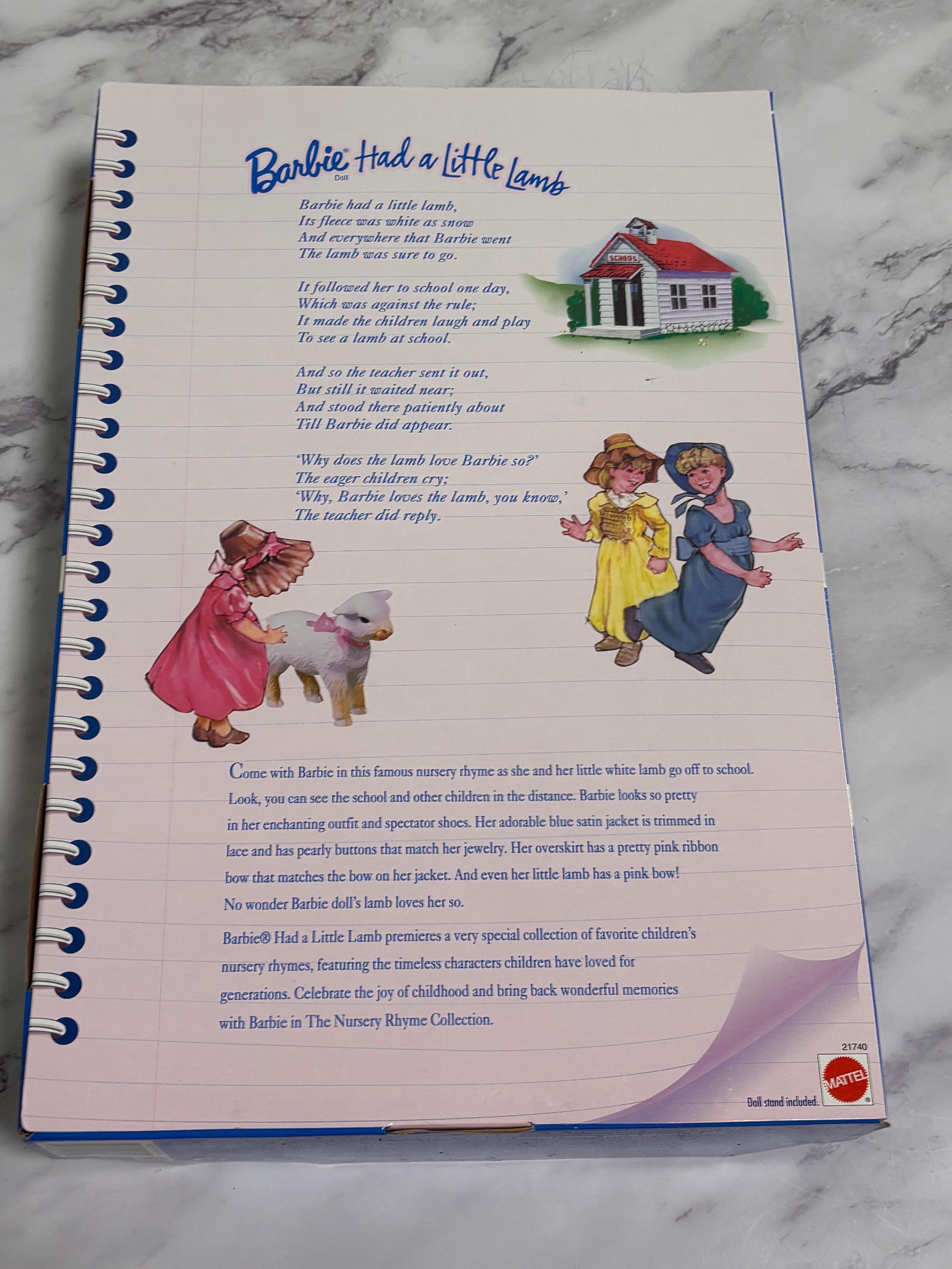 VISIT jaxinabox.com FOR ALL OUR LISTINGS!Barbie Mary Had a Little Lamb Nursery Rhyme Collection Coll Edition 1998 #21740