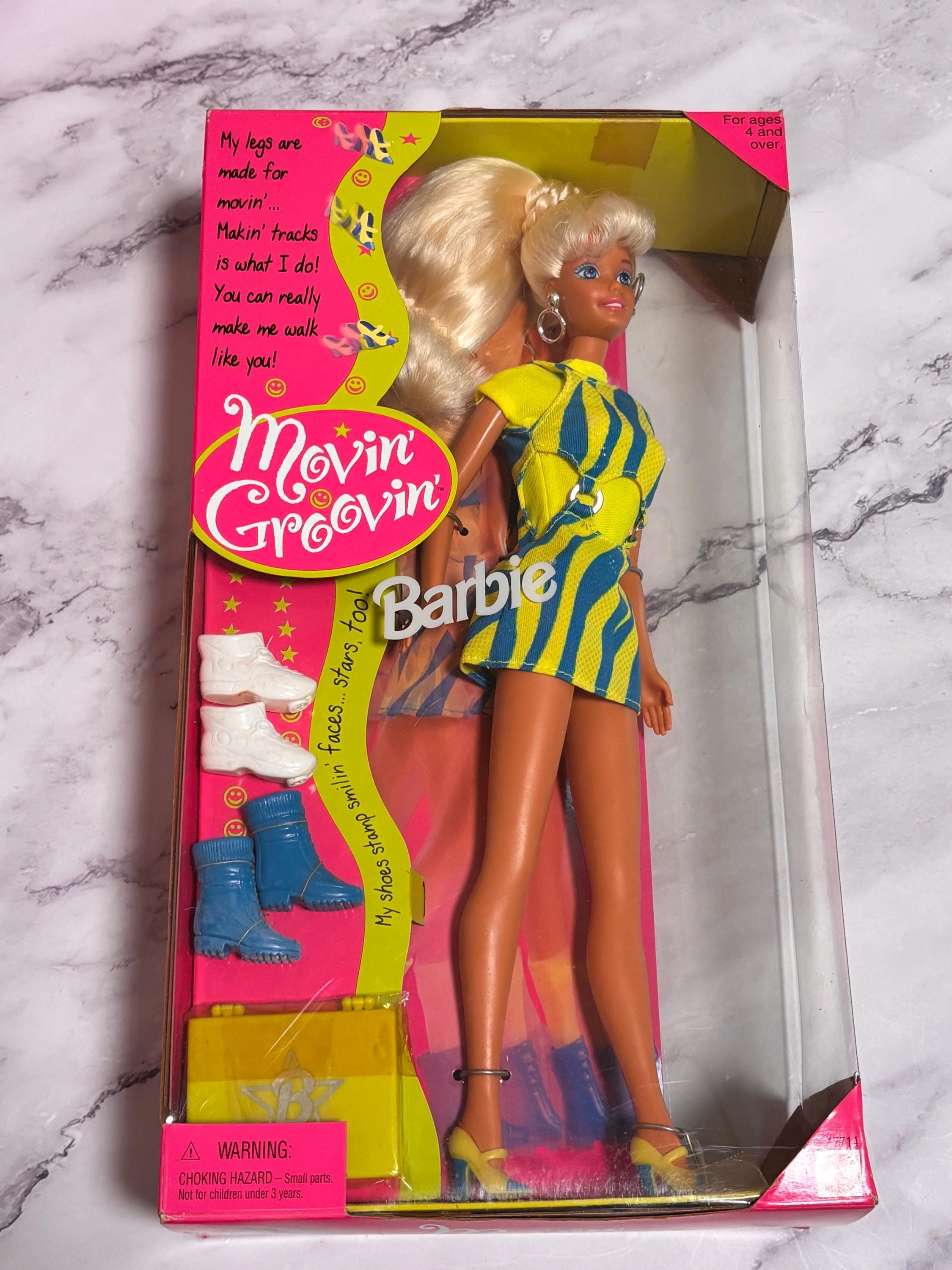 VISIT jaxinabox.com FOR ALL OUR LISTINGS!Vintage 1997 Movin Groovin Barbie NIB #17714 Mattel "Make her Walk" Stamp Shoes