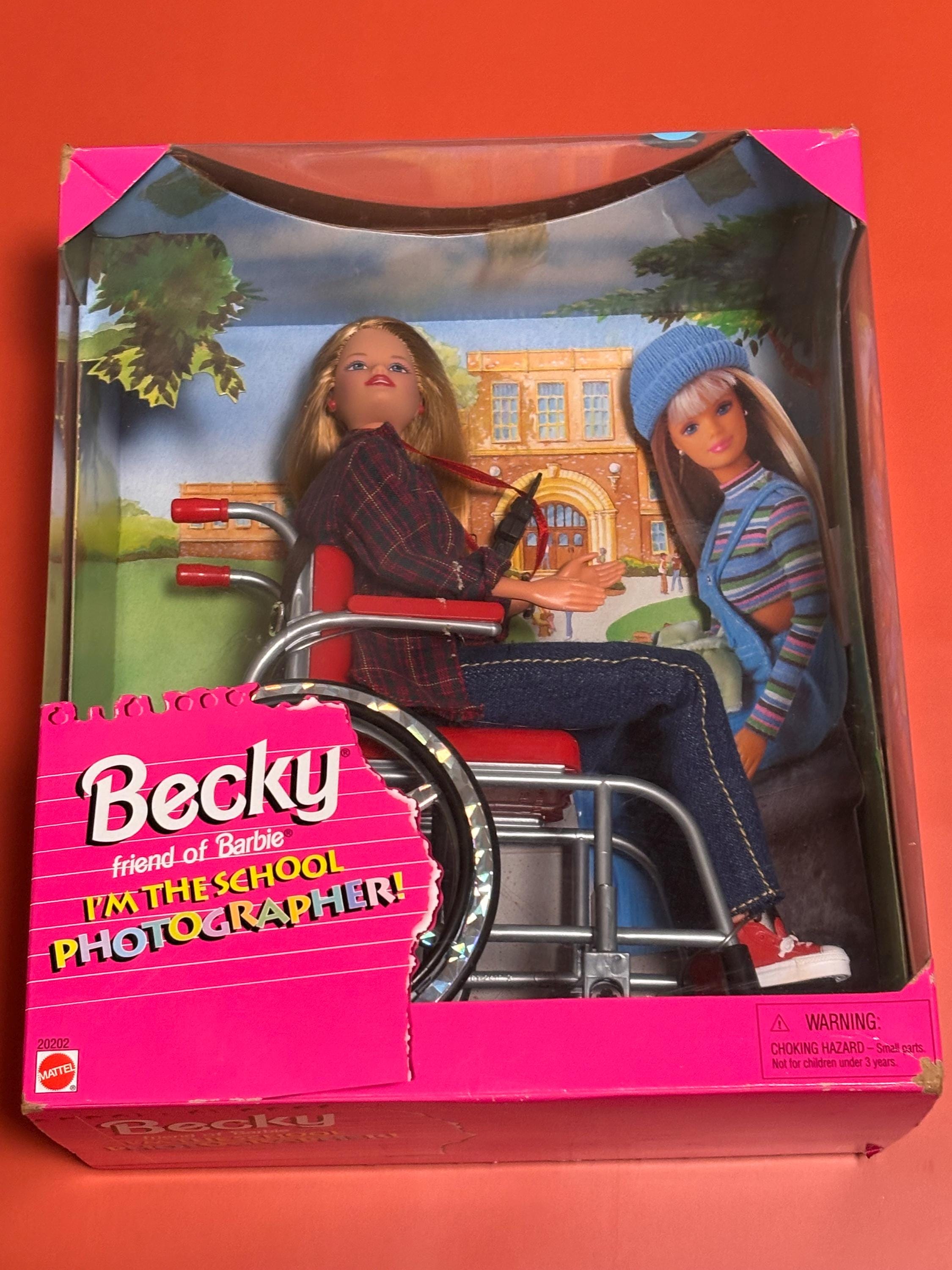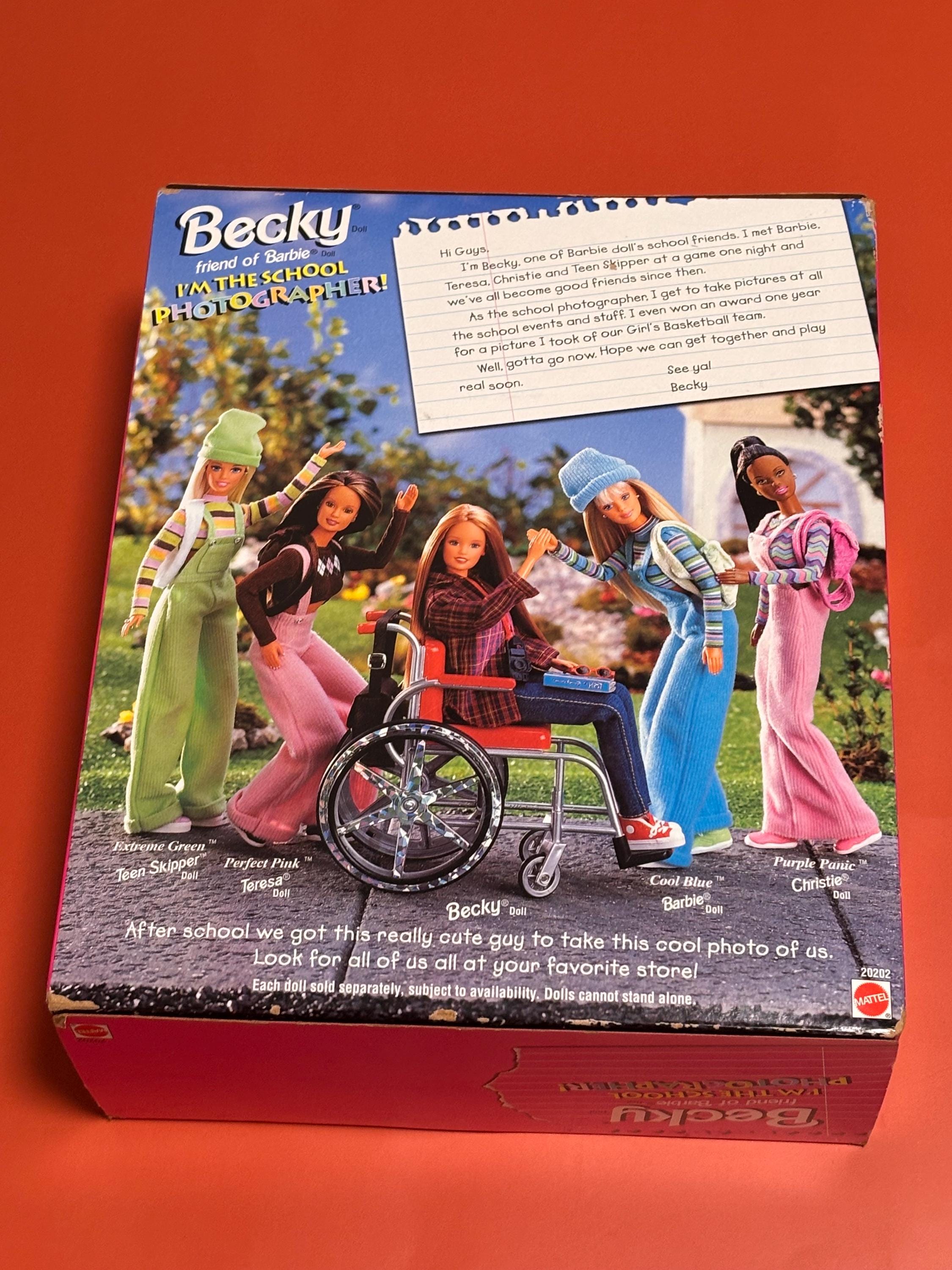 VISIT jaxinabox.com FOR ALL OUR LISTINGS!Mattel 1997 Becky Friend of Barbie Doll I’m The School Photographer Wheelchair 20202