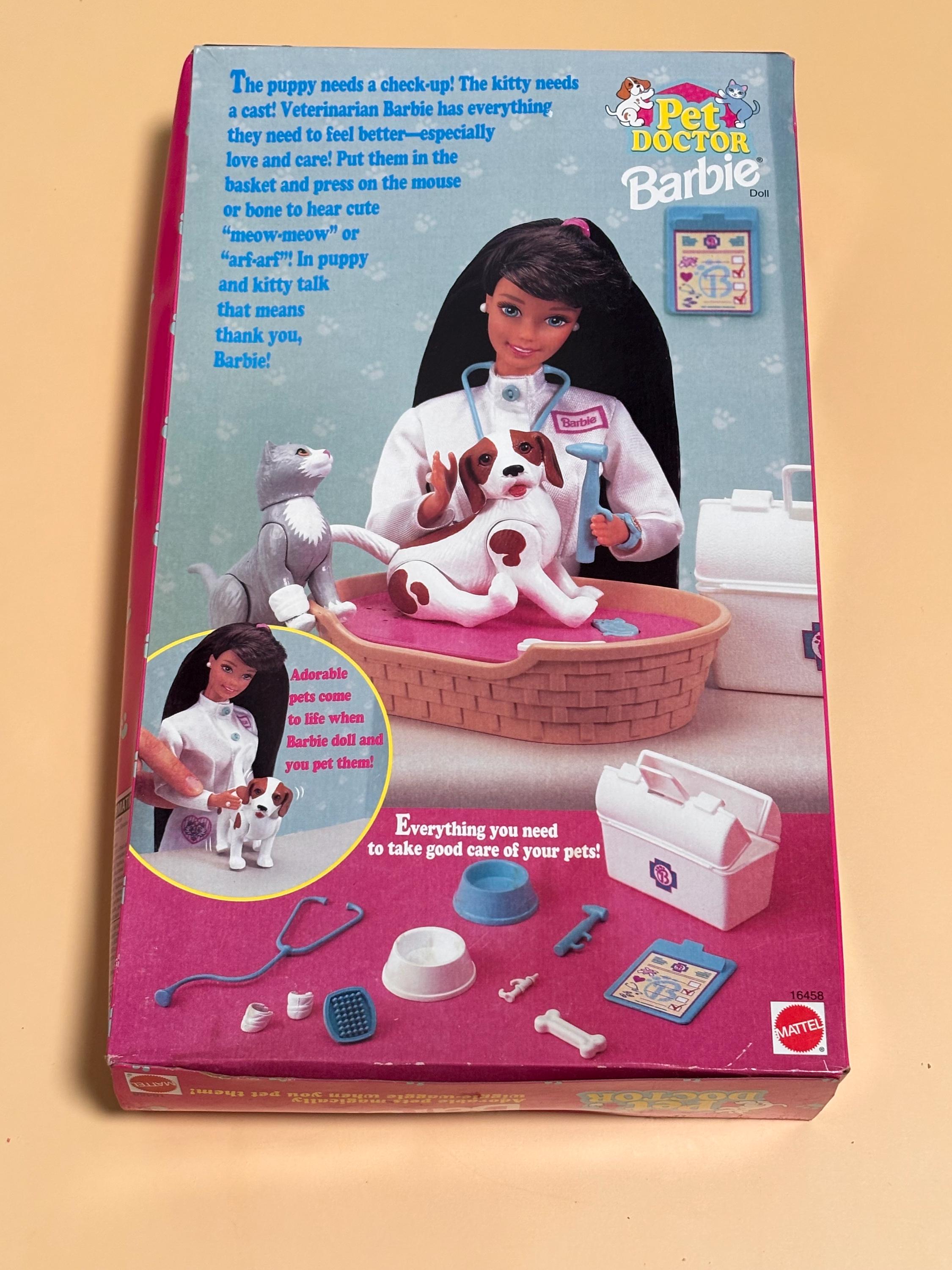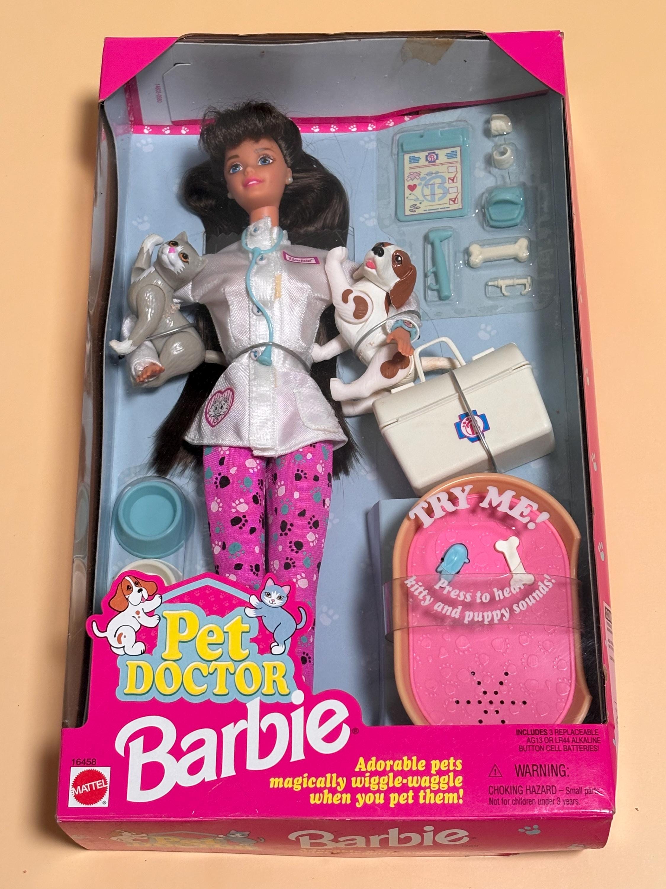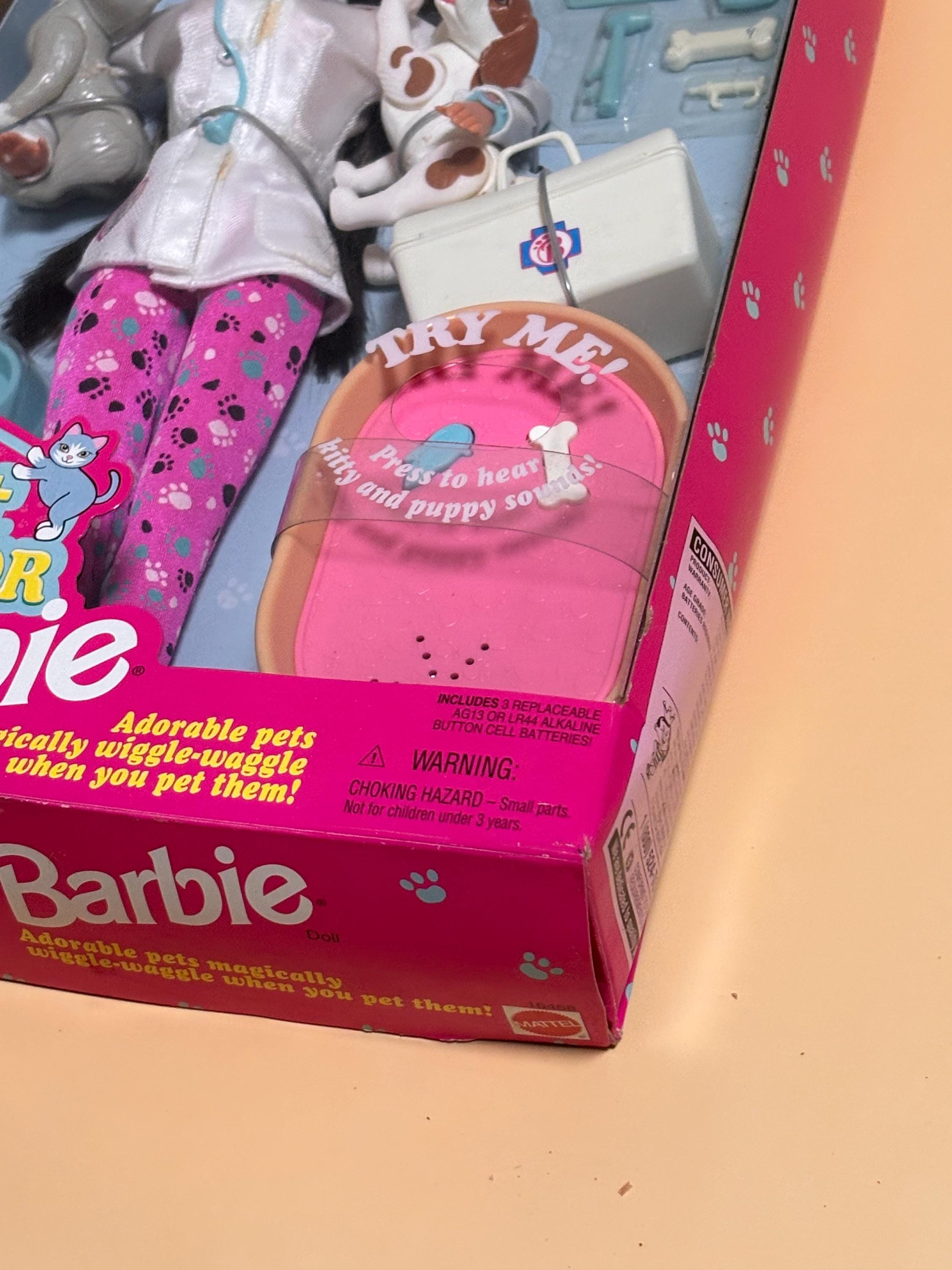 VISIT jaxinabox.com FOR ALL OUR LISTINGS!Barbie "Pet Doctor" Brunette Exclusive to Target Sounds Dogs 1996 Mattel #16458