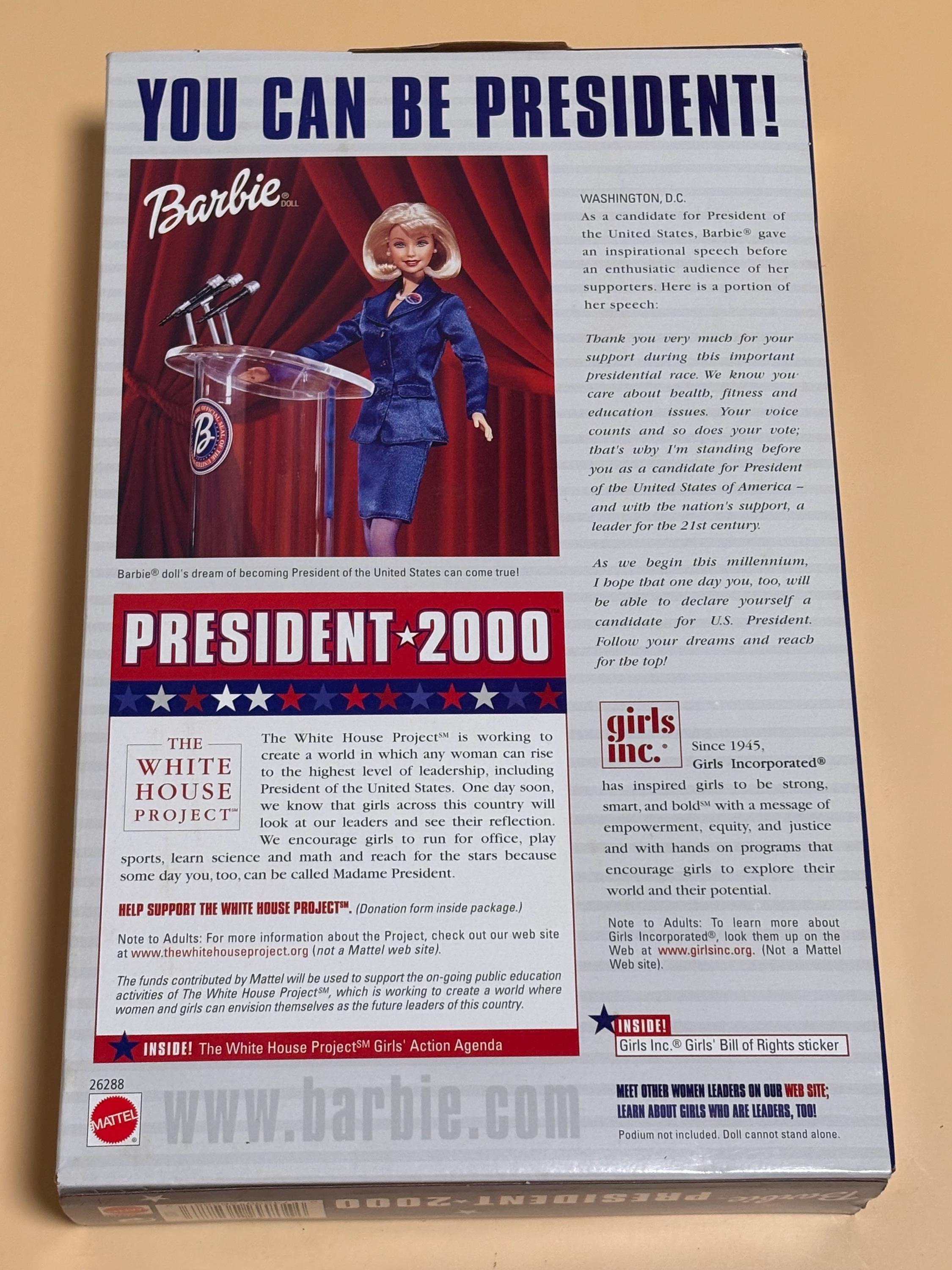 VISIT jaxinabox.com FOR ALL OUR LISTINGS!Barbie President 2000 Toys R Us Exclusive Doll 1999 Mattel 26288