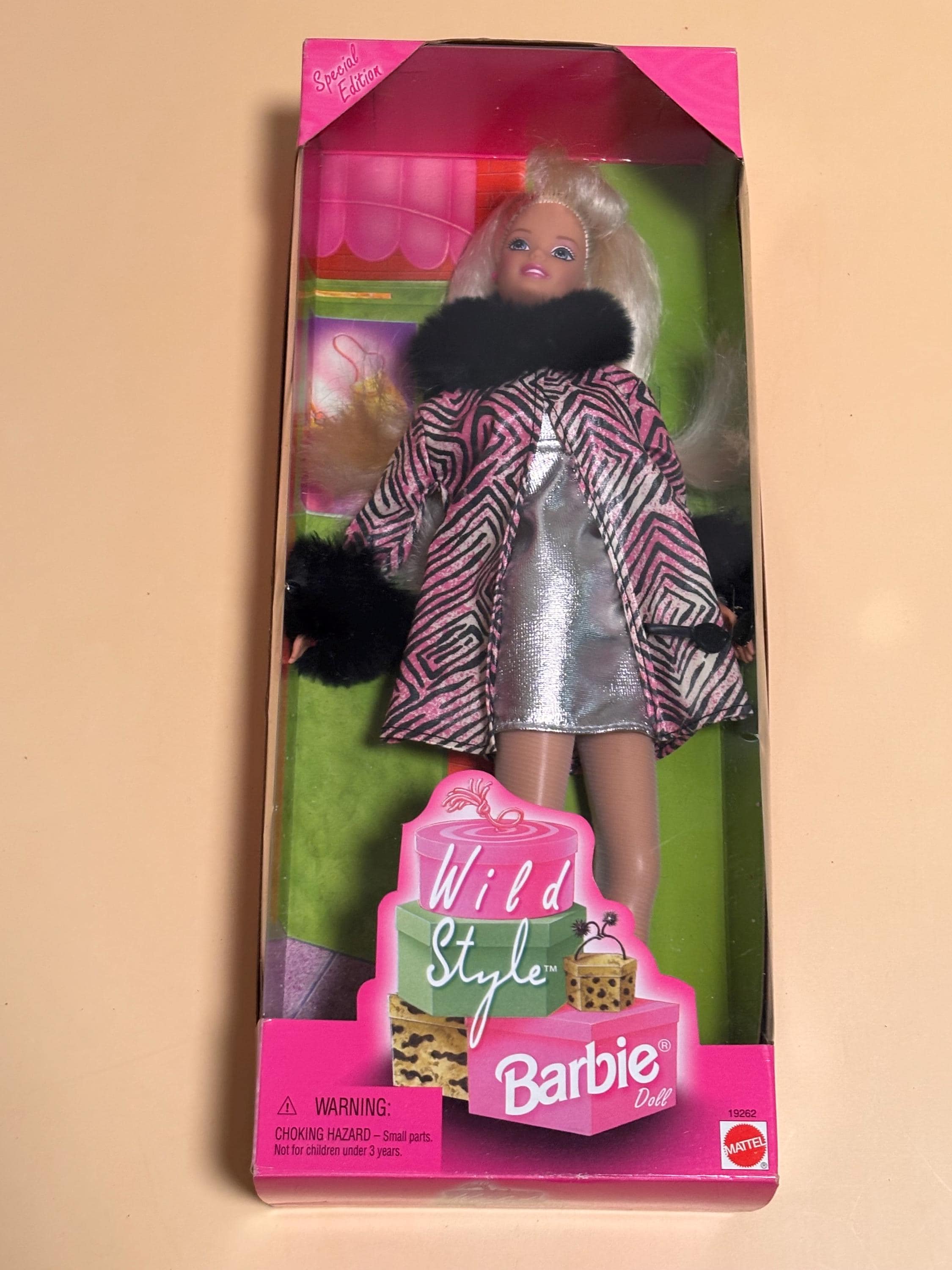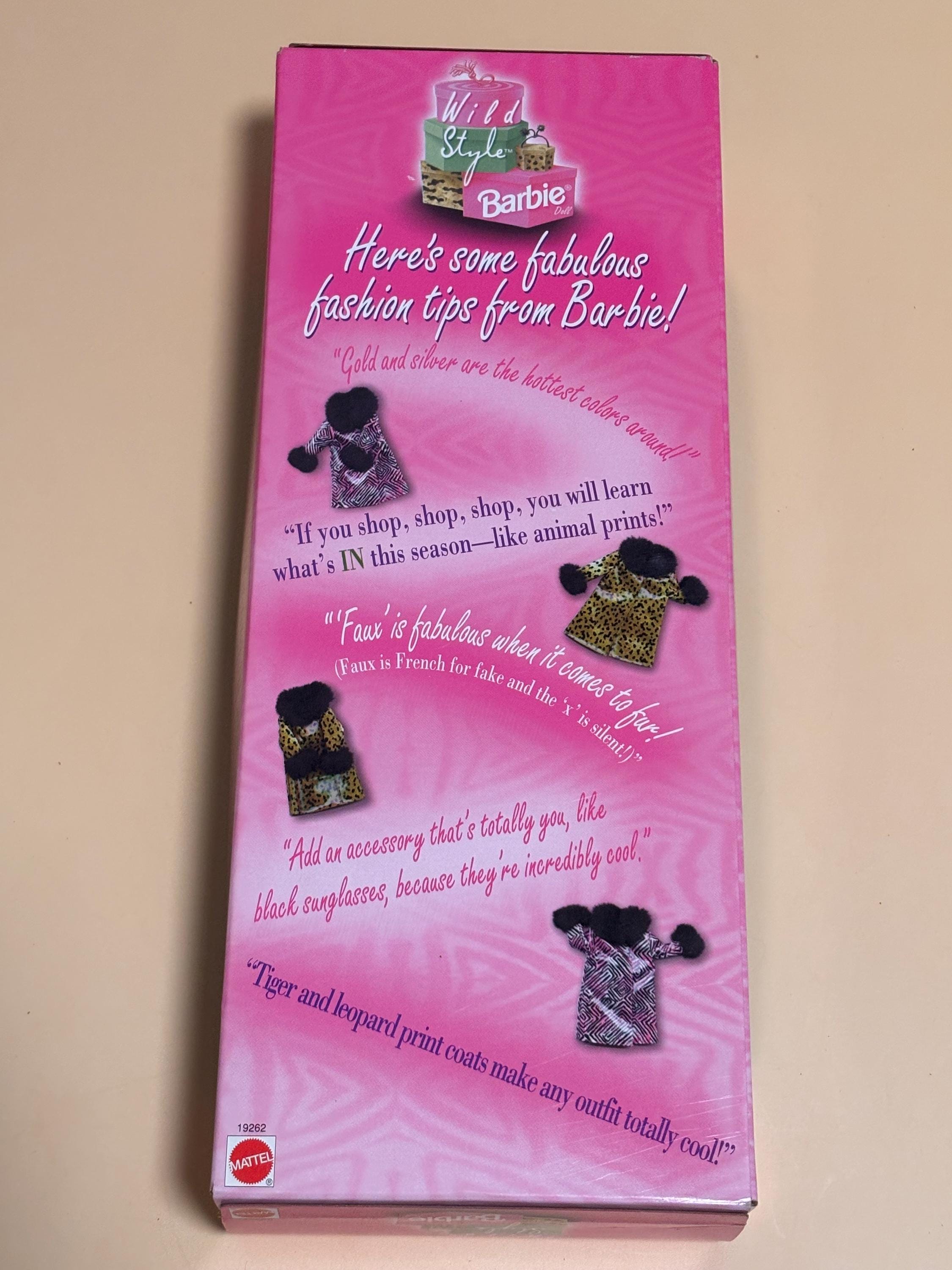 VISIT jaxinabox.com FOR ALL OUR LISTINGS!Barbie Wild Style Metallic Dress Animal Print Fur Cuffed Doll 1997 19262 NIB