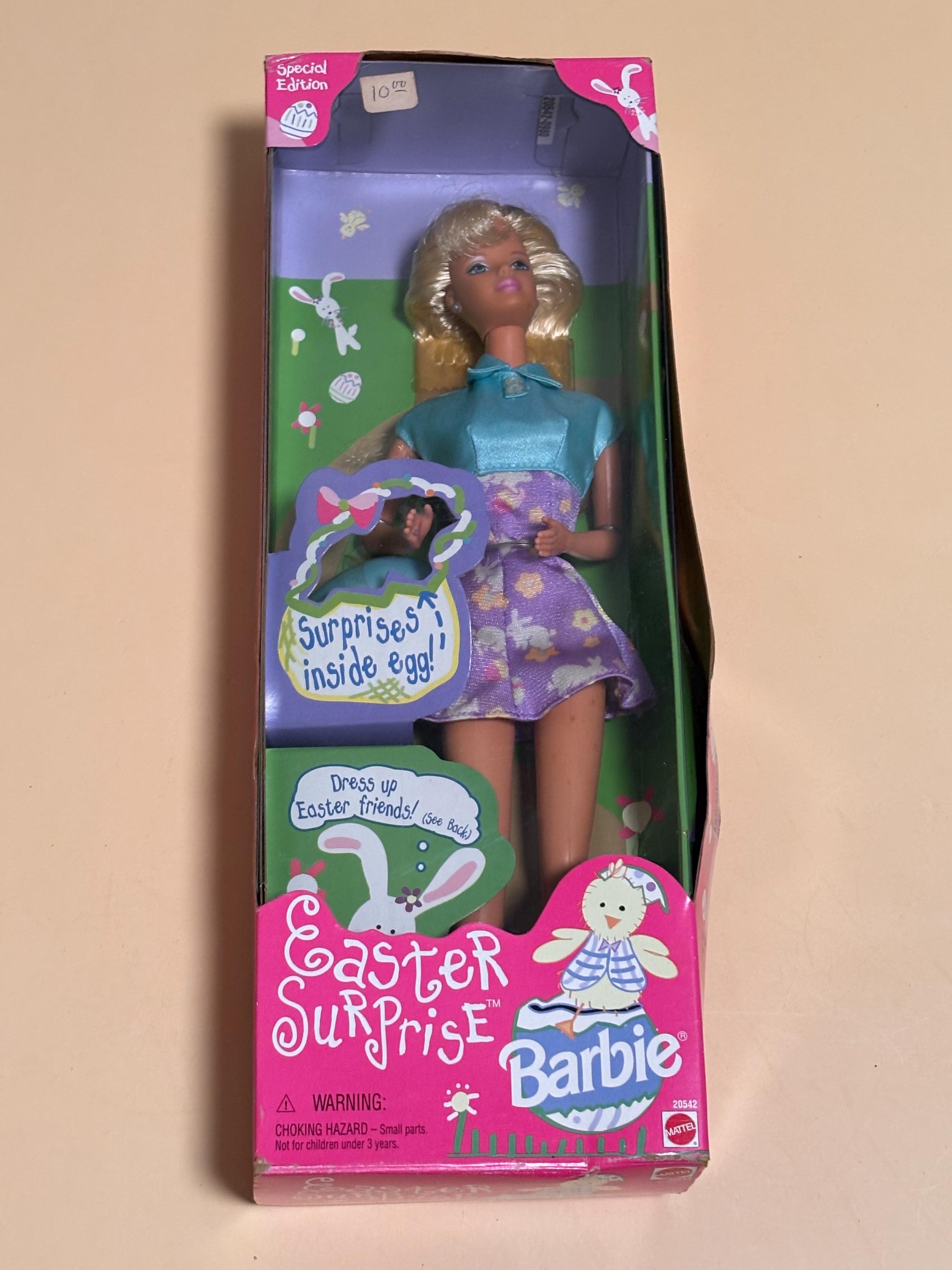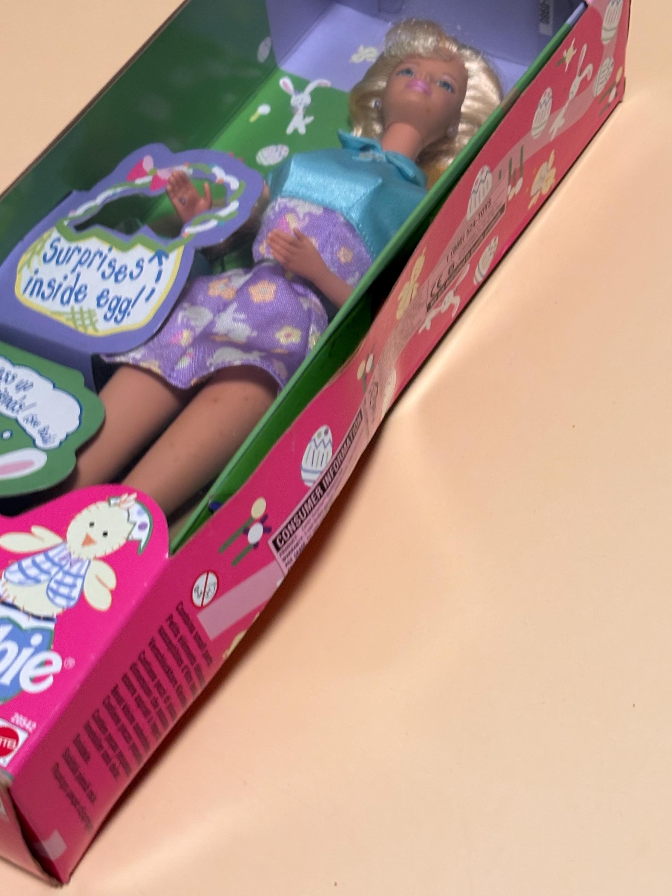 VISIT jaxinabox.com FOR ALL OUR LISTINGS!1998 Easter Surprise Barbie Special Edition w/Surprises inside egg MIB 20542