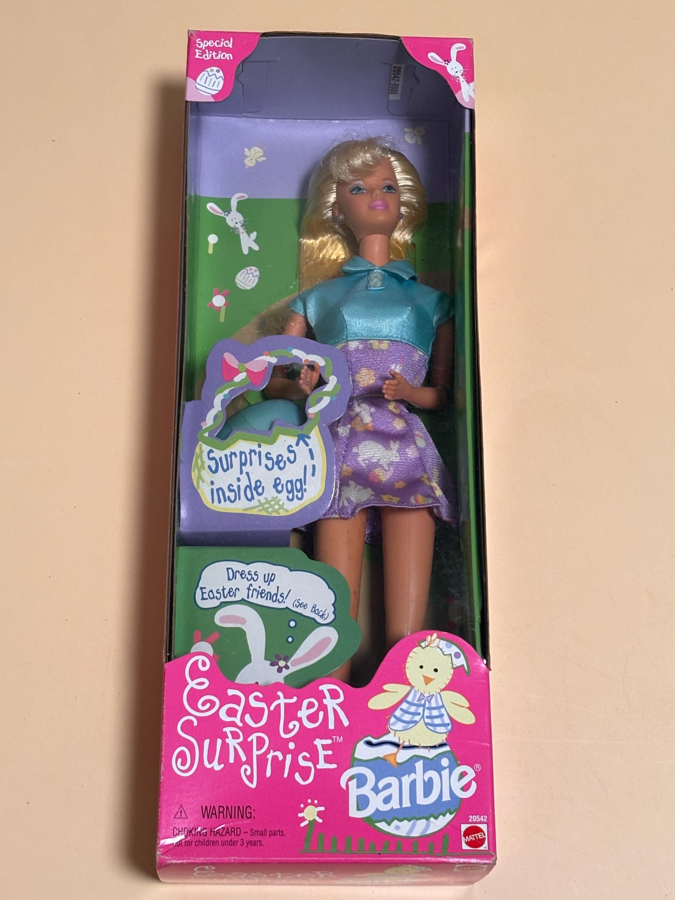 VISIT jaxinabox.com FOR ALL OUR LISTINGS!1998 Easter Surprise Barbie Special Edition w/Surprises inside egg MIB 20542
