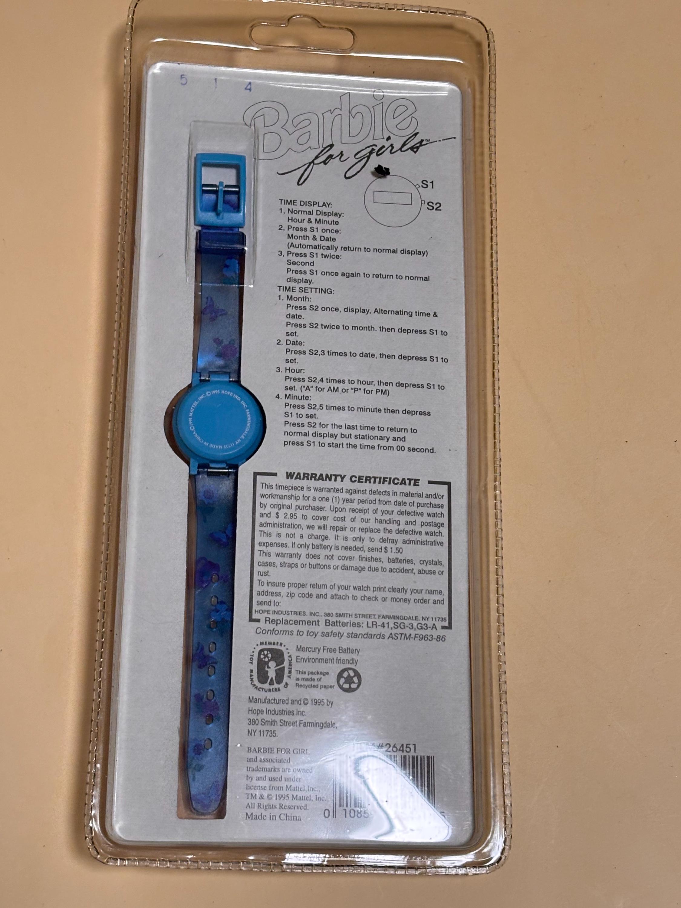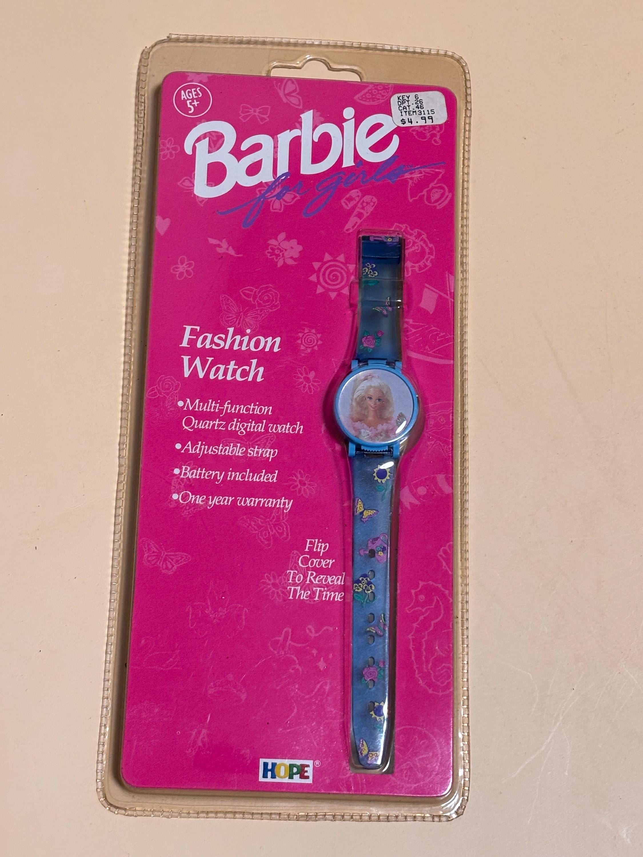 VISIT jaxinabox.com FOR ALL OUR LISTINGS!Vintage 1995 Rare Barbie Fashion Watch Flip Top Cover Mattel Multi Function NEW Blue