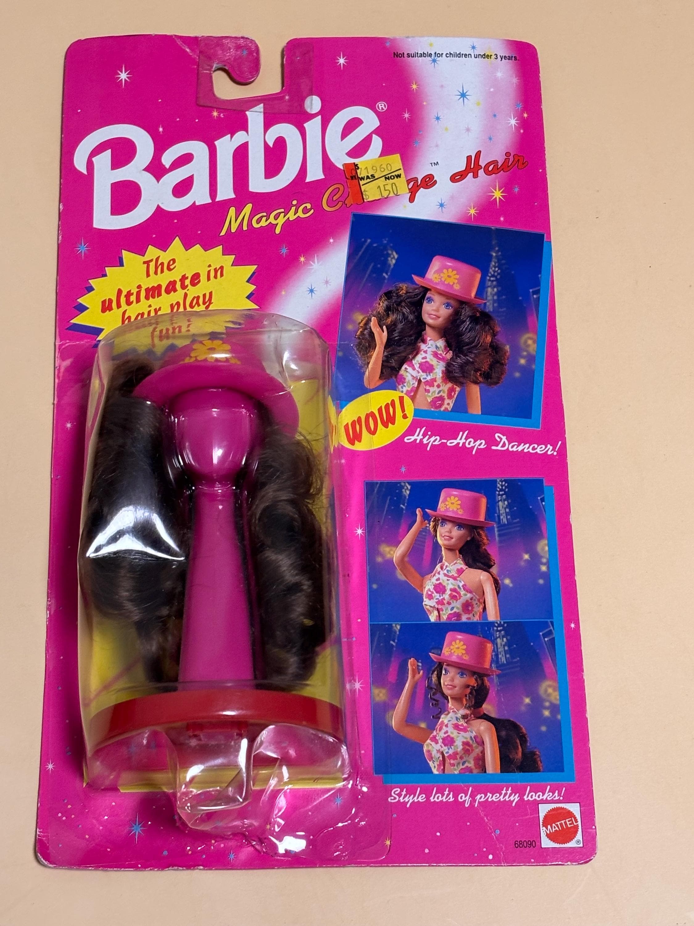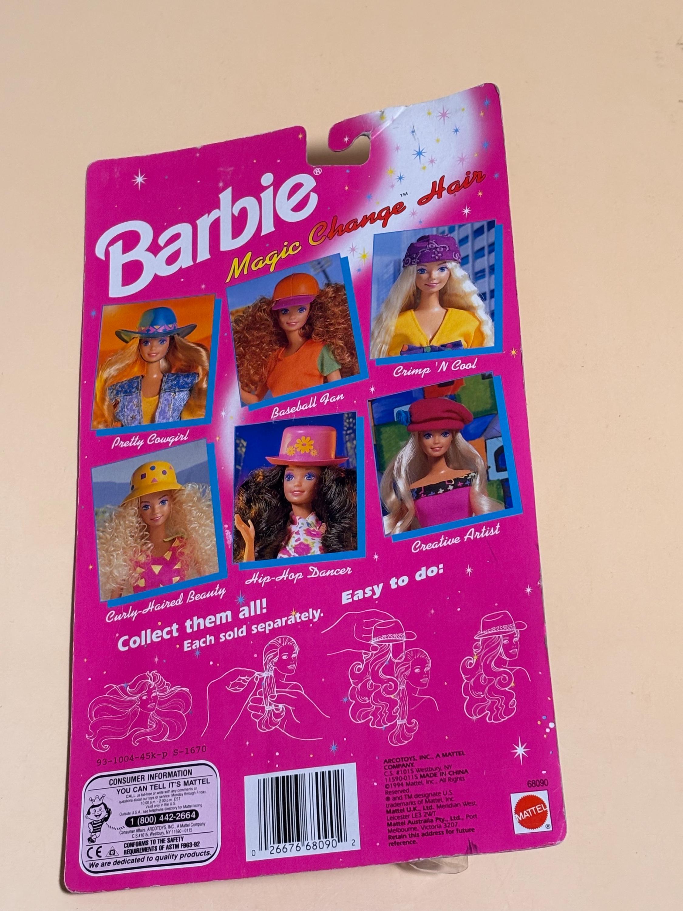 VISIT jaxinabox.com FOR ALL OUR LISTINGS!1993 Vintage Barbie Magic Change Hair Hip Hop Dancer Pink Hat Dark Brown Wavy Hair 68090