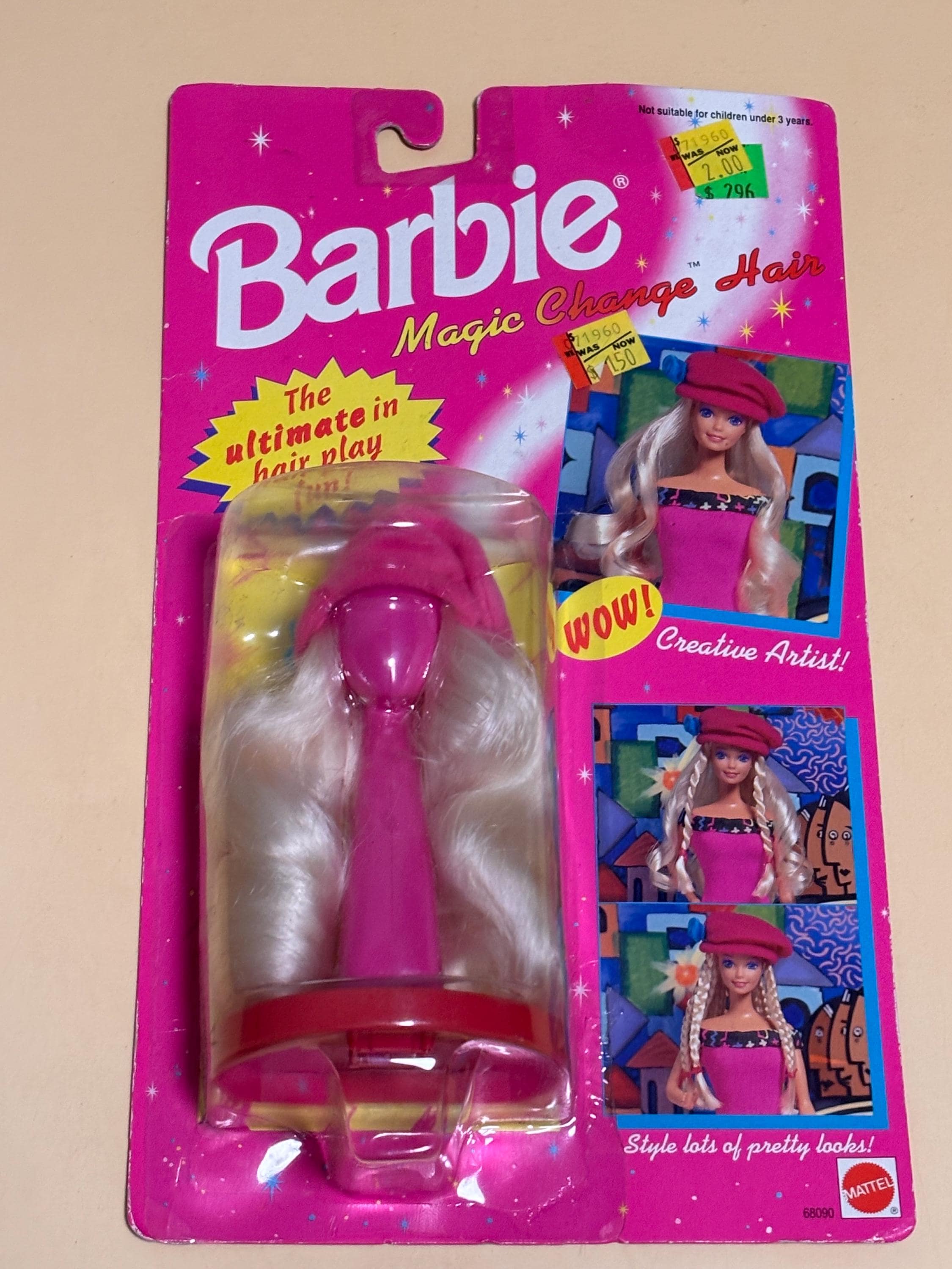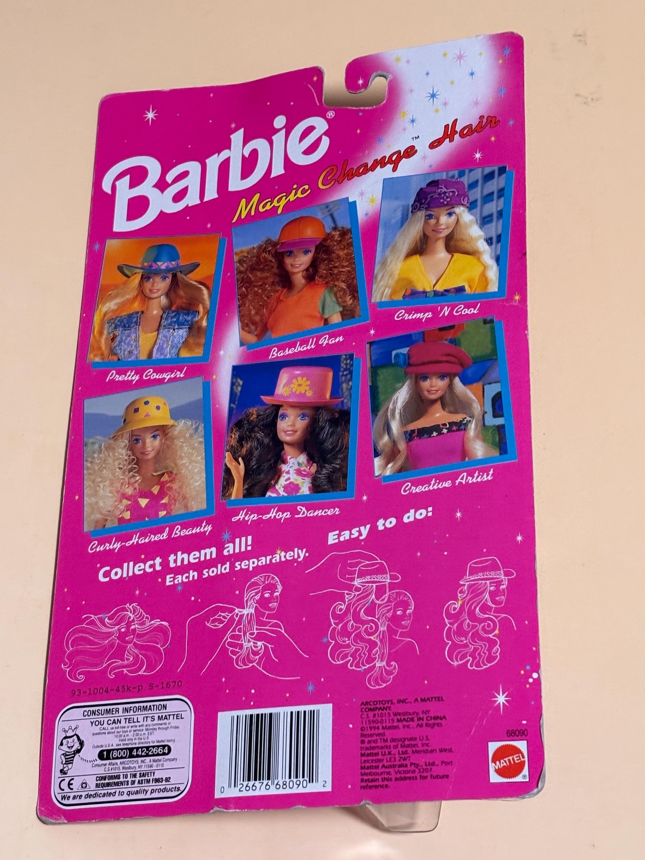 VISIT jaxinabox.com FOR ALL OUR LISTINGS!Barbie Magic Change Hair Blonde Pink Hat 68090 NIP 1993 Creative Artist