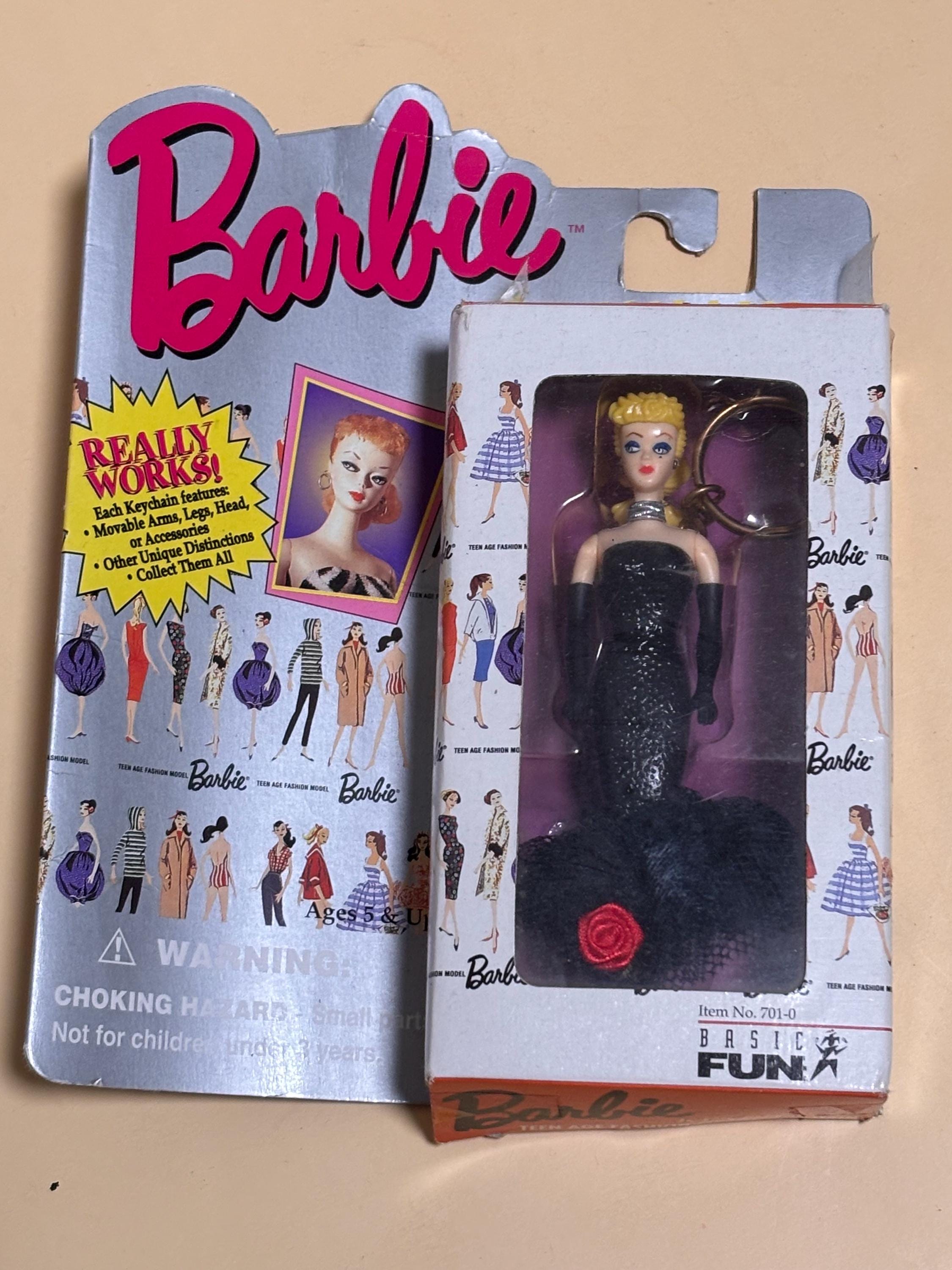 VISIT jaxinabox.com FOR ALL OUR LISTINGS!1995 Barbie Keychain Mattel Black Dress- Solo in the Spotlight 1969 701-01