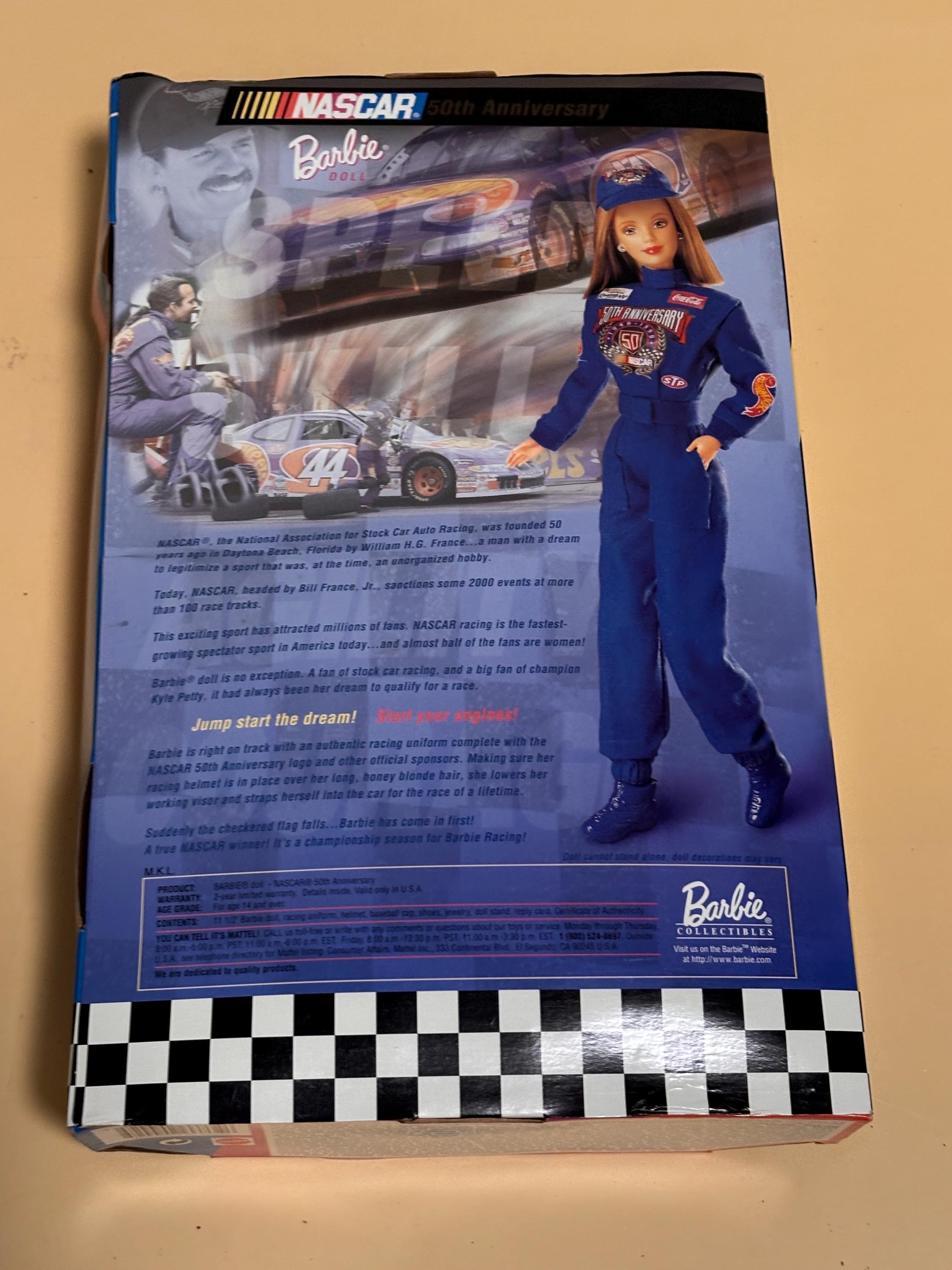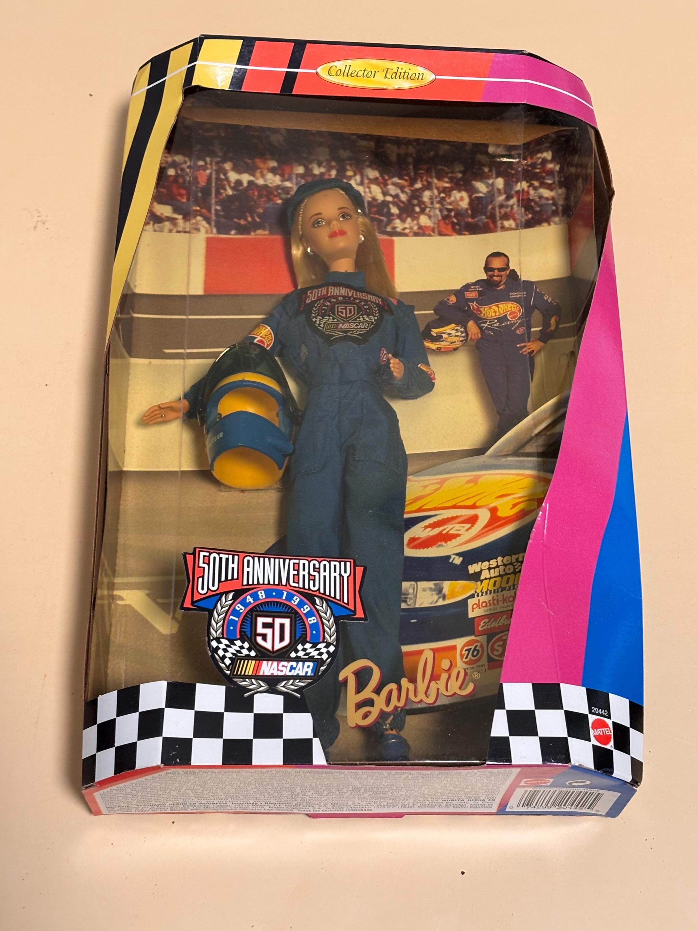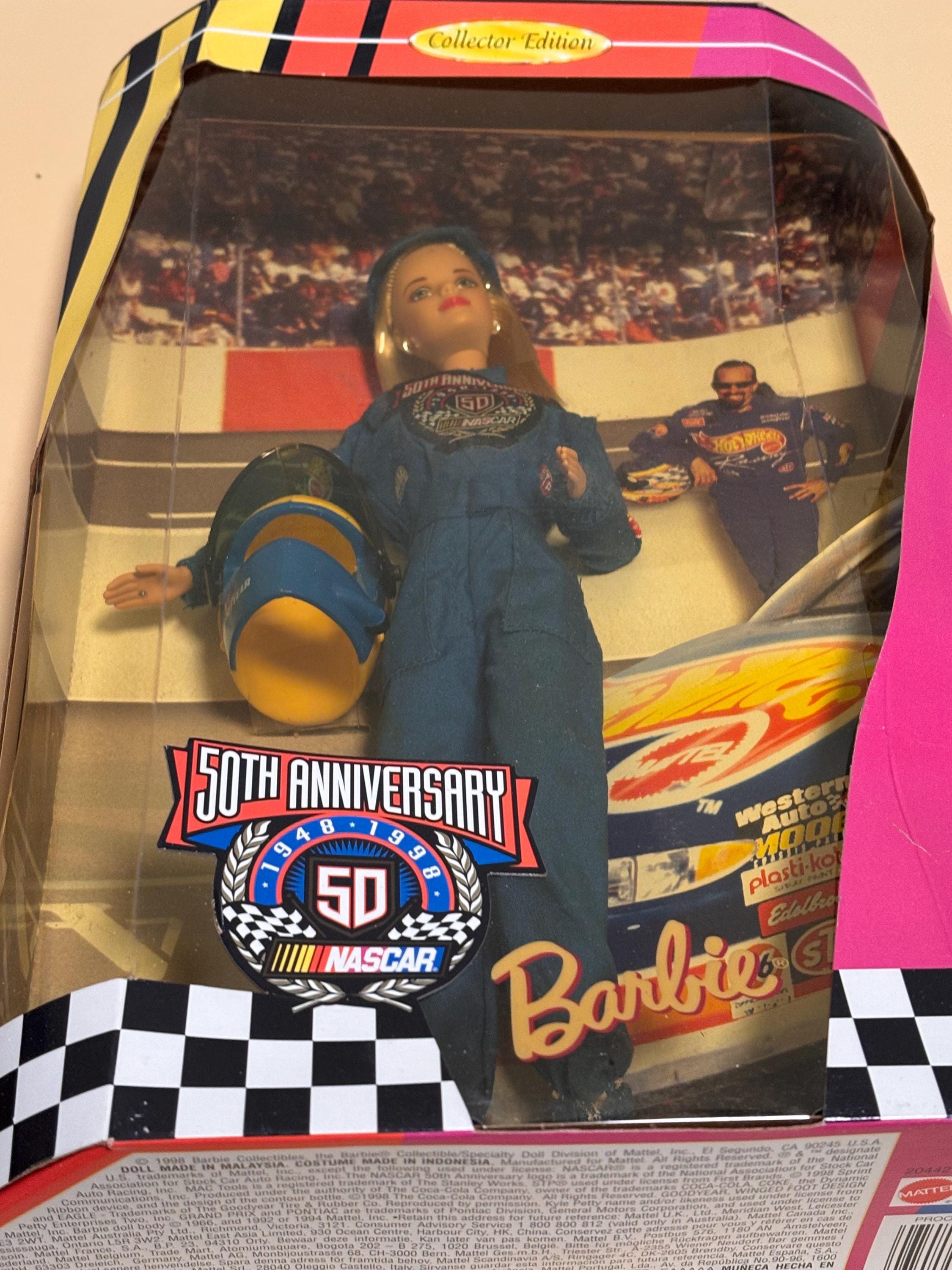 VISIT jaxinabox.com FOR ALL OUR LISTINGS!Barbie Nascar Doll 50th Anniversary Collector Edition 1948-1998 Mattel