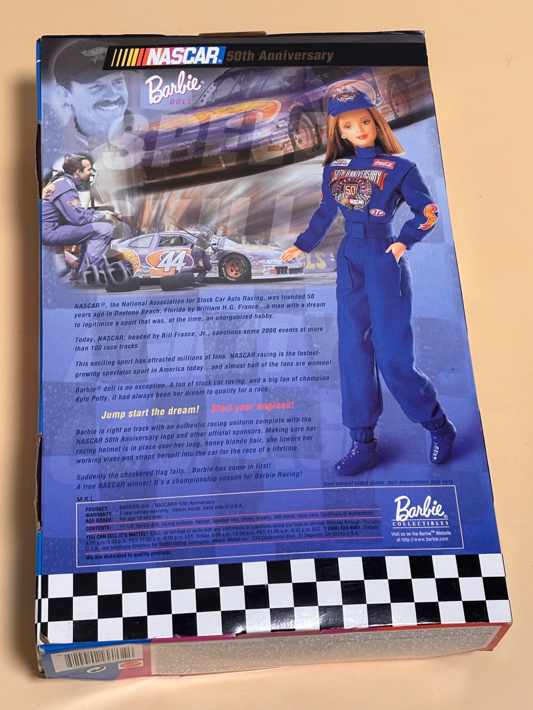 VISIT jaxinabox.com FOR ALL OUR LISTINGS!Barbie Nascar Doll 50th Anniversary Collector Edition 1948-1998 Mattel