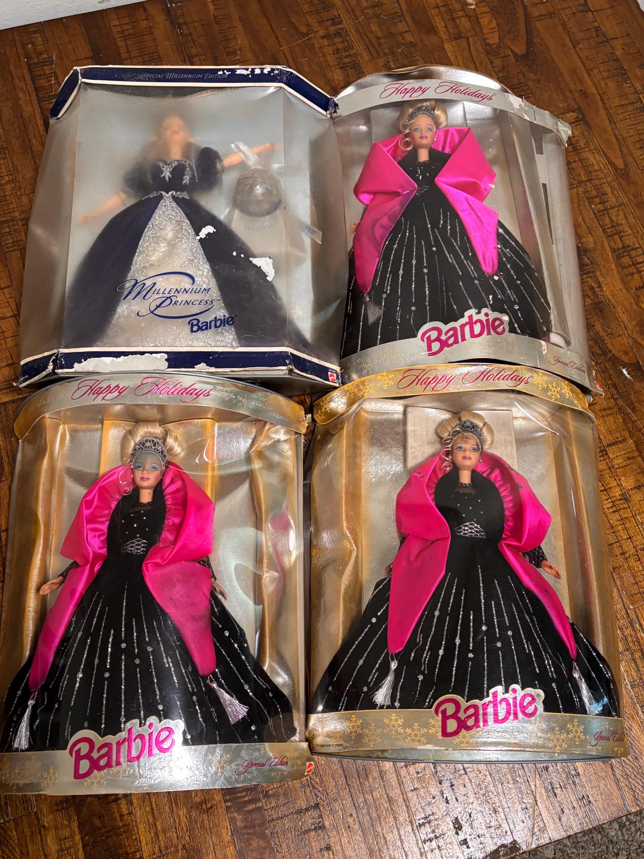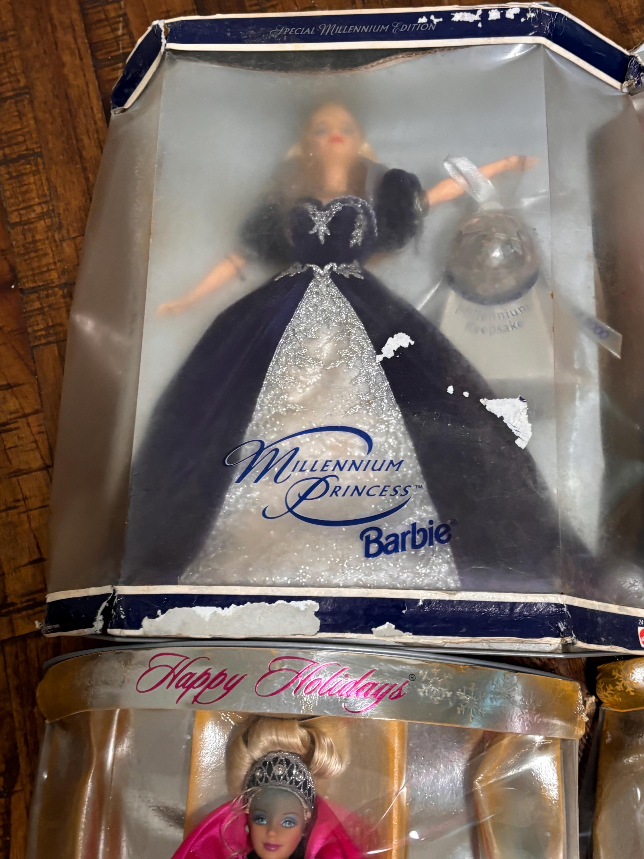 VISIT jaxinabox.com FOR ALL OUR LISTINGS!Lot of 5 Holiday Special Barbies 2 2000 Millennium Princess 24154 & 3 1998 20200