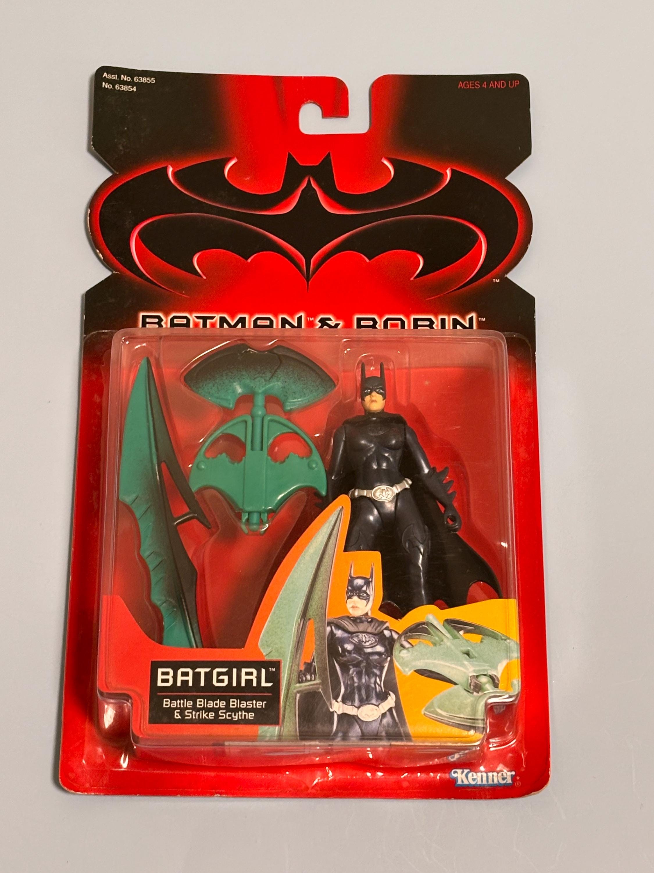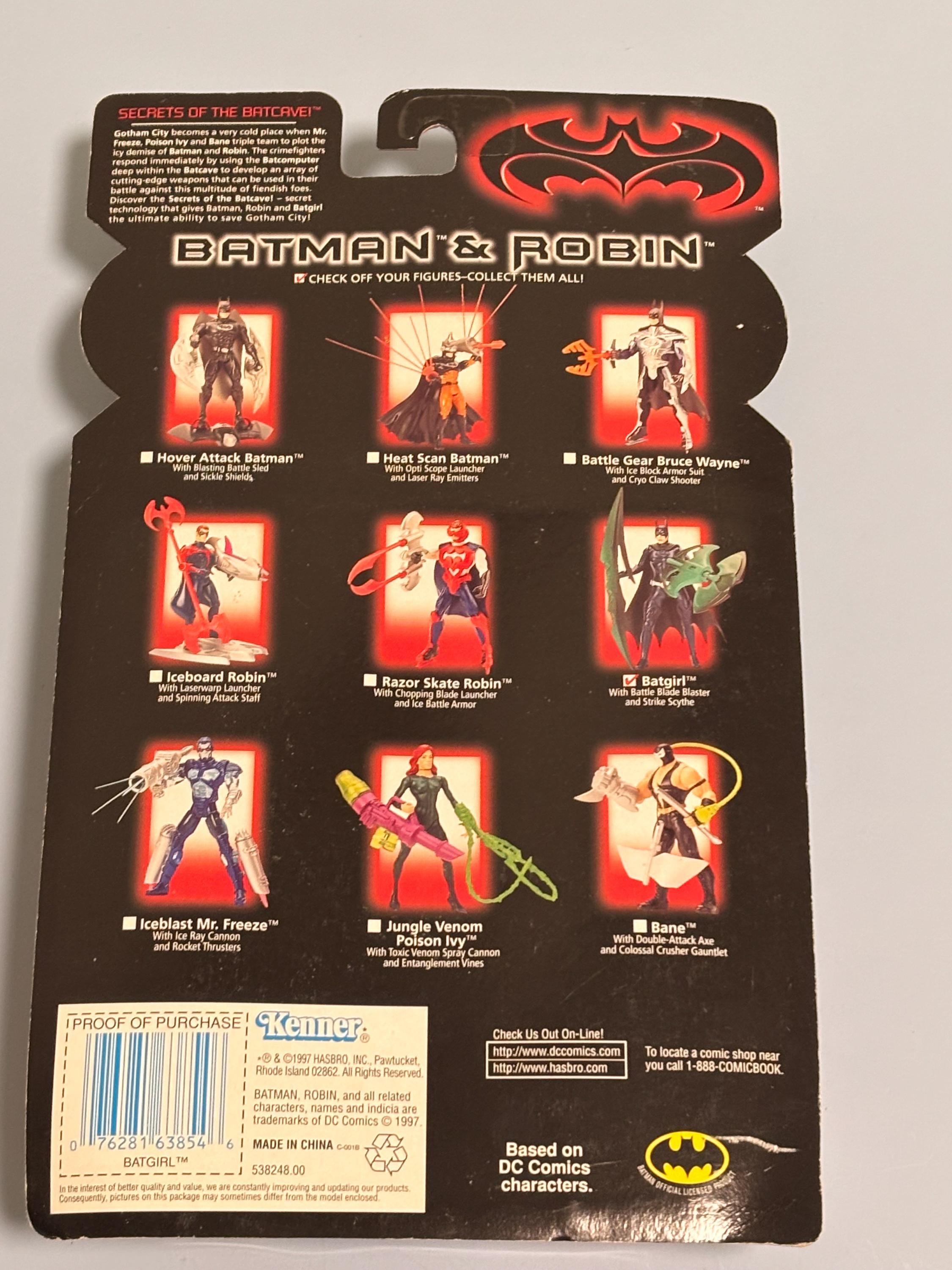 VISIT jaxinabox.com FOR ALL OUR LISTINGS!1997 Kenner Batman & Robin BATGIRL Figure w/blade blaster & strike scythe NIB